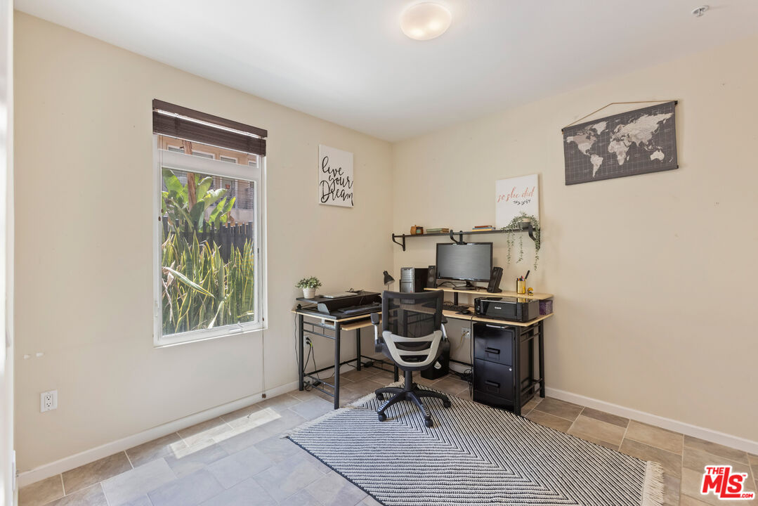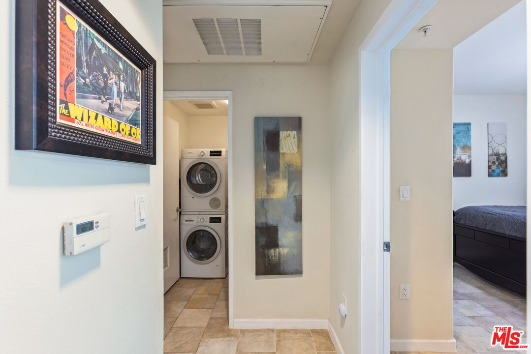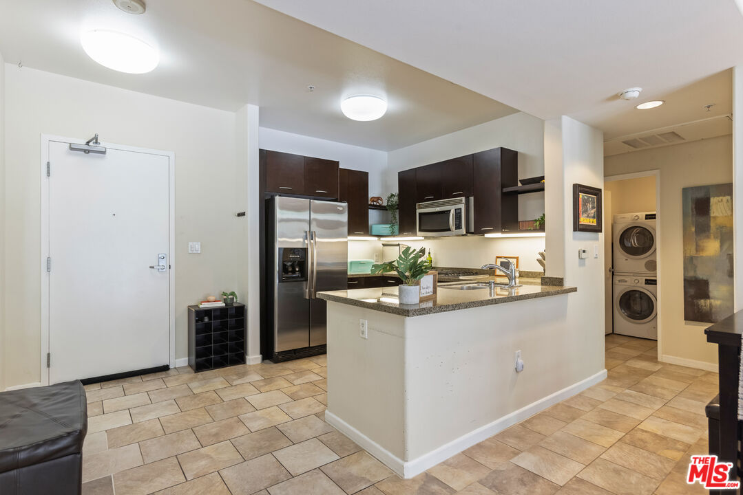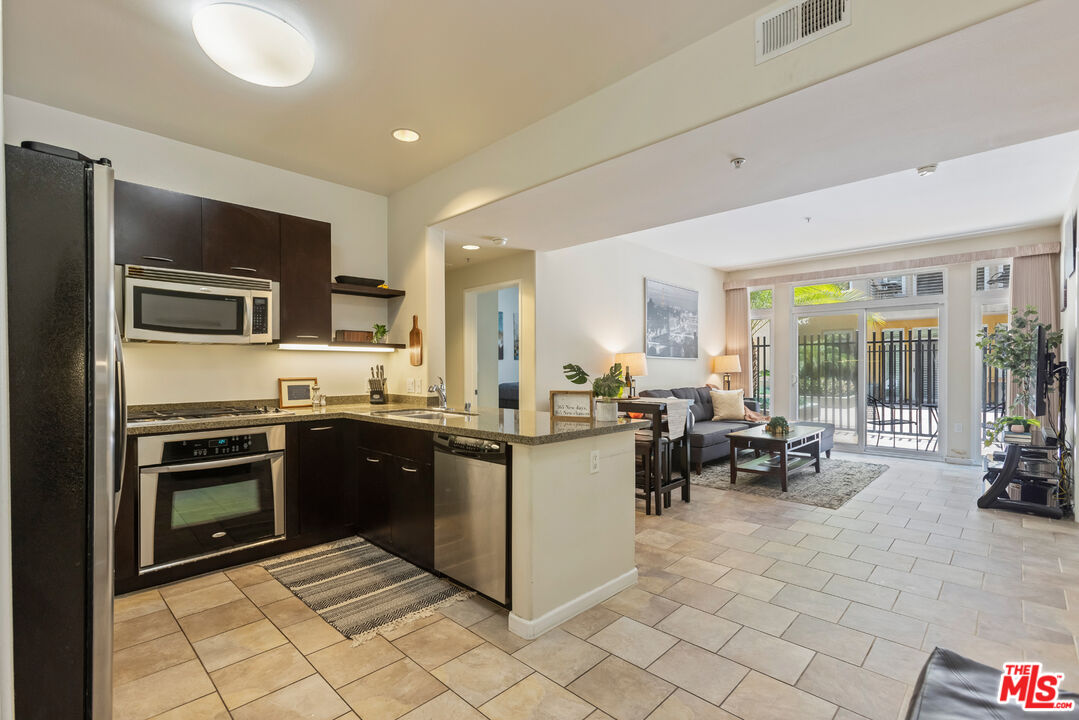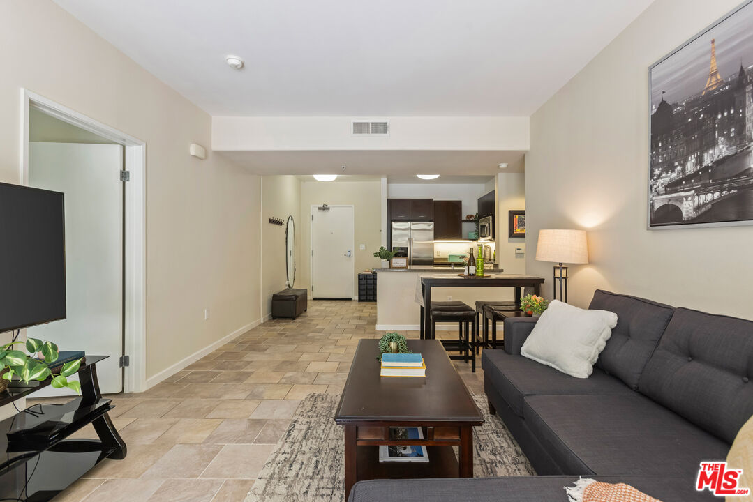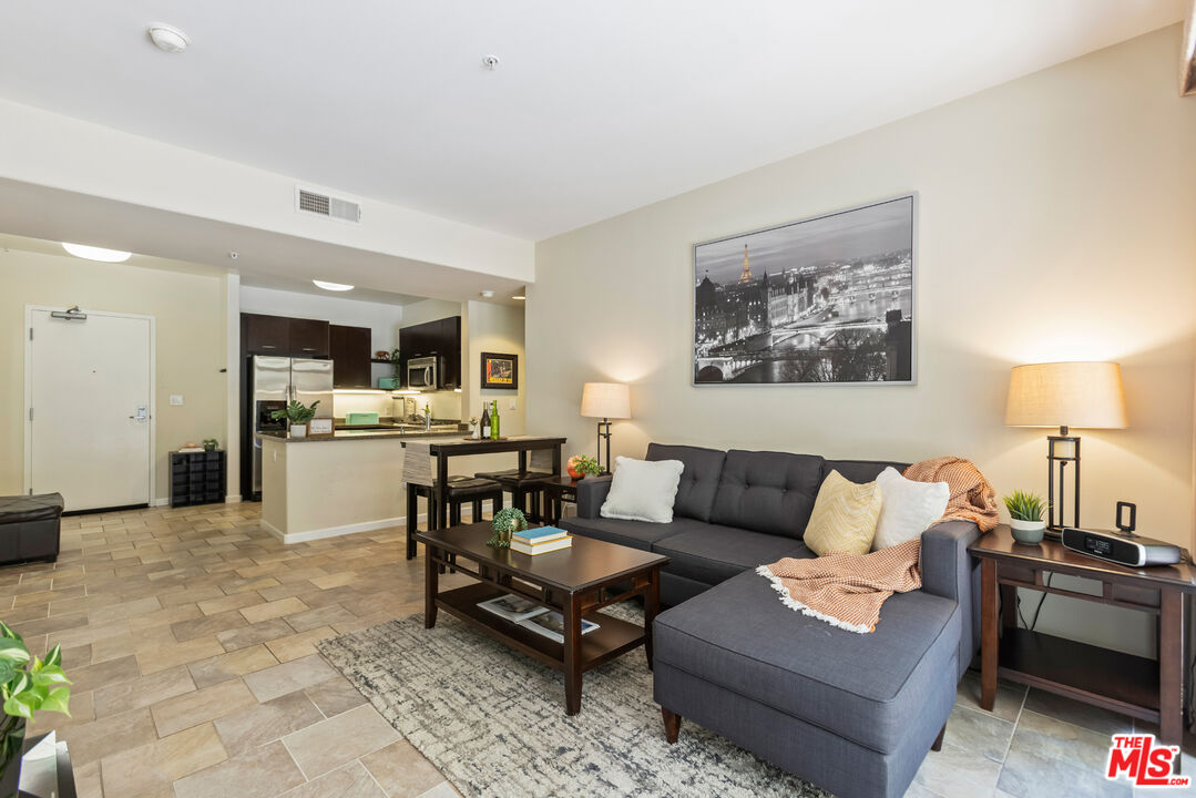 This modern 2 bedroom, 1 bathroom condo is located in desirable Downtown Burbank at the Burbank Collection. The stylish unit features an open floor plan with modern tile floors and large sliding doors from the living room. One of the generously sized bedrooms includes an office-sized walk-in closet, spacious enough to organize a large wardrobe, shoes, and accessories. The unit also offers a spacious in-unit laundry area with storage, along with central heating and air conditioning. The contemporary kitchen offers ample cabinet space, granite countertops, stainless steel appliances, and flows seamlessly into the living area, making it ideal for entertaining. The unit includes two assigned side-by-side gated parking spaces and separate lockable storage. The unit and parking spaces are conveniently located near the elevator for easy access. The community offers resort style amenities including a well-equipped gym, outdoor pool with lounge chairs, a putting green, barbecue area, and fire pit, and an entertainment lounge with a billiards table and a bocce ball court. Just steps outside, you will find everything Downtown Burbank has to offer, including AMC movie theaters, a wide variety of restaurants and shops, the Burbank Town Center mall, outdoor concerts, art shows, and food festivals. Nearby are the Empire Shopping Center, Warner Bros, Universal Studios, and DeBell Golf Course.Interested in this Listing?