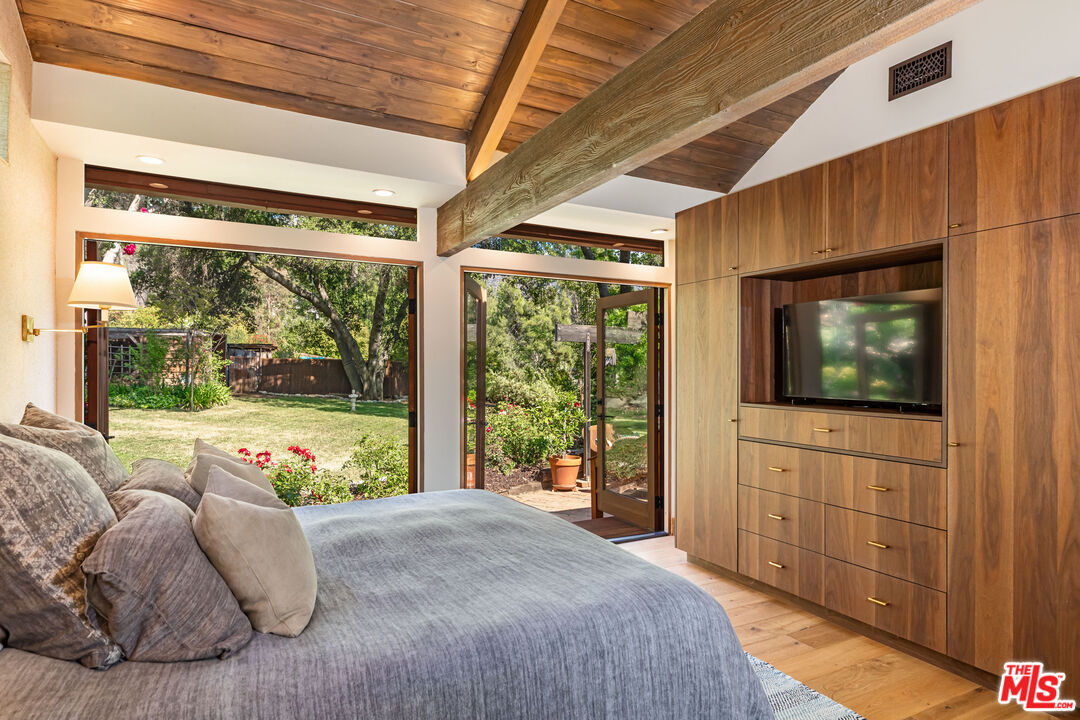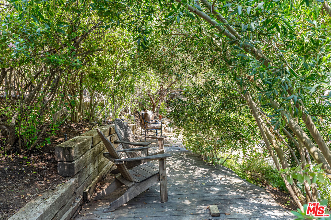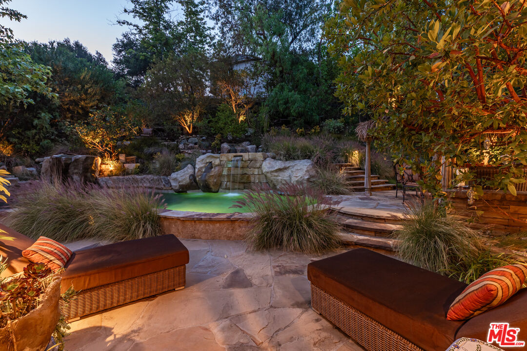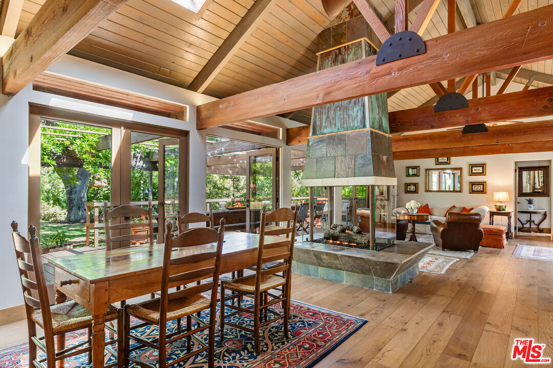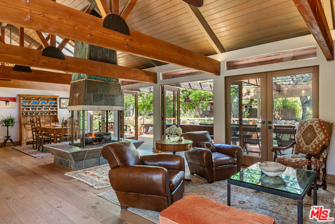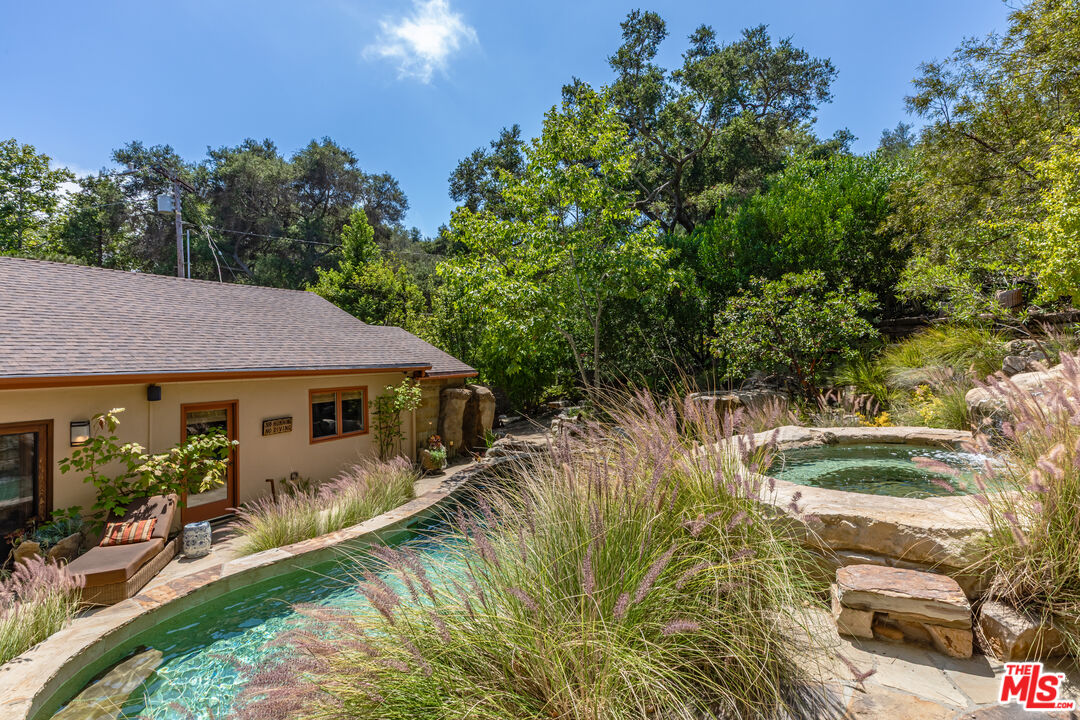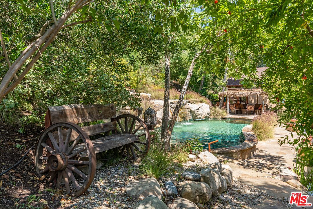 Welcome to 1064 Meadows End A One-of-a-Kind Architectural Sanctuary in Monte Nido's Coveted Malibu Canyon Neighborhood.Tucked at the end of a quiet cul-de-sac and framed by ancient sycamore and oak groves, this beautiful single-level home offers a rare blend of refined design and natural beauty. Set on just over an acre of mostly flat, park-like grounds, this property is a true staycation retreat private, peaceful, and surrounded by nature. Step through the serene entry with black flagstone pavers complete with a koi pond, and into an expansive, light-filled interior crafted with meticulous attention to detail. French Oak floors flow throughout, while dramatic wood-beamed ceilings and a striking four-sided fireplace anchor the open-concept living space. A wall of French doors seamlessly connects indoors to the entertainer's dream backyard, flooding the home with natural light and bringing the outside in. The chef's kitchen is a statement in both function and form featuring concrete countertops, top-tier appliances with double oven, warming drawer, ice machine, Sub Zero Refrigerator & Freezer, two dishwashers and custom cabinetry complete this fabulous kitchen. Skylights illuminate the adjacent dining area. A flexible floor plan offers 4 bedrooms, and 4 bathrooms ensures optimal privacy for guests, with well-separated secondary bedrooms. The newer primary suite is a sanctuary of its own, offering custom built-in cabinetry, soaring ceilings, French doors that welcome morning light, and a luxurious bath with a soaking tub and heated floors. A step-down family room leads out to a spectacular pool oasis designed by renowned landscape architect Nick Williams & Associates complete with a rock waterfall and lushly landscaped surroundings. The back 4th bedroom could serve as additional den / office with oversized closet / art or hobby room. The unique stone wall 3/4 pool bathroom opens to outdoor shower and private garden. Wander through flowering gardens and along meandering paths beneath majestic oak trees. Enjoy a rose garden, fruit trees and charming chicken coop, and plenty of flat usable land perfect for outdoor entertaining, quiet reflection, or simply soaking in the beauty of this magical setting. Additional features include 3 tankless water heaters, Dual Zone HVAC system, new Generator 2024 and a new roof in 2025. Ideally located just minutes from Malibu Creek State Park's hiking trails, the vibrant restaurants, shops and beaches of Malibu. Calabasas Commons, and the 101 Freeway. Situated in the award-winning Las Virgenes School District, this is not just a home it's a lifestyle. A rare architectural gem where nature meets design. A truly magical retreat.