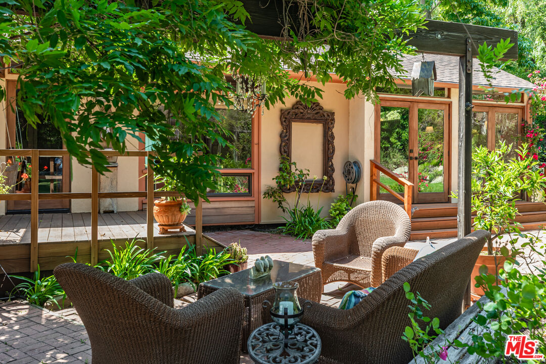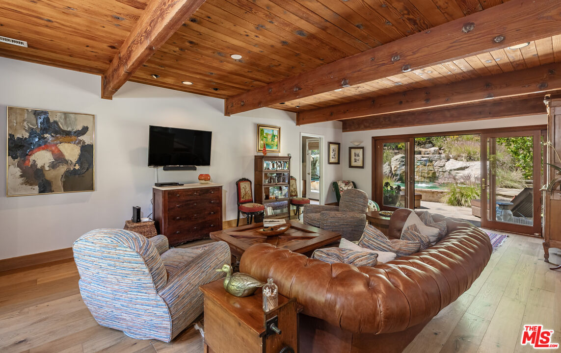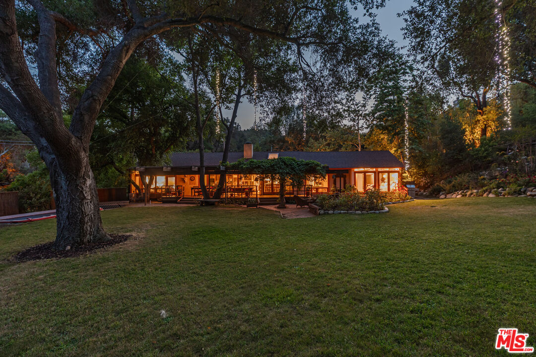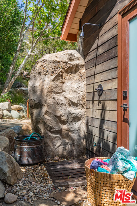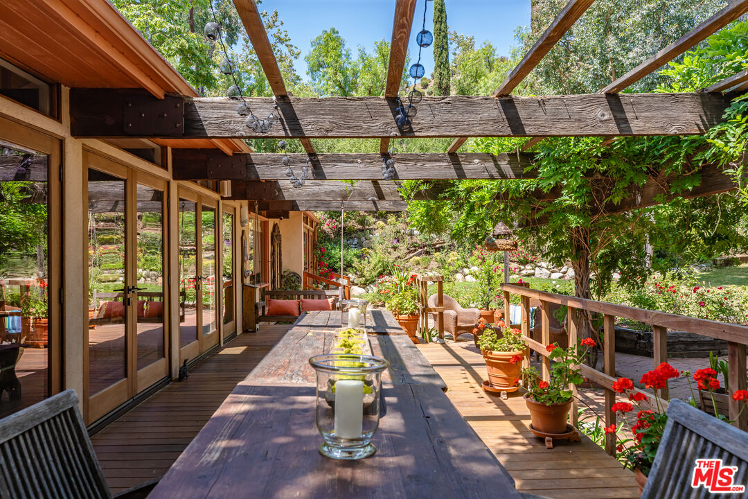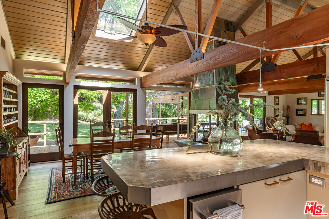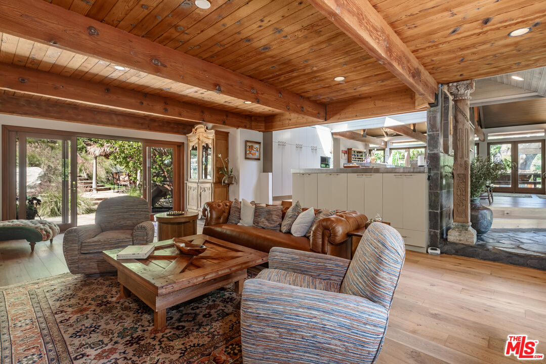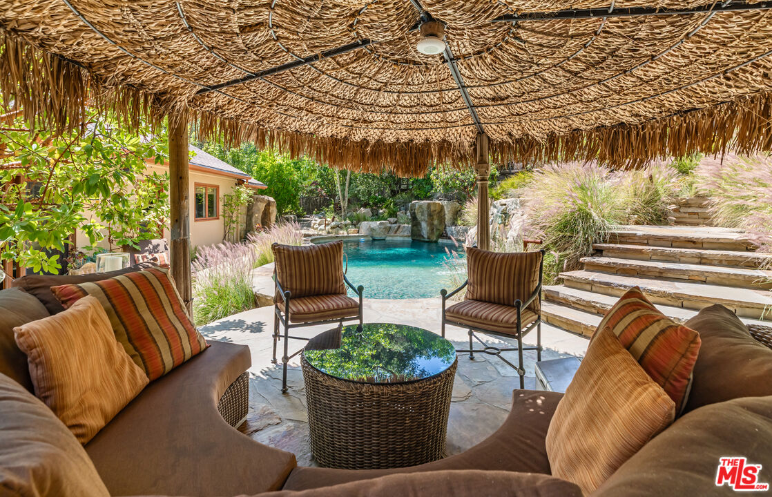 Welcome to 1064 Meadows End A One-of-a-Kind Architectural Sanctuary in Monte Nido's Coveted Malibu Canyon Neighborhood.Tucked at the end of a quiet cul-de-sac and framed by ancient sycamore and oak groves, this beautiful single-level home offers a rare blend of refined design and natural beauty. Set on just over an acre of mostly flat, park-like grounds, this property is a true staycation retreat private, peaceful, and surrounded by nature. Step through the serene entry with black flagstone pavers complete with a koi pond, and into an expansive, light-filled interior crafted with meticulous attention to detail. French Oak floors flow throughout, while dramatic wood-beamed ceilings and a striking four-sided fireplace anchor the open-concept living space. A wall of French doors seamlessly connects indoors to the entertainer's dream backyard, flooding the home with natural light and bringing the outside in. The chef's kitchen is a statement in both function and form featuring concrete countertops, top-tier appliances with double oven, warming drawer, ice machine, Sub Zero Refrigerator & Freezer, two dishwashers and custom cabinetry complete this fabulous kitchen. Skylights illuminate the adjacent dining area. A flexible floor plan offers 4 bedrooms, and 4 bathrooms ensures optimal privacy for guests, with well-separated secondary bedrooms. The newer primary suite is a sanctuary of its own, offering custom built-in cabinetry, soaring ceilings, French doors that welcome morning light, and a luxurious bath with a soaking tub and heated floors. A step-down family room leads out to a spectacular pool oasis designed by renowned landscape architect Nick Williams & Associates complete with a rock waterfall and lushly landscaped surroundings. The back 4th bedroom could serve as additional den / office with oversized closet / art or hobby room. The unique stone wall 3/4 pool bathroom opens to outdoor shower and private garden. Wander through flowering gardens and along meandering paths beneath majestic oak trees. Enjoy a rose garden, fruit trees and charming chicken coop, and plenty of flat usable land perfect for outdoor entertaining, quiet reflection, or simply soaking in the beauty of this magical setting. Additional features include 3 tankless water heaters, Dual Zone HVAC system, new Generator 2024 and a new roof in 2025. Ideally located just minutes from Malibu Creek State Park's hiking trails, the vibrant restaurants, shops and beaches of Malibu. Calabasas Commons, and the 101 Freeway. Situated in the award-winning Las Virgenes School District, this is not just a home it's a lifestyle. A rare architectural gem where nature meets design. A truly magical retreat.