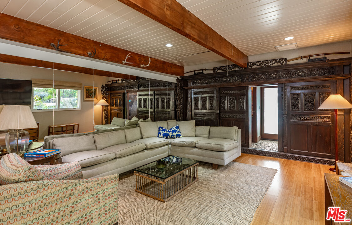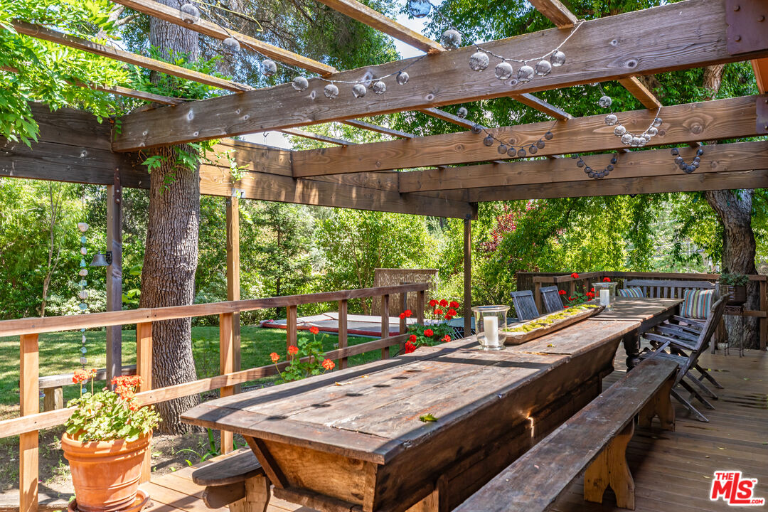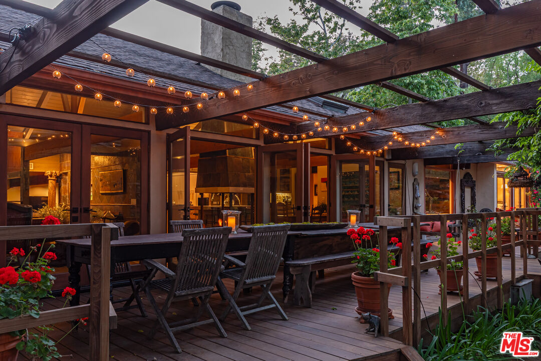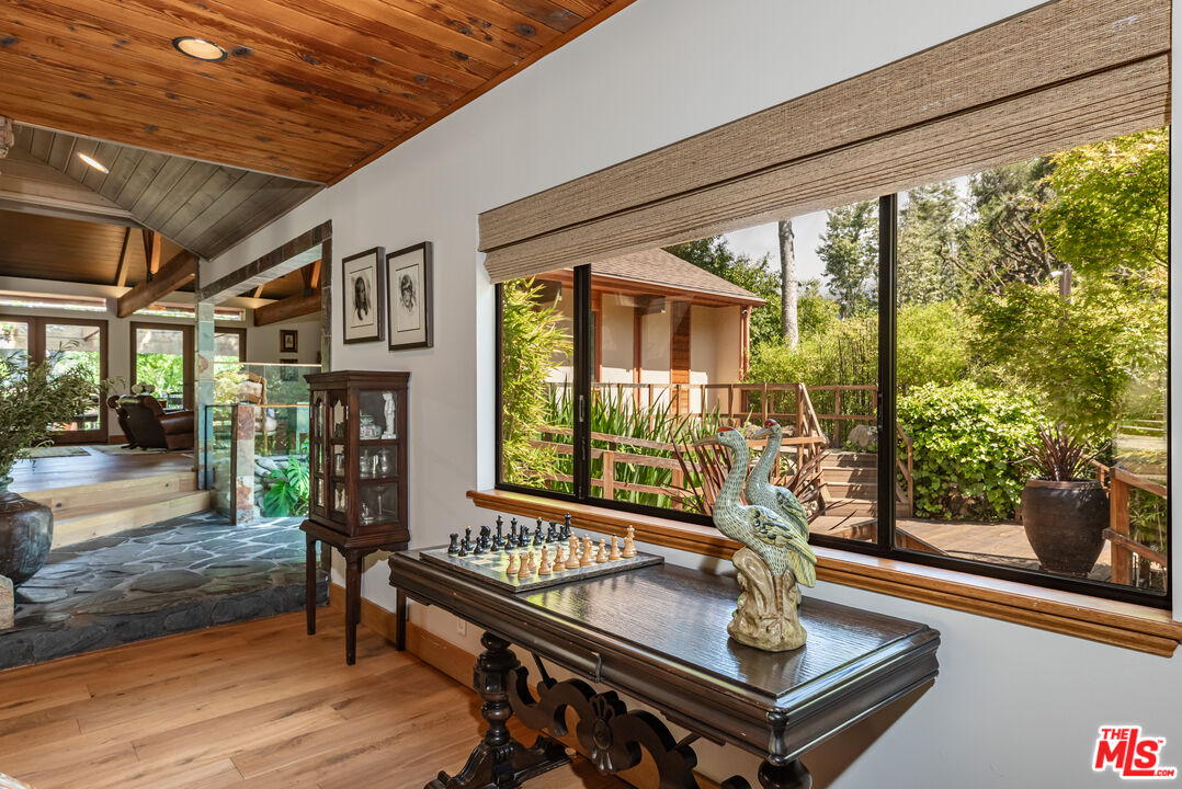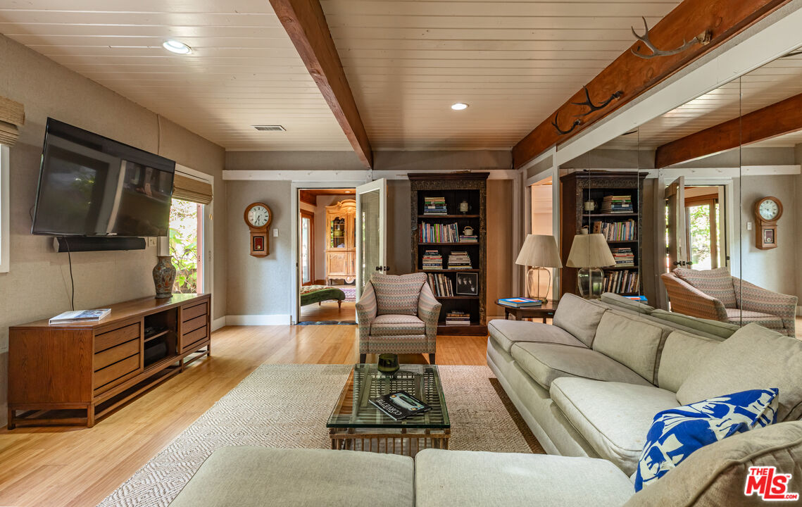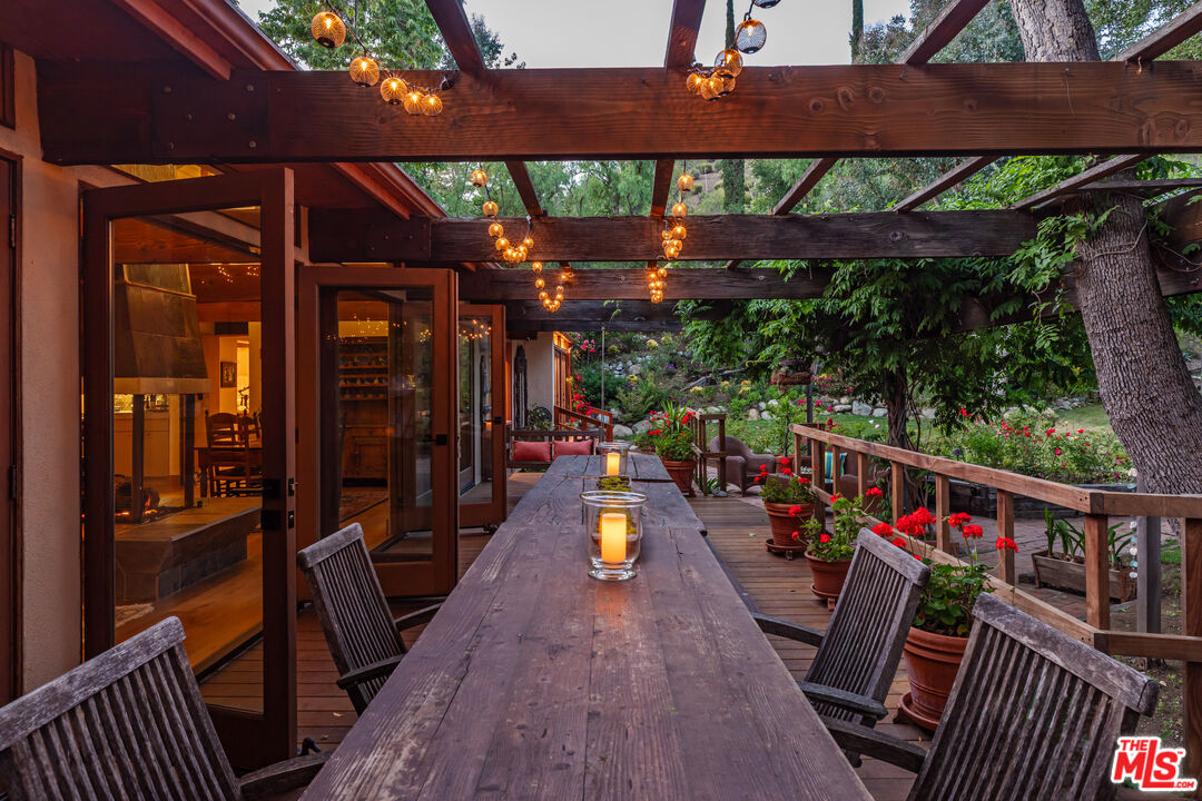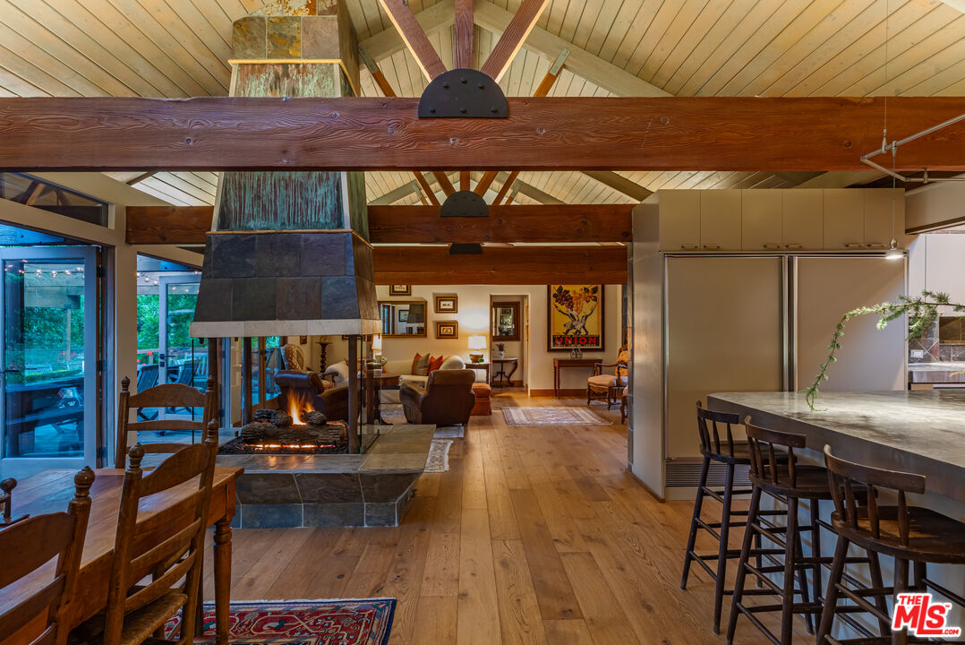 Welcome to 1064 Meadows End A One-of-a-Kind Architectural Sanctuary in Monte Nido's Coveted Malibu Canyon Neighborhood.Tucked at the end of a quiet cul-de-sac and framed by ancient sycamore and oak groves, this beautiful single-level home offers a rare blend of refined design and natural beauty. Set on just over an acre of mostly flat, park-like grounds, this property is a true staycation retreat private, peaceful, and surrounded by nature. Step through the serene entry with black flagstone pavers complete with a koi pond, and into an expansive, light-filled interior crafted with meticulous attention to detail. French Oak floors flow throughout, while dramatic wood-beamed ceilings and a striking four-sided fireplace anchor the open-concept living space. A wall of French doors seamlessly connects indoors to the entertainer's dream backyard, flooding the home with natural light and bringing the outside in. The chef's kitchen is a statement in both function and form featuring concrete countertops, top-tier appliances with double oven, warming drawer, ice machine, Sub Zero Refrigerator & Freezer, two dishwashers and custom cabinetry complete this fabulous kitchen. Skylights illuminate the adjacent dining area. A flexible floor plan offers 4 bedrooms, and 4 bathrooms ensures optimal privacy for guests, with well-separated secondary bedrooms. The newer primary suite is a sanctuary of its own, offering custom built-in cabinetry, soaring ceilings, French doors that welcome morning light, and a luxurious bath with a soaking tub and heated floors. A step-down family room leads out to a spectacular pool oasis designed by renowned landscape architect Nick Williams & Associates complete with a rock waterfall and lushly landscaped surroundings. The back 4th bedroom could serve as additional den / office with oversized closet / art or hobby room. The unique stone wall 3/4 pool bathroom opens to outdoor shower and private garden. Wander through flowering gardens and along meandering paths beneath majestic oak trees. Enjoy a rose garden, fruit trees and charming chicken coop, and plenty of flat usable land perfect for outdoor entertaining, quiet reflection, or simply soaking in the beauty of this magical setting. Additional features include 3 tankless water heaters, Dual Zone HVAC system, new Generator 2024 and a new roof in 2025. Ideally located just minutes from Malibu Creek State Park's hiking trails, the vibrant restaurants, shops and beaches of Malibu. Calabasas Commons, and the 101 Freeway. Situated in the award-winning Las Virgenes School District, this is not just a home it's a lifestyle. A rare architectural gem where nature meets design. A truly magical retreat.