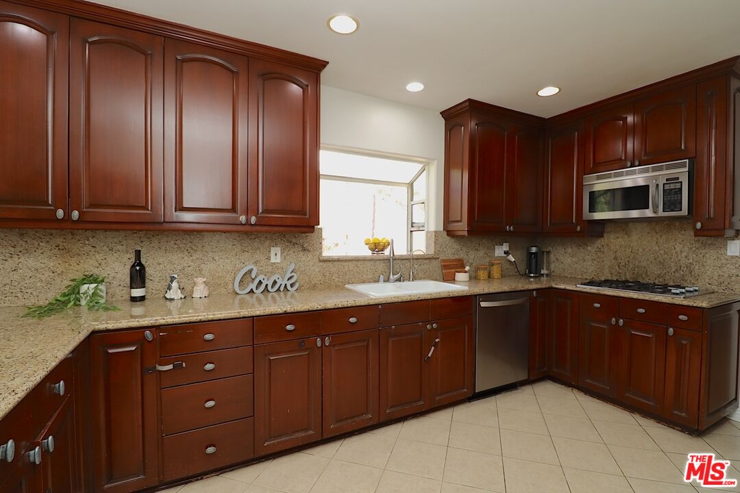 Proudly presenting this splendid gem in the highly sought-after tranquil neighborhood of Mulwood in Calabasas. Spacious and airy throughout, this beautiful single-story house showcases a bright and open layout welcomed by grand French double doors. This lovely house encapsulates the charm of a beloved, well-kept residence. Flooring throughout the house has been upgraded to thick real wood. The house stays cool during the intense California summers thanks to its close proximity to Malibu beach and Santa Monica mountain range, as well as the upgraded brand-new roofing with new clay tiles. In addition to the new roof, the plumbing lines have also been renovated anew. A point of emphasis is the newly built earthquake-proof patio, all done with city permits - the enjoyment of the gorgeous view of the stunning sunset during an al fresco dinner party on the new patio is, quite simply, spectacular. A total of 36 small trees have been planted in the huge backyard for extra privacy with new sprinkler lines installed to care for them. Backyard is big enough to build a pool or guest house. Peaceful during quiet hours coupled with beautiful singing from birds. Notably positioned within the highly desirable attendance boundary of award-winning Las Virgenes School Disctrict, three prestigious schools are just minutes away: Chaparrel Elementary, Alice C Stelle Middle School, and the amazing Calabasas High School. Also nearby are well-known markets, amenities, and shopping centers, popular eateries as well as major hospitals. Convenience of traffic in the area and the 101 freeway being near-at-hand accentuates the convenience of the home's outstanding location. 22651 Jameson Dr is a must-see and a can't-miss. Come seize your dream house.Interested in this Listing?