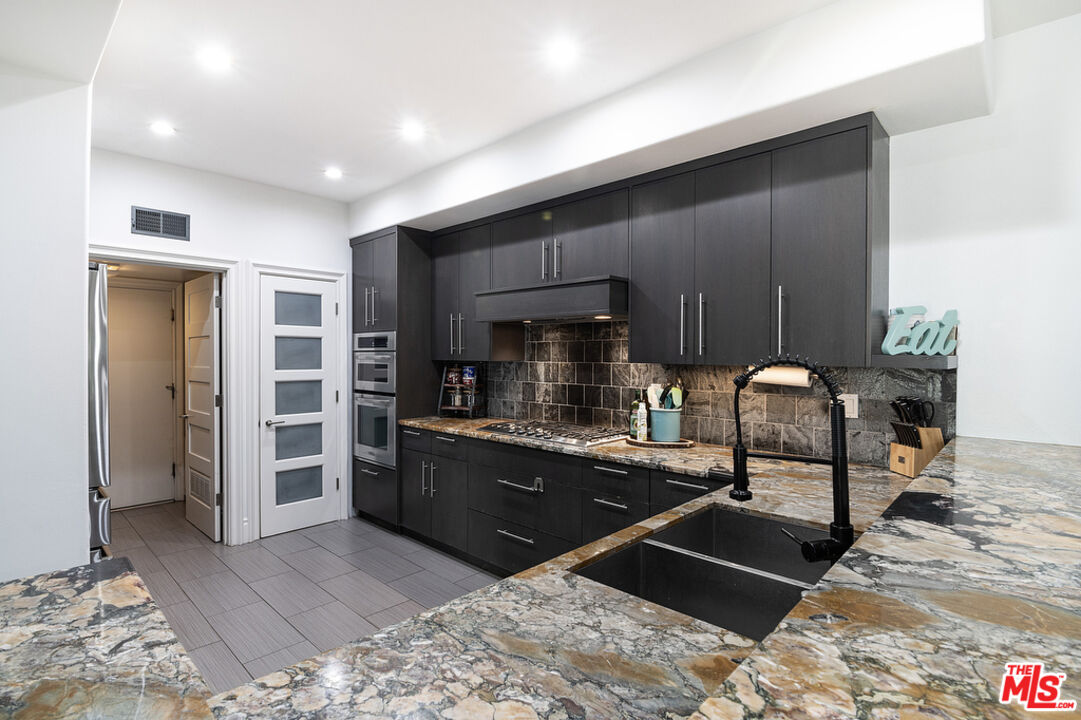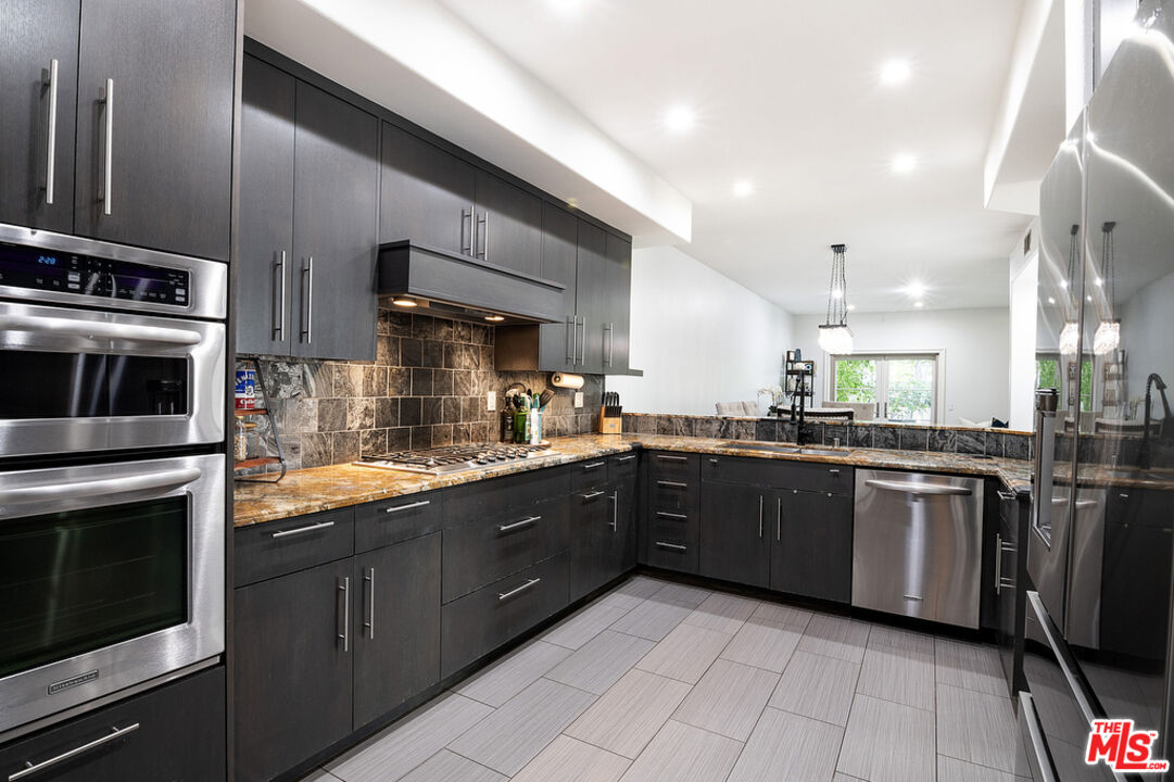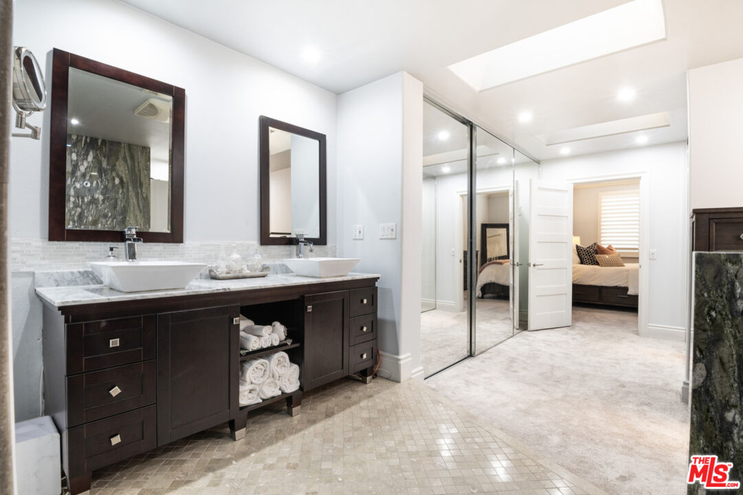 This updated, stylish townhome has 3 bedrooms, 2.5 bathrooms, and is located in the prestigious, gated Creekside community. Open floor plan with dramatic vaulted ceilings. Cook's kitchen boasts Samsung 4-door refrigerator, Viking 5-burner range/cooktop, and Avanti 20-bottle wine grotto. Living room has stunning glass-burning fireplace. Sunny downstairs bedroom could also be a perfect office. Elegant powder room downstairs for guests. Upstairs, find the primary bedroom with a spa-like, en-suite bathroom with large dressing area and an open walk-in shower. Second upstairs bedroom with luxurious ensuite bathroom has been converted to a giant custom closet, but can be converted back. French doors open to a beautiful, private backyard/patio with outdoor firepit. 2-car garage with direct access. Separate laundry room. Central A/C. Close to The Commons at Calabasas & Calabasas Lake. A rare find!Interested in this Listing?