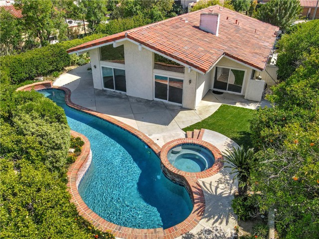 Welcome to this exquisite 3-bedroom, 3-bathroom single-story sanctuary nestled in the Calabasas Park neighborhood of Calabasas! Tucked away on a serene cul-de-sac, this home radiates refined sophistication and warmth. A grand entryway invites you into a luminous, open-concept living space with soaring vaulted ceilings, gleaming stone floors, and a cozy fireplace. The chef s kitchen is a culinary masterpiece, featuring a spacious center island, custom-crafted cabinetry, and built-in shelving for media and storage. The primary suite offers a private retreat with a fireplace, expansive walk-in closet, additional wardrobe space, and an ensuite bathroom with dual vanities and tiled shower. On the opposite wing, two spacious bedrooms share a sleek bathroom with a modern vanity. The front yard, enveloped by lush greenery and towering trees, ensures tranquil privacy, while the backyard is a stunning oasis with a sparkling pool, cascading spa, verdant lawn, and generous space for entertaining. Additional upgrades include a newer roof, newer water heater, and dual pane windows throughout. Just moments from the exclusive Calabasas Lake, vibrant Old Town Farmer s Market, and The Commons for premier shopping and dining. Discover this Calabasas gem today!Interested in this Listing?