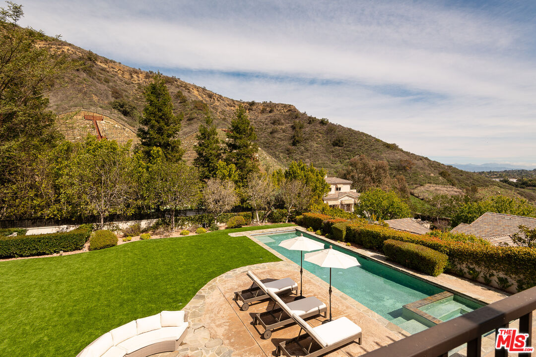 Located in the prestigious gated enclave of Park South Estates, this extraordinary 9,200 sq. ft. Tuscan-inspired estate offers unparalleled luxury and sophistication. Fully renovated and set on over three acres at the end of a tranquil cul-de-sac, this six-bedroom, nine-bathroom masterpiece boasts nearly one acre of lush, flat land with breathtaking vineyard and mountain views.A grand two-story foyer with a sweeping staircase sets the stage for the elegance within. Travertine and hardwood floors, four fireplaces, and impeccable craftsmanship define the interiors.Entertainment abounds with an oversized home theater for a true cinematic experience and a spacious upstairs recreation roomideal for a game room or home office. The chef's kitchen has been recently remodeled with custom cabinetry, marble countertops, Viking and Frigidaire appliances, and a large center island, perfect for culinary enthusiasts.Designed for grand-scale entertaining, the outdoor oasis features a custom saltwater pool and spa, full outdoor kitchen, fire pit, expansive grassy play area, and multiple covered terraces with ceiling fans and heaters. The serene backdrop of vineyards and twinkling city lights evokes the ambiance of Napa or Tuscany.The primary suite is a luxurious retreat, offering wraparound balconies, a fireplace, dual walk-in closets, a bar refrigerator, and a spa-inspired bath with a steam room, multiple showers, an indoor jacuzzi, a massage area, and a gymplus an additional private outdoor balcony.A separate guest wing functions as an independent guest house, complete with its own fireplace and French doors leading to the pool and spa. The family room, designed for both relaxation and entertaining, features a walk-in wet bar and beverage closet.Modern upgrades include a brand-new, energy-efficient seven-zone heating and cooling system, ensuring year-round comfort. Walls of French doors seamlessly blend indoor and outdoor living, opening to beautifully landscaped gardens.Situated minutes from Malibu Canyon and Mulholland, this exceptional estate provides effortless access to both Malibu and Calabasas. It is also conveniently located near premier shopping at Topanga Social Village and The Commons at Calabasas, the highly anticipated new Rams practice facility, and award-winning public and private schools.Experience the ultimate in luxury, privacy, and serenity in this breathtaking Calabasas estate.Interested in this Listing?