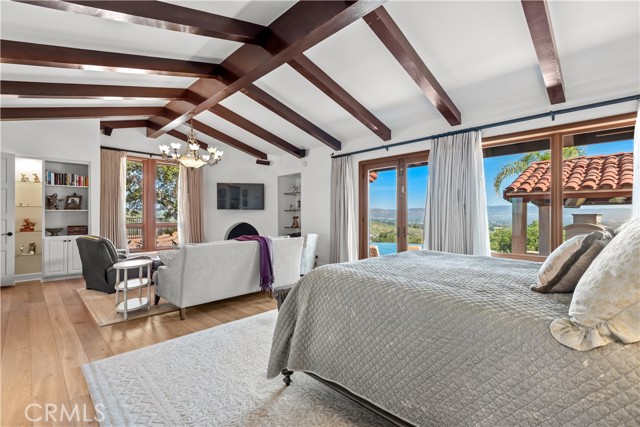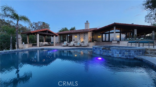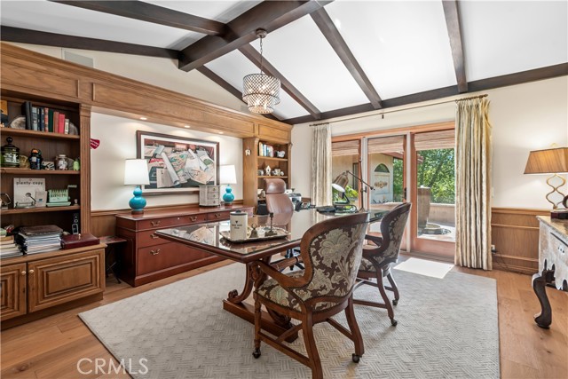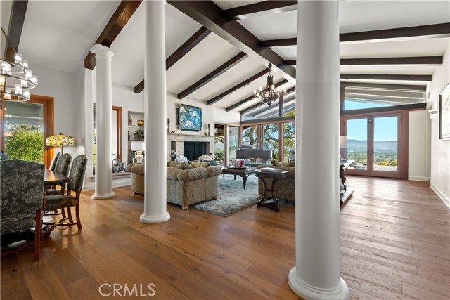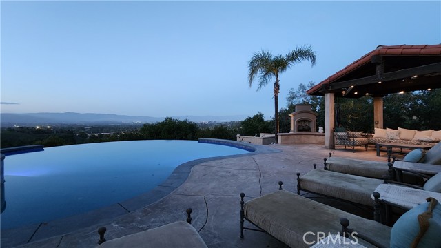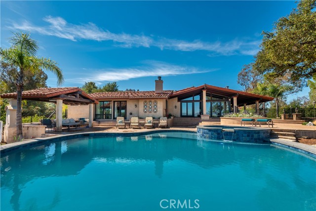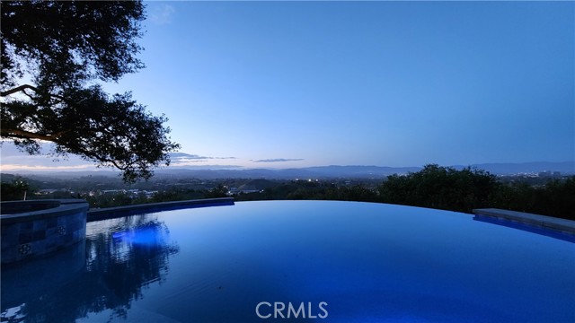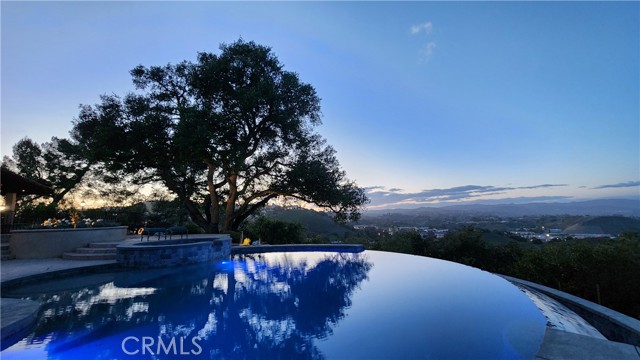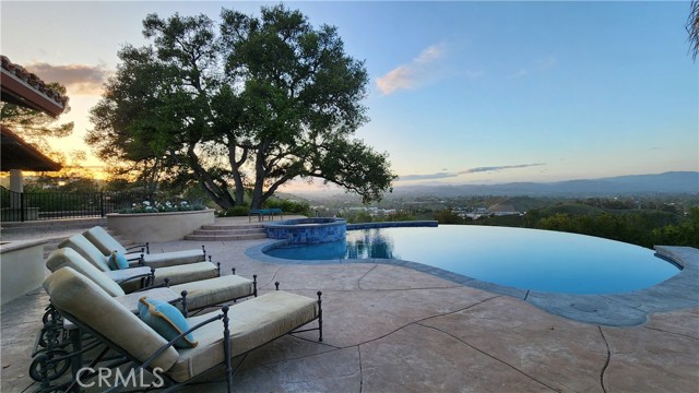A very rare find! First time on the market in 24 years, this privately gated, nicely upgraded one-story home features panoramic views and a big private lot. Amenities include a spacious chef's kitchen with two islands, freestanding Viking Range and a sunny breakfast room, plus a large great room with vaulted, open beam ceilings, stone fireplace, & walls of glass capturing the expansive views, with an adjoining, open dining room for casual entertaining, and two private offices. The big primary suite includes a fireplace, stone bath with walk-in shower & soaking tub, dual vanities, and a large walk-in closet. There is also an adjoining room (second office) that could be an additional large walk-in closet if desired. Additional amenities include wood floors, stone countertops and big picture windows that fill the home with natural light. The lushly landscaped grounds include a superb, just remodeled, infinity edge swimmers pool with spa, two covered patios, full barbecue center with refrigerator, stone countertops & seating, outdoor fireplace, and beautiful mature oak trees. With a prime location near several public and private schools, just minutes from Calabasas Park Lake, and The Commons shopping center, this custom home has much to offer.Interested in this Listing?