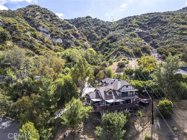 Welcome to your dream retreat over 3.5 acres of peaceful, scenic beauty tucked away in the stunning Santa Monica Mountains. This enchanting property features a spacious 5-bedroom main home and a charming separate guest house with its own garage, perfect for visitors, work-from-home space, or creative possibilities. Step inside the main house and feel instantly at home with rich hardwood floors, warm cedar ceilings, oak accents, and two cozy fireplaces one in the living room and another in the family room with gorgeous Bouquet Canyon river rock. The kitchen is a chef s delight, with custom cabinetry, a Viking double oven, and plenty of storage, while the elegant dining room and flexible maid s quarters add even more comfort and charm. Upstairs, unwind in the luxurious primary suite with a private deck, sitting area, wood-burning fireplace, and a spa-like bath with a jacuzzi tub and dual sinks. Three more bedrooms offer breathtaking views and share a spacious bathroom. Outside, the wrap-around deck invites you to soak in the mountain vistas, while the horse shed, oversized storage areas, and two-car garage with epoxy floors offer practical ease. A wrought-iron fence, electric gate, and beautifully stamped driveway complete this one-of-a-kind haven. Don t miss the chance to make this peaceful paradise your forever home schedule your private tour today!Interested in this Listing?