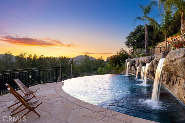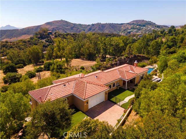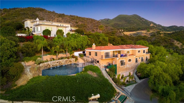 Gated Estate | Fully Landscaped | Unforgettable Views Tucked into the tranquil beauty of the Santa Monica Mountains, this estate is a rare find blending architectural elegance with nature s finest views. Perched just off the iconic Mulholland Highway and resting on nearly an acre of fully landscaped land, this 4,579 sq. ft. residence offers an unmatched lifestyle.Enjoy some of the most breathtaking views in the entire Santa Monica Mountain range, with sunsets off the patio that will truly take your breath away.Originally built in 2008, the home features a brand new negative-edge pool and spa oasis, complete with cascading waterfalls for a true resort-style experience. The outdoor space is an entertainer s dream, boasting a fully equipped kitchen with a built-in pizza oven, high-end grill, and prep area all set against a stunning mountain backdrop. Inside, the chef s kitchen is outfitted with a Viking 8-burner stainless steel range and an oversized center island, perfect for hosting and everyday living. Throughout the home, you ll find beautiful hardwood flooring, along with rich alder wood finishes including custom casement windows, French doors, interior doors, and baseboards.The main level offers light-filled living areas with a southwest-facing orientation, while four spacious bedrooms are located on the lower level. There is also ample room to further customize the home to your vision. Located just seconds from Viewpoint School and within the award-winning Las Virgenes Unified School District, this gated estate is ideally positioned just minutes from Malibu s beaches and the Calabasas Commons offering the perfect blend of natural serenity and everyday convenience.Interested in this Listing?