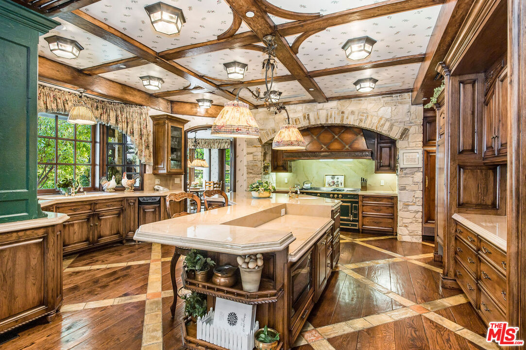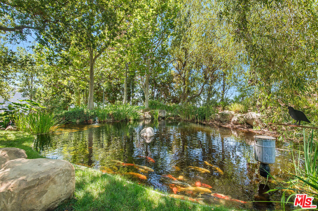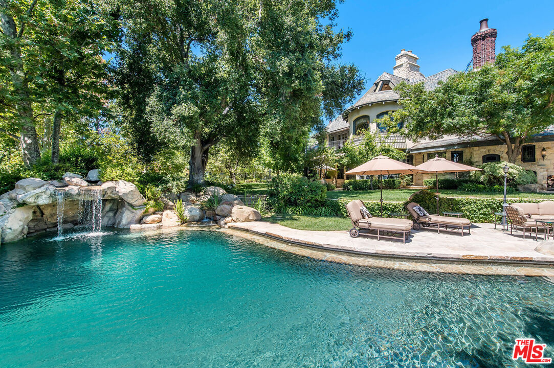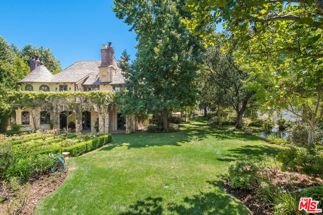 Stunning French-inspired Chateau situated on 10+ acres of serene park like grounds within the exclusive gated Calabasas enclave of Cold Creek Estates. Enjoy breathtaking and unobstructed canyon views from this remarkable residence, surrounded by the magical and unparalleled natural setting of the Santa Monica Mountains. This custom-built estate spans over 11,000 square feet of luxury craftsmanship meticulously designed and constructed to perfection. As you enter the double iron gates and stately motor court, this palatial storybook residence welcomes you. Throughout the interior, discover artisanal details such as intricately designed beamed ceilings, hand-distressed white oak flooring and custom solid wood doors and French imported hardware. Upon entering, the grand foyer flows seamlessly into the dramatic garden room conservatory providing a precursor view of the extraordinary gardens beyond. With 6 well-appointed bedroom suites, 11 bathrooms, subterranean stone wine cellar with tasting room and media/poker room, gym with private sauna, and a distinguished formal library, every corner of this home exudes refinement. The culinary chef's kitchen is well equipped with top-tier appliances including a La Cornue range, full size Sub Zero refrigerator and freezer, two dishwashers, warming oven, double wall ovens and two walk-in pantries. The expansive center island has a dedicated baking station, prep sink and breakfast bar. Enjoy the start of your day with coffee or tea in the sun-lit breakfast nook and end your day with a nightcap and Netflix by a warm fire in the adjacent den. Atop the floating staircase sits the impressive primary suite complete with private entry, three fireplaces and sitting room. The luxurious sleeping quarters are accentuated with volume coffered ceilings, fireplace and a private balcony that overlooks the expansive estate. The sumptuous primary bathroom offers dual vanities, spa soaking tub and warming fireplace plus a dressing room with dual walk-in closets and large makeup vanity. Additionally, the second level offers three en-suite bedrooms, ensuring ample space for your family and guests. The lush grounds are a true wonder, featuring an infinity-edge pool with waterfall grotto, spacious covered poolside pavilion with BBQ station, stone surround fireplace and a dedicated 3/4 bath plus changing room. A colorful English rose garden and vine-covered gazebo flank the meticulously manicured lawns, a serene koi pond and mature landscaping. Meandering pathways lead down to the greenhouse and citrus trees and invite exploration throughout the property. An elevator provides easy access across all levels, ensuring both luxury and accessibility. Other notable features include a caretaker's guest cottage, a rooftop observatory, ten uniquely designed fireplaces, imported slate roof and a four-car garage. This residence offers a truly extraordinary opportunity to own an estate that seamlessly blends luxury, craftsmanship, and the serene beauty of its natural surroundings.