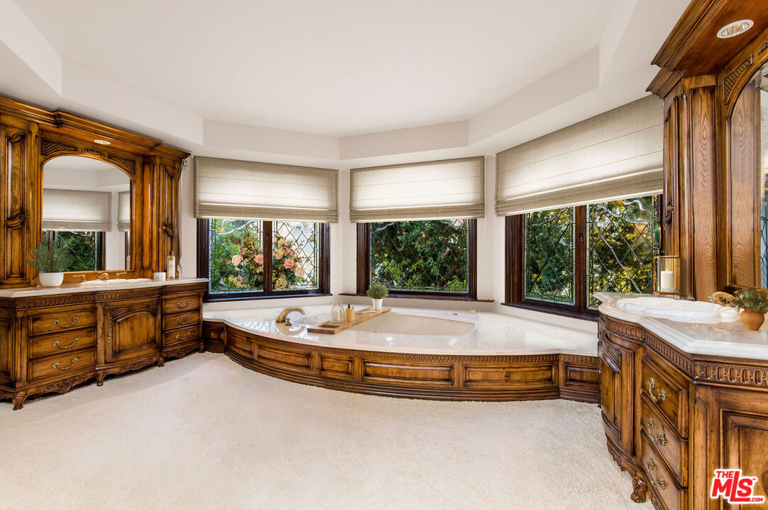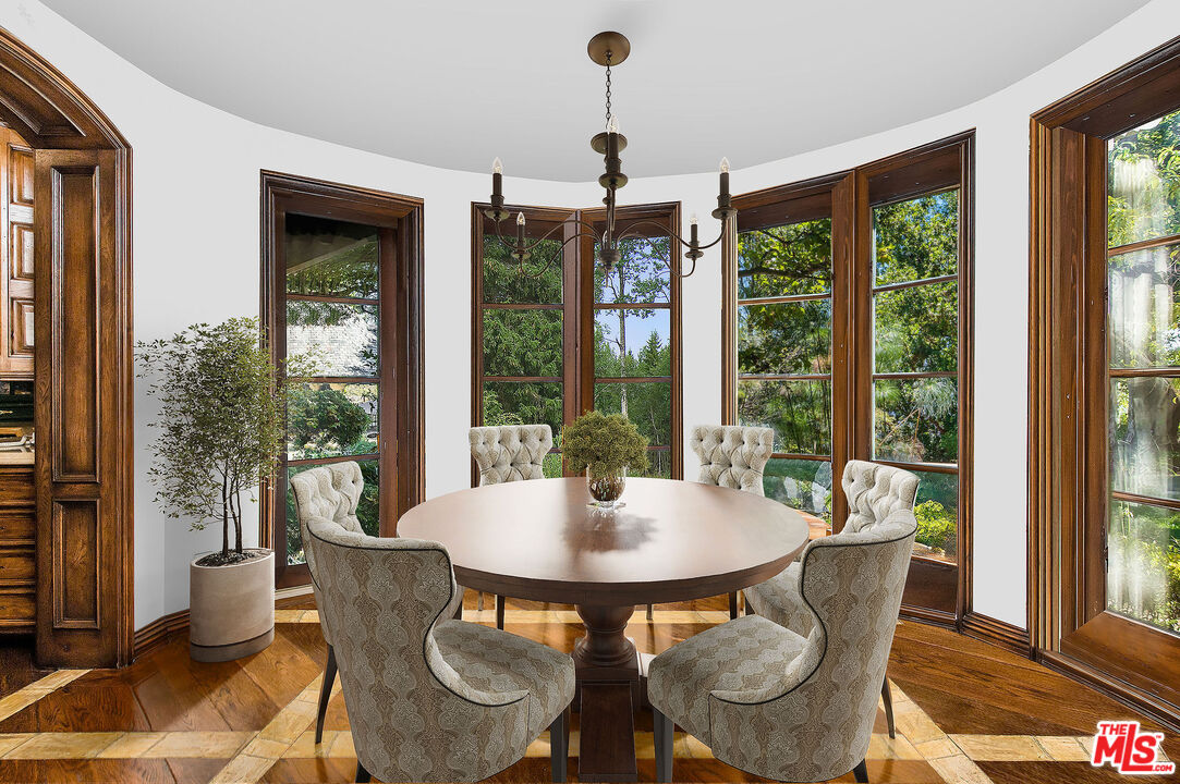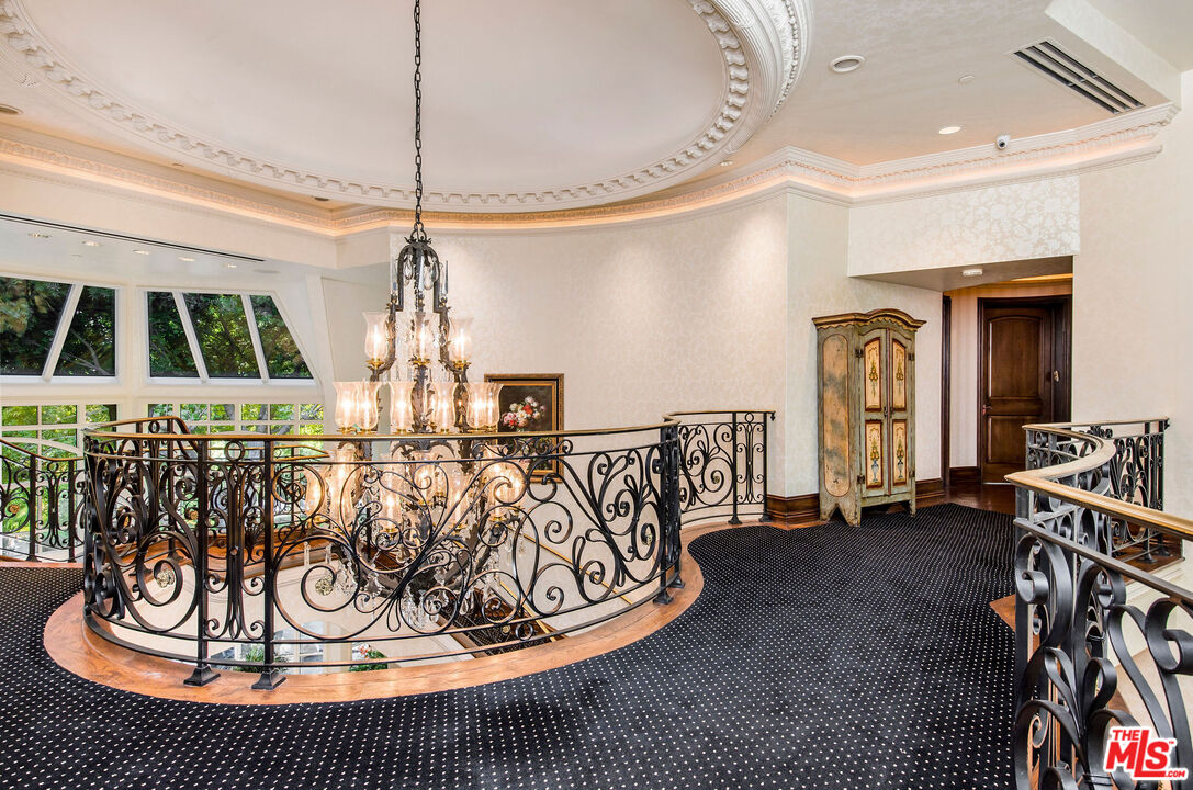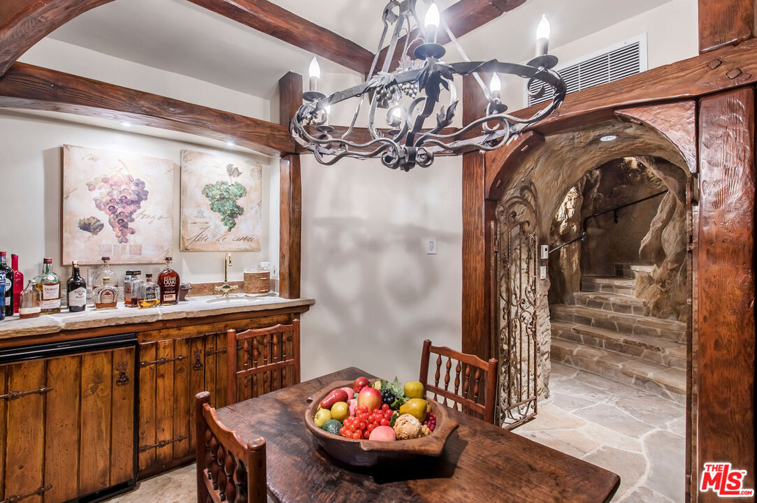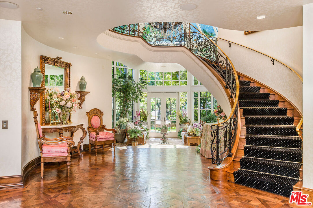 Stunning French-inspired Chateau situated on 10+ acres of serene park like grounds within the exclusive gated Calabasas enclave of Cold Creek Estates. Enjoy breathtaking and unobstructed canyon views from this remarkable residence, surrounded by the magical and unparalleled natural setting of the Santa Monica Mountains. This custom-built estate spans over 11,000 square feet of luxury craftsmanship meticulously designed and constructed to perfection. As you enter the double iron gates and stately motor court, this palatial storybook residence welcomes you. Throughout the interior, discover artisanal details such as intricately designed beamed ceilings, hand-distressed white oak flooring and custom solid wood doors and French imported hardware. Upon entering, the grand foyer flows seamlessly into the dramatic garden room conservatory providing a precursor view of the extraordinary gardens beyond. With 6 well-appointed bedroom suites, 11 bathrooms, subterranean stone wine cellar with tasting room and media/poker room, gym with private sauna, and a distinguished formal library, every corner of this home exudes refinement. The culinary chef's kitchen is well equipped with top-tier appliances including a La Cornue range, full size Sub Zero refrigerator and freezer, two dishwashers, warming oven, double wall ovens and two walk-in pantries. The expansive center island has a dedicated baking station, prep sink and breakfast bar. Enjoy the start of your day with coffee or tea in the sun-lit breakfast nook and end your day with a nightcap and Netflix by a warm fire in the adjacent den. Atop the floating staircase sits the impressive primary suite complete with private entry, three fireplaces and sitting room. The luxurious sleeping quarters are accentuated with volume coffered ceilings, fireplace and a private balcony that overlooks the expansive estate. The sumptuous primary bathroom offers dual vanities, spa soaking tub and warming fireplace plus a dressing room with dual walk-in closets and large makeup vanity. Additionally, the second level offers three en-suite bedrooms, ensuring ample space for your family and guests. The lush grounds are a true wonder, featuring an infinity-edge pool with waterfall grotto, spacious covered poolside pavilion with BBQ station, stone surround fireplace and a dedicated 3/4 bath plus changing room. A colorful English rose garden and vine-covered gazebo flank the meticulously manicured lawns, a serene koi pond and mature landscaping. Meandering pathways lead down to the greenhouse and citrus trees and invite exploration throughout the property. An elevator provides easy access across all levels, ensuring both luxury and accessibility. Other notable features include a caretaker's guest cottage, a rooftop observatory, ten uniquely designed fireplaces, imported slate roof and a four-car garage. This residence offers a truly extraordinary opportunity to own an estate that seamlessly blends luxury, craftsmanship, and the serene beauty of its natural surroundings.