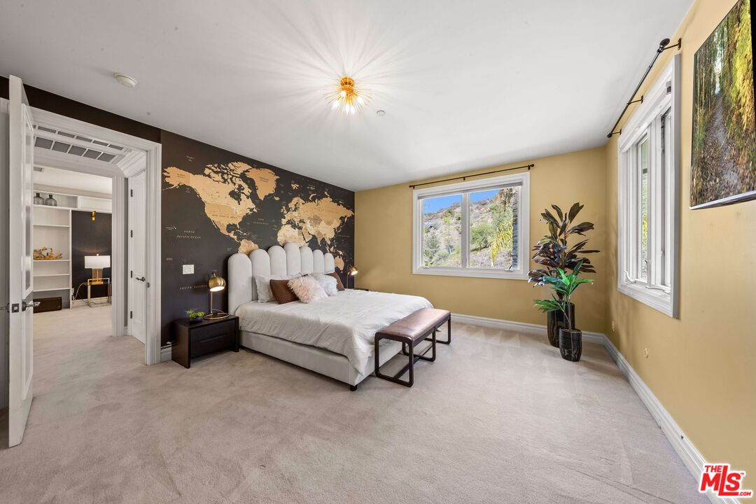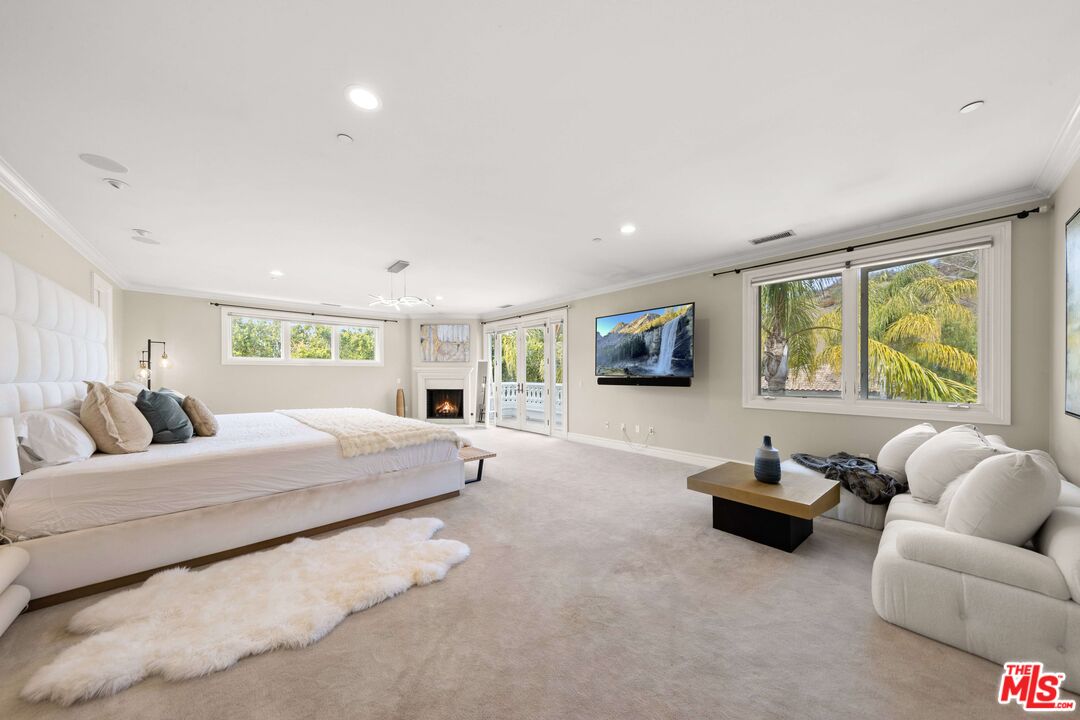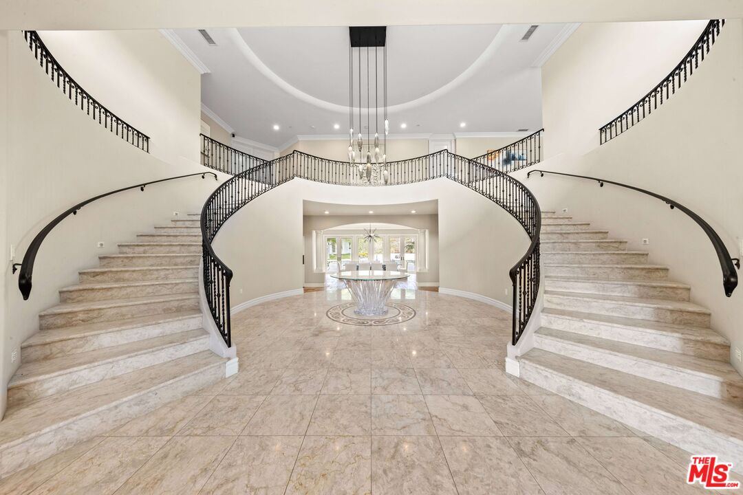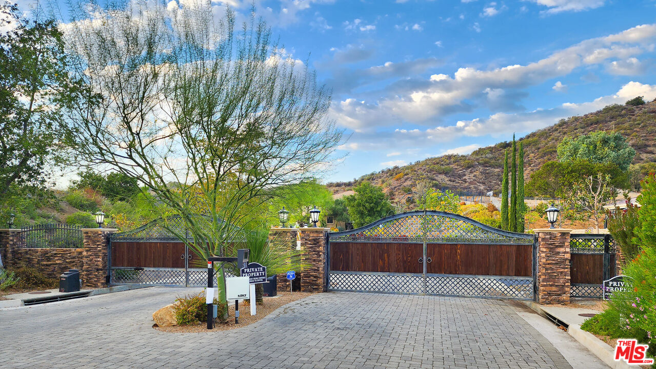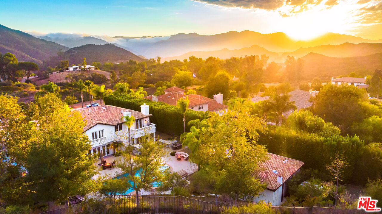 Tucked behind the Abercrombie Ranch Estates gates, a premier gated community with all custom homes and celebrity conclave, this breathtaking compound spans nearly 10 serene acres. Step through the grand double glass doors into a soaring foyer, where a sweeping dual staircase sets the stage for a palatial yet inviting home. To the right, the formal living room exudes sophistication, perfect for entertaining. To the left, the formal dining room awaits intimate gatherings. At the heart of the home, the chef's kitchen boasts a spacious island, custom cabinetry, stone countertops, and top-tier stainless appliances, seamlessly connecting to the cozy family room. Upstairs, the private primary suite offers a tranquil retreat with a fireplace, office nook, and balcony overlooking the resort-style backyard. The spa-like bath features dual walk-in closets, a steam shower, and two water closets. Three en-suite bedrooms surround an upstairs lounge, while two additional en-suite bedrooms sit on the main floor. A bonus room downstairs is ideal for a gym or office. Outside, the lush grounds showcase mature palms, a sprawling lawn, and a sparkling pool with a Baja step and spa. The outdoor kitchen and bar make entertaining effortless, while the detached spacious pool house with its living room, fireplace, bedroom, and bath adds a private guest retreat. Two double-car garages flank the expansive driveway, framing panoramic views of the Santa Monica Mountains. Complete with a solar panel system and generator, this estate blends luxury, comfort, and sustainability in a spectacular setting.Interested in this Listing?