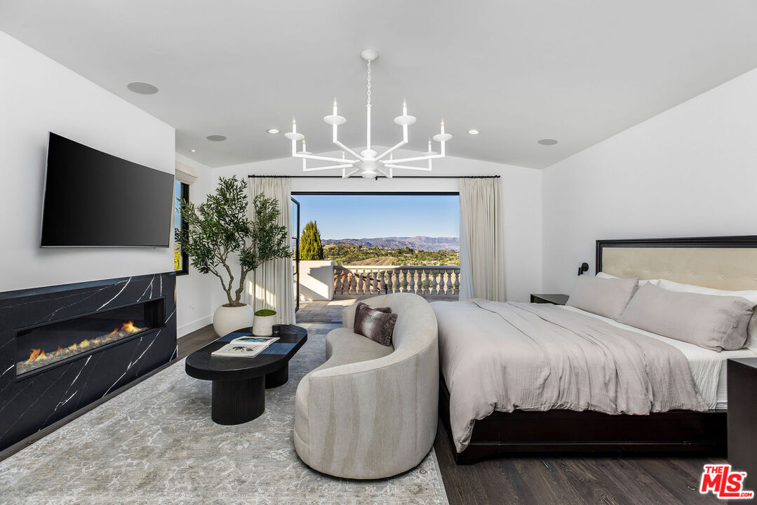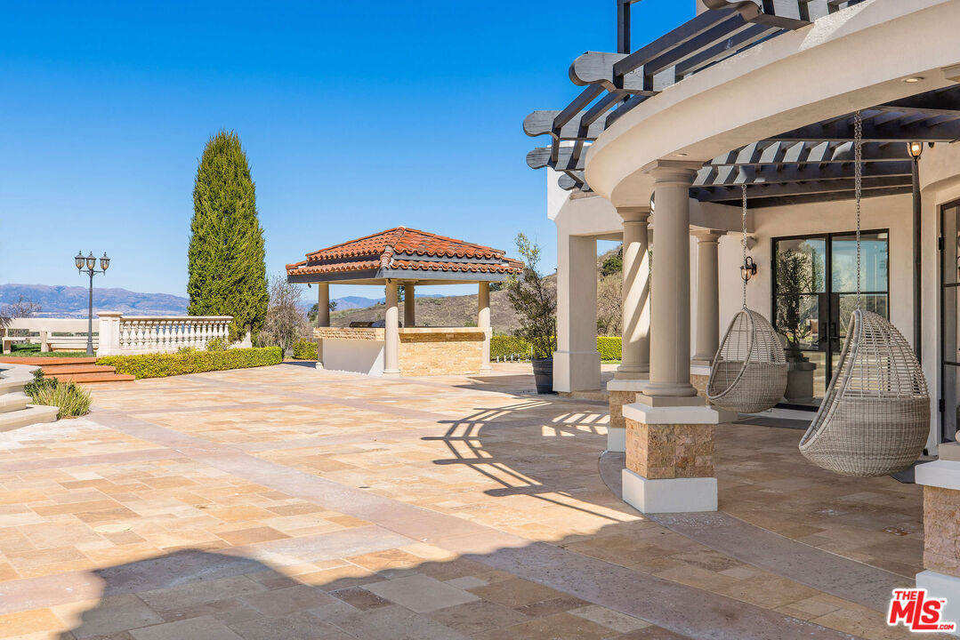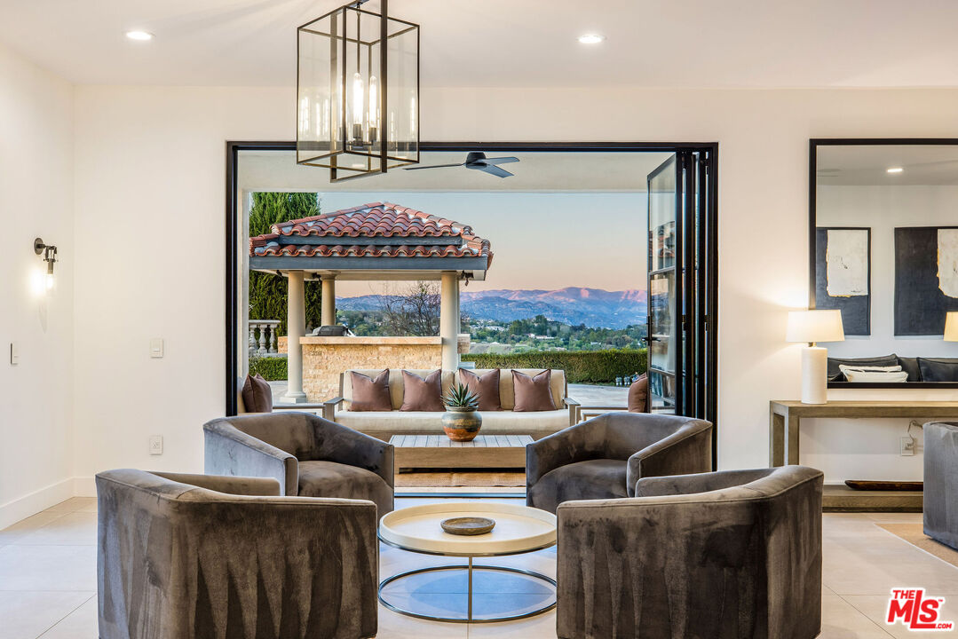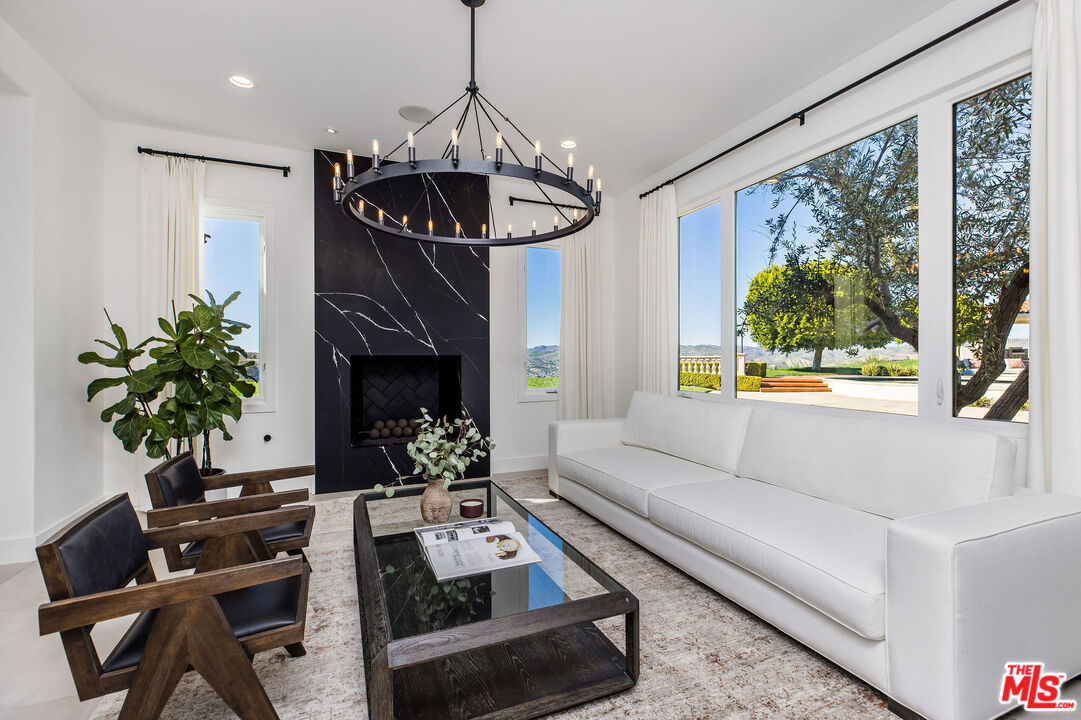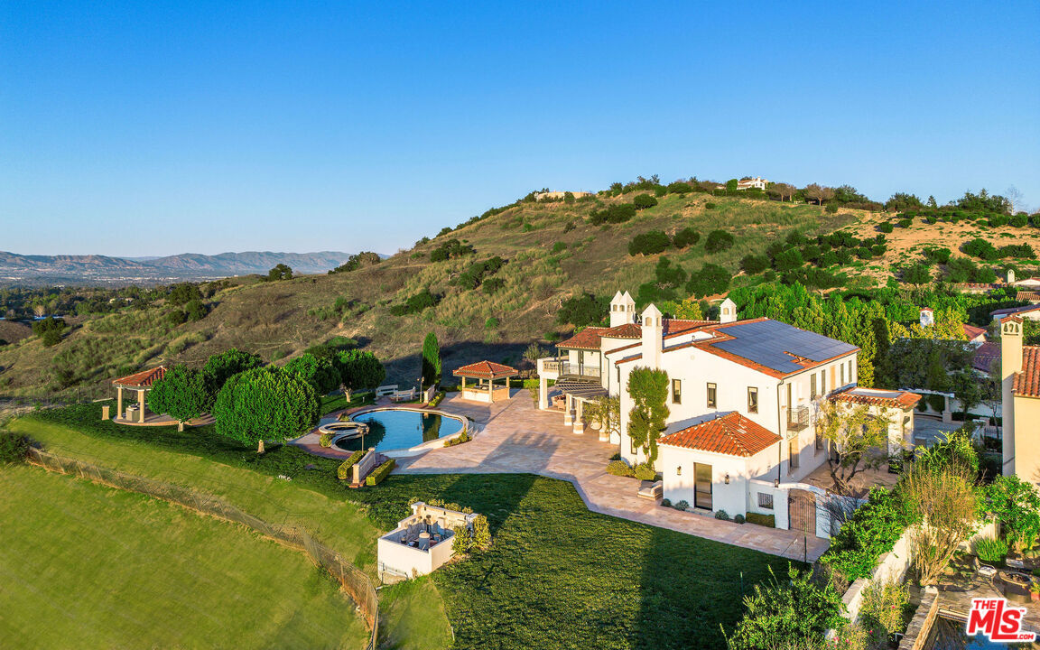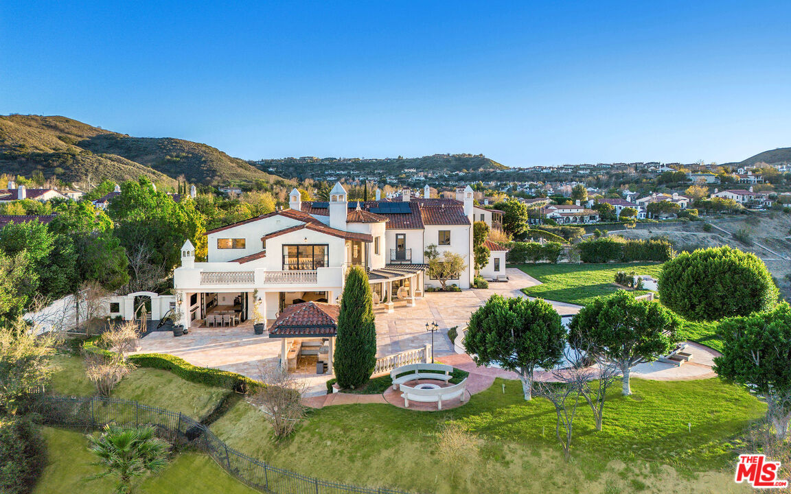 Perched atop a private vantage point behind its own gated entrance, this extraordinary estate spans 7,000 sq. ft., offering an exquisite fusion of timeless elegance and contemporary luxury. Every detail has been meticulously curated, presenting a masterfully designed residence with 270-degree uninterrupted views that captivate from sunrise to sunset. Step inside to soaring ceilings, abundant natural light, and a thoughtfully designed layout that seamlessly blends sophistication with warmth. Exquisite high-end finishes adorn every space, creating a home that is both inviting and impressive. At the heart of the home, the gourmet chef's kitchen stands as a culinary masterpiece, featuring dual waterfall-edge quartz countertops, and a striking 200-bottle temperature-controlled wine wall. Concrete-look 48" porcelain tile floors provide a sleek, modern touch, while the formal living room's statement Suede Quartz fireplace enhances the ambiance. A home-wide surround sound system ensures an immersive experience throughout the residence. Designed for seamless indoor-outdoor living, custom 10' bi-fold steel doors open to an outdoor retreat. The outdoor kitchen and BBQ area set the stage for grand entertaining, complemented by a saltwater pool, in-ground fire pit, and private basketball courtperfect for both relaxation and recreation. Entertainment reaches new heights with a state-of-the-art, 9-seat home theater featuring a 120" screen and immersive surround sound. Indulge in a spa-inspired sanctuary, complete with heated bathroom floors, marble showers, and a private gym. The dedicated wellness area boasts a dry infrared sauna, steam shower and a offering the ultimate in-home relaxation experience. The primary suite is a tranquil escape, featuring a cozy fireplace, a spacious walk-in custom closet, a private terrace that frames breathtaking mountain views. Spanning 1.5 acres of manicured grounds, this estate offers a 4-car garage with additional parking for 6-7 vehicles. A cutting-edge 95kW solar system and backup generator ensure sustainability and seamless energy efficiency. More than a residence, this exceptional estate redefines luxury livinga rare opportunity behind the coveted gates of The Oaks in Calabasas.Interested in this Listing?