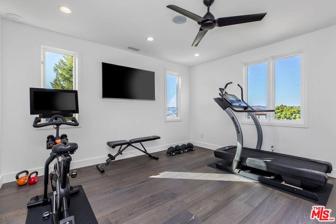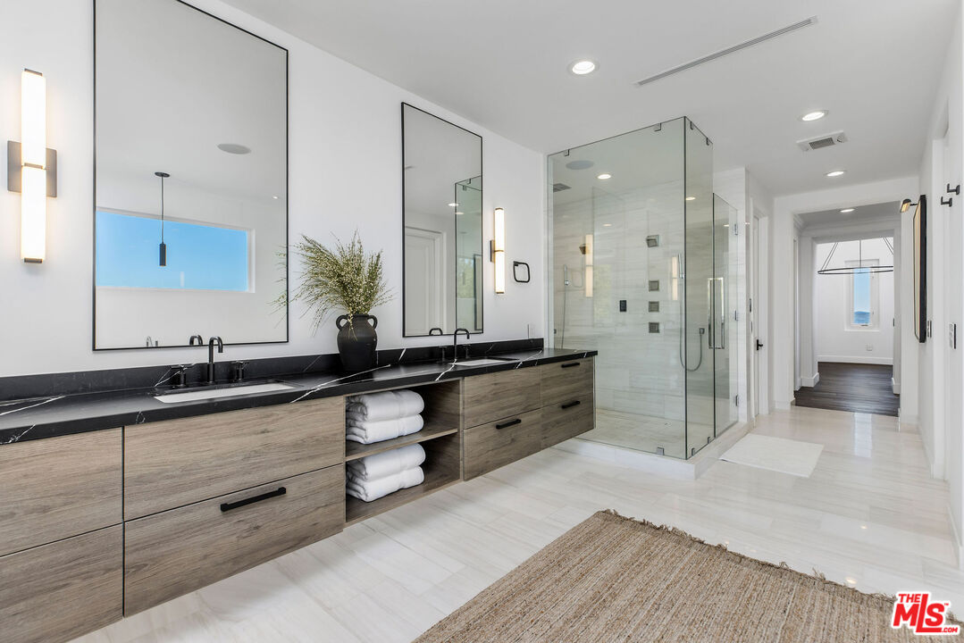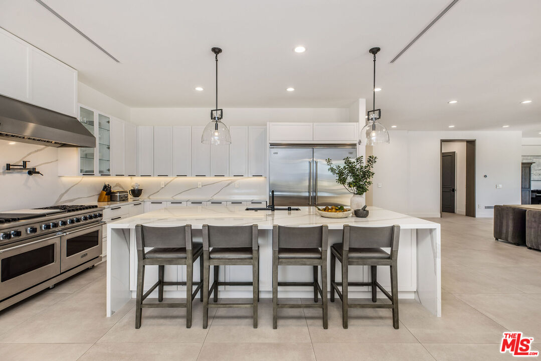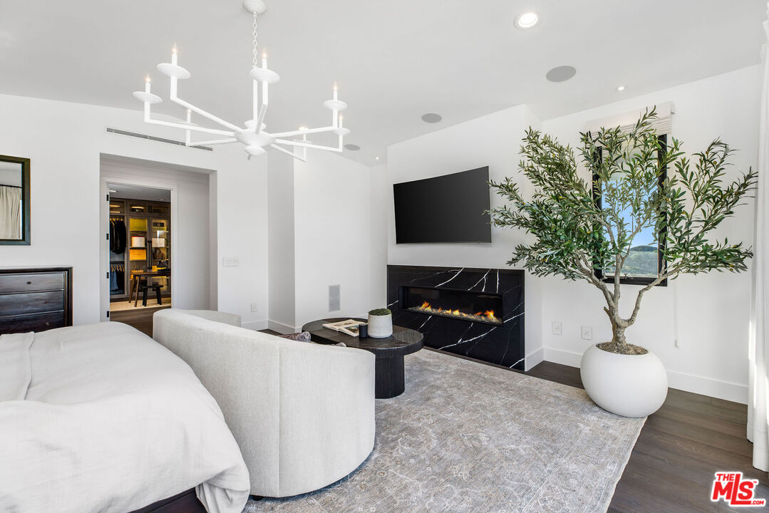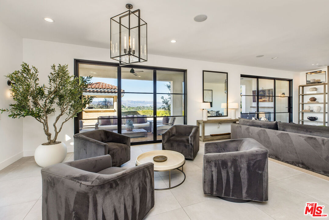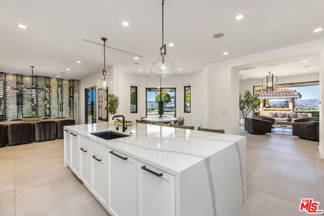 Perched atop a private vantage point behind its own gated entrance, this extraordinary estate spans 7,000 sq. ft., offering an exquisite fusion of timeless elegance and contemporary luxury. Every detail has been meticulously curated, presenting a masterfully designed residence with 270-degree uninterrupted views that captivate from sunrise to sunset. Step inside to soaring ceilings, abundant natural light, and a thoughtfully designed layout that seamlessly blends sophistication with warmth. Exquisite high-end finishes adorn every space, creating a home that is both inviting and impressive. At the heart of the home, the gourmet chef's kitchen stands as a culinary masterpiece, featuring dual waterfall-edge quartz countertops, and a striking 200-bottle temperature-controlled wine wall. Concrete-look 48" porcelain tile floors provide a sleek, modern touch, while the formal living room's statement Suede Quartz fireplace enhances the ambiance. A home-wide surround sound system ensures an immersive experience throughout the residence. Designed for seamless indoor-outdoor living, custom 10' bi-fold steel doors open to an outdoor retreat. The outdoor kitchen and BBQ area set the stage for grand entertaining, complemented by a saltwater pool, in-ground fire pit, and private basketball courtperfect for both relaxation and recreation. Entertainment reaches new heights with a state-of-the-art, 9-seat home theater featuring a 120" screen and immersive surround sound. Indulge in a spa-inspired sanctuary, complete with heated bathroom floors, marble showers, and a private gym. The dedicated wellness area boasts a dry infrared sauna, steam shower and a offering the ultimate in-home relaxation experience. The primary suite is a tranquil escape, featuring a cozy fireplace, a spacious walk-in custom closet, a private terrace that frames breathtaking mountain views. Spanning 1.5 acres of manicured grounds, this estate offers a 4-car garage with additional parking for 6-7 vehicles. A cutting-edge 95kW solar system and backup generator ensure sustainability and seamless energy efficiency. More than a residence, this exceptional estate redefines luxury livinga rare opportunity behind the coveted gates of The Oaks in Calabasas.Interested in this Listing?