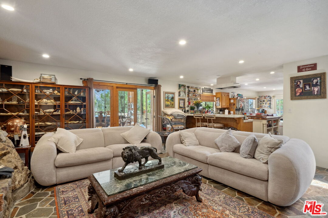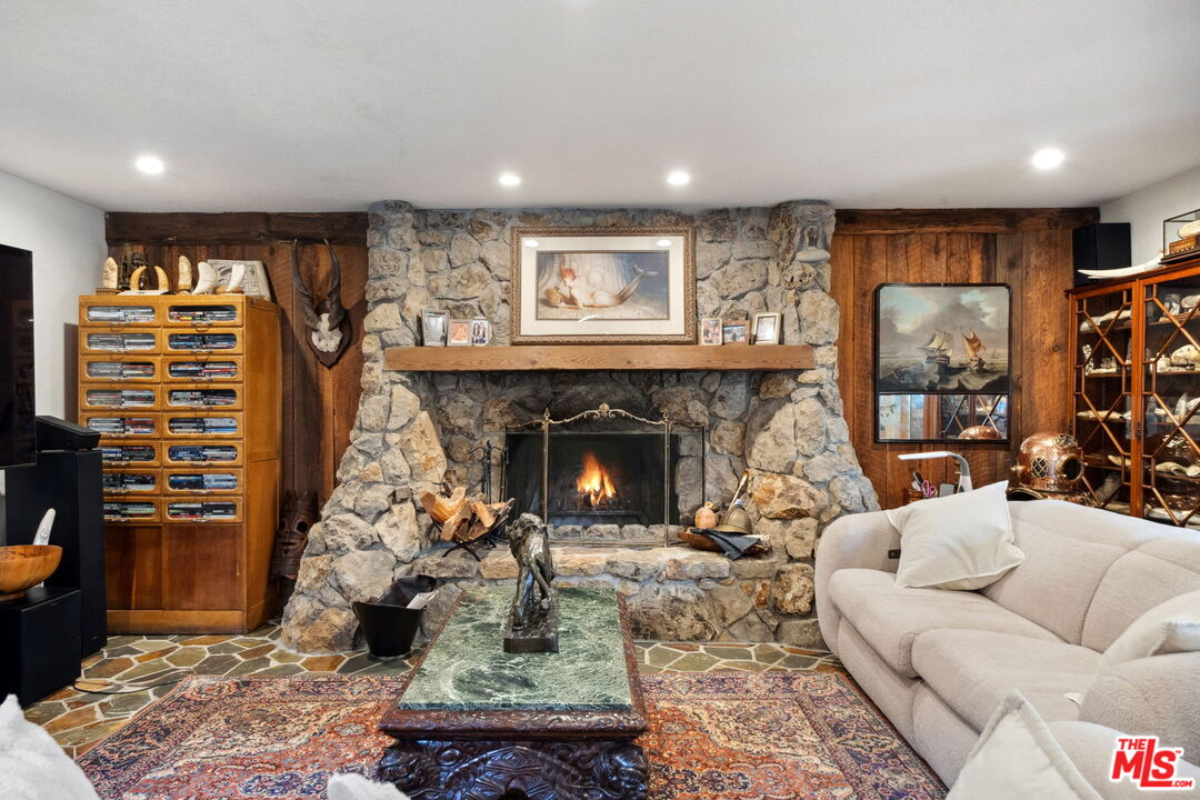 Tucked away at the end of a long, private driveway, this rustic residence offers an extraordinary opportunity across 5 acres of expansive, flat land an unparalleled offering that could never be replicated today. The entire property is accessible by car, leading to cleared, terraced acres framed by mature trees and features a guest house, rustic barn and horse rings, creating a serene and private retreat. Perched at the top of the driveway, the home ensures complete seclusion. Its rustic charm is showcased through original rock fireplaces, sourced from the property itself, and intricate woodwork that enhances the space. The layout is designed for seamless living, with the formal living room flowing effortlessly into both a cozy den and a spacious family room, each connecting to the kitchen. All main living areas open to the lush gardens and inviting pool, providing a perfect balance of indoor and outdoor living.Upstairs, the primary suite features a tranquil sitting room, along with three additional bedrooms and a bath. While this home offers a sense of retreat in the mountains, it's just a short 5-10 minute drive to both the heart of Malibu and the 101 freeway. With endless potential, this is your opportunity to create a bespoke estate in one of the most coveted locations.Interested in this Listing?
