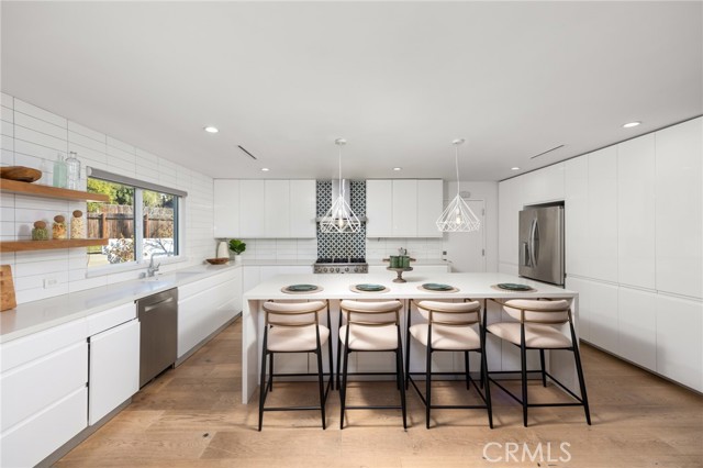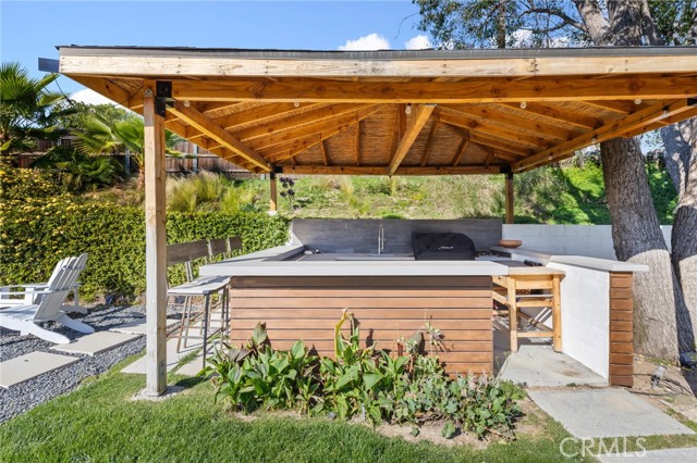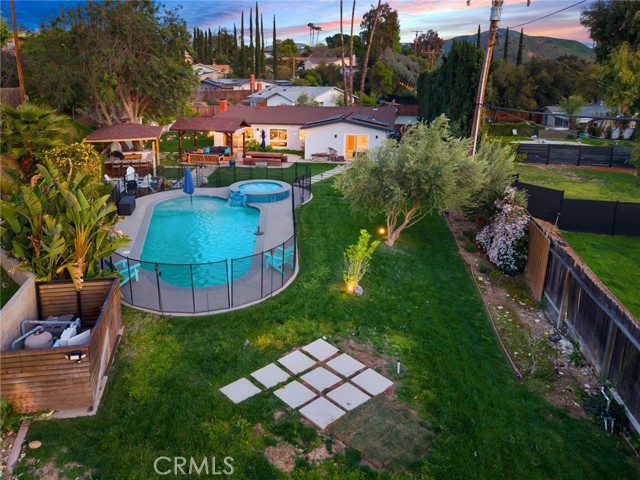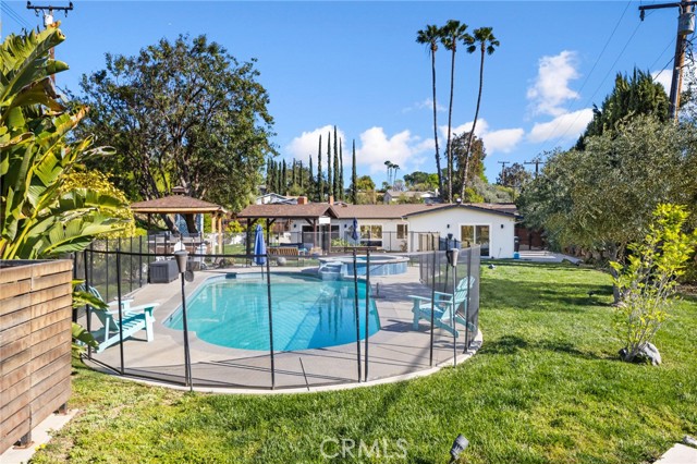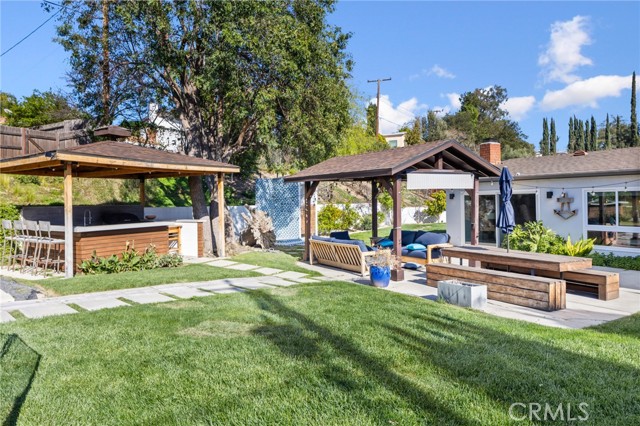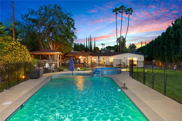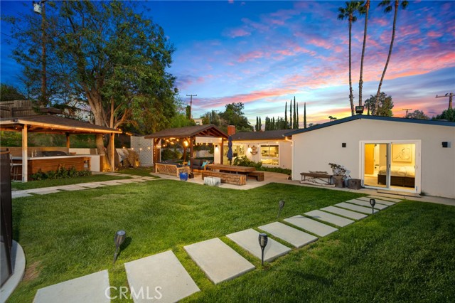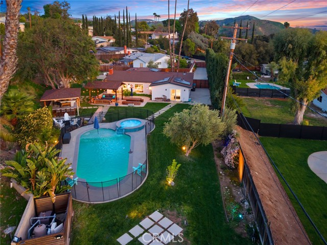 Welcome home to this stunning entertainer s dream private oasis in Calabasas! The 1,850 sq ft single-level home on over half of an acre has been updated inside & out. Upon your arrival, you will be greeted by a secured entry gate at the street, followed by a long driveway w/ mature landscaping & lighting, which leads to this amazing home & property setback from the street. Once inside this turnkey home, you step in to the front entry, which leads to the expansive open-concept great room, which includes the large dining area, living room with cozy fireplace, and gourmet kitchen. The amazing kitchen includes a large island w/ additional dining space, top-of-the-line appliances, quartz countertops, and an abundance of cabinetry. Off the hallway is a remodeled powder room, ideal for guests, followed by 3 bedrooms & 3 remodeled bathrooms. 2 of the bedrooms are suites w/ attached full bathrooms, including the luxurious primary suite w/ walk-in closet. The 3rd bedroom is serviced by an additional bathroom in the hallway. Other interior features of this spectacular property include wood flooring throughout, recessed lighting, newer windows, central air, new heating system and high ceilings. The great room & primary suite both open to the large resort-like backyard w/ sparkling pool & spa (w/ retractable fencing & new heating system), additional outdoor restroom, fire pit area, expansive patio w/ covered cabana/lounge area, and an amazing outdoor cabana kitchen w/ new BBQ, sink, refrigerator and bar top. The entire property has lush & mature landscaping w/ numerous fruit trees, landscape lighting throughout and is surrounded by amazing views of the hillsides. Other features of the property include: upgraded alarm & security system w/ 14 cameras & Door Bird system at the security gate, interior & exterior hard-wired sound system w/ central tower control, newer roof, high-end owned solar system equipped to handle future expansion, along with solar batteries capable of powering the entire property independently from the local grid. All of this plus so much more, along with the added bonus of the top-rated local schools, amazing park, and nearby shopping & dining. Do not miss this amazing opportunity!Interested in this Listing?