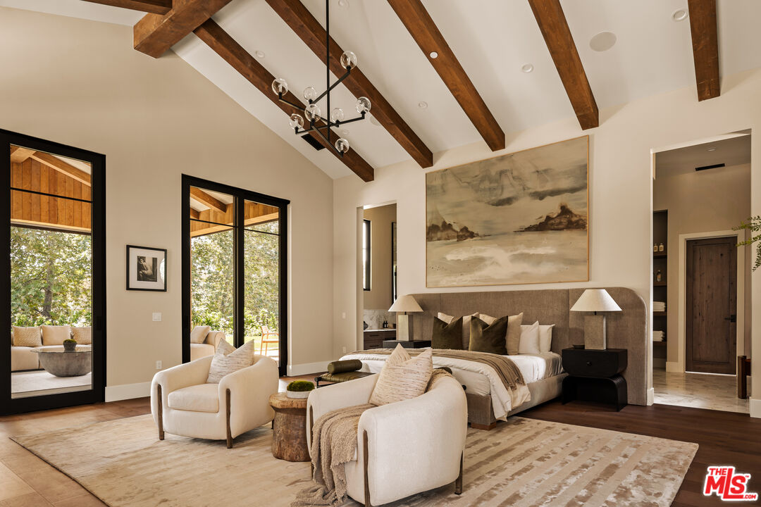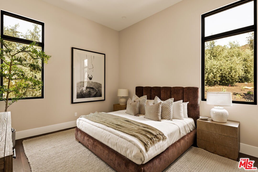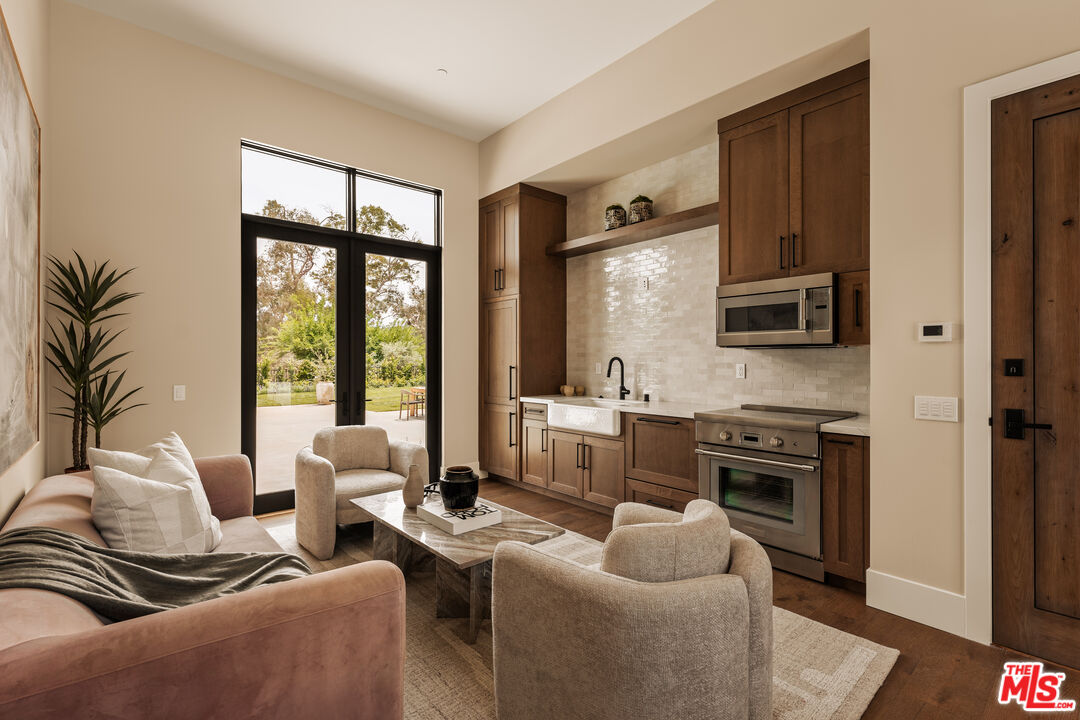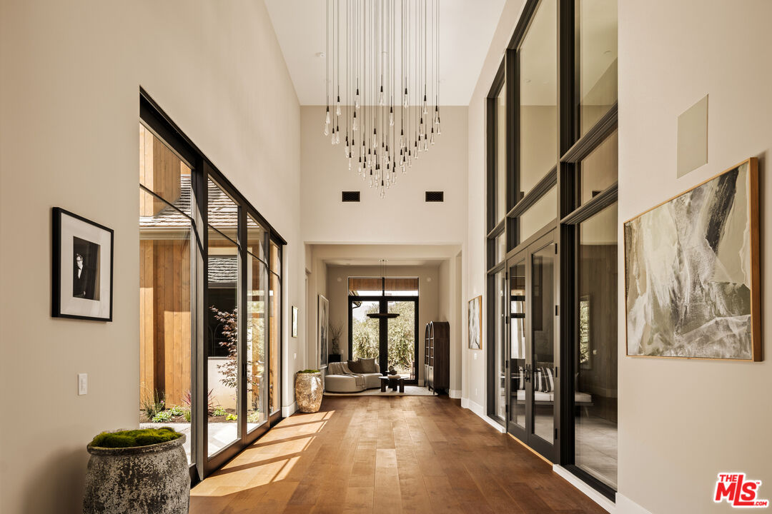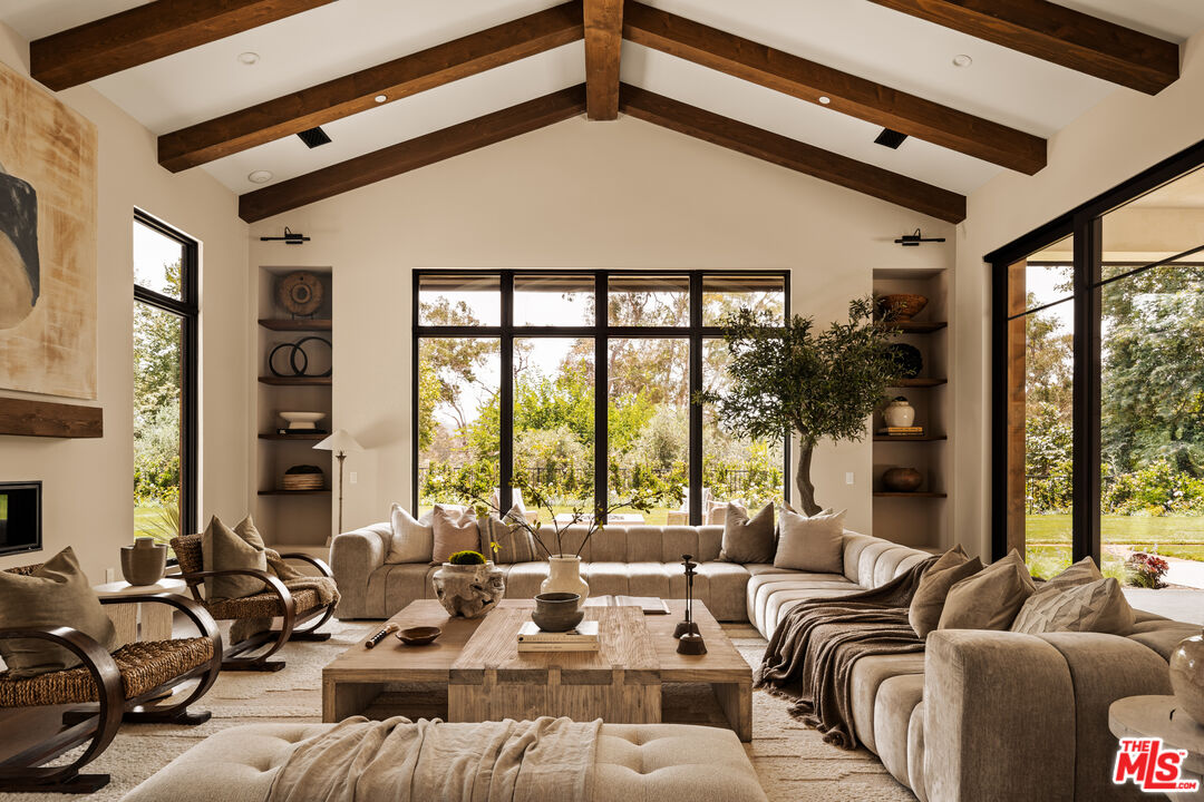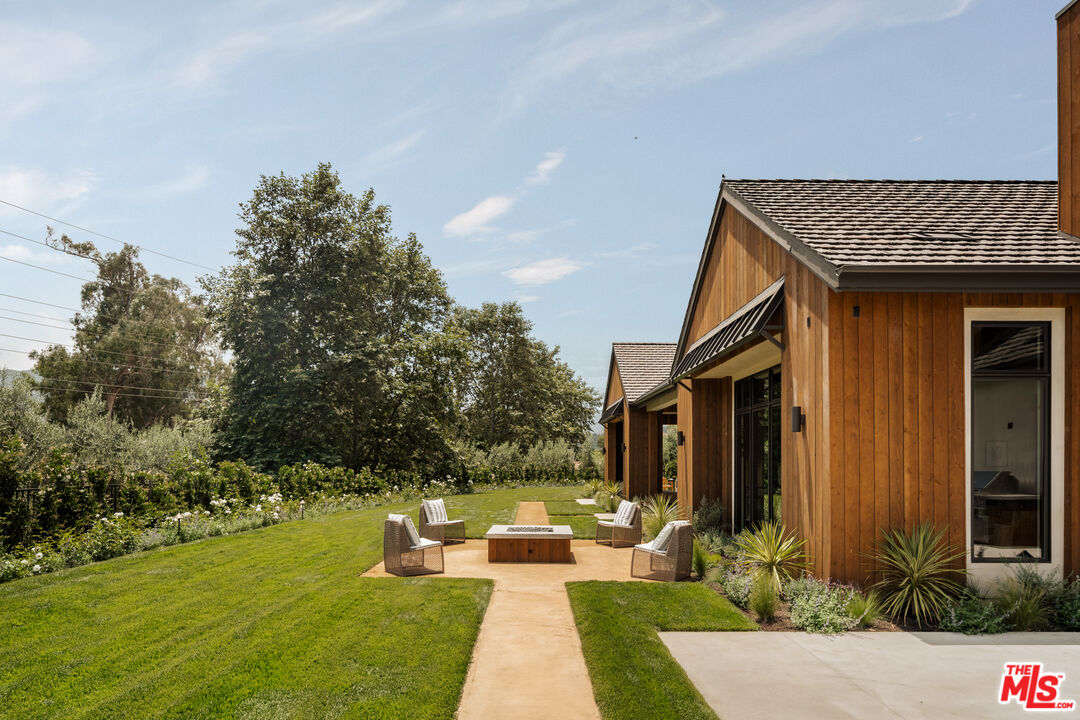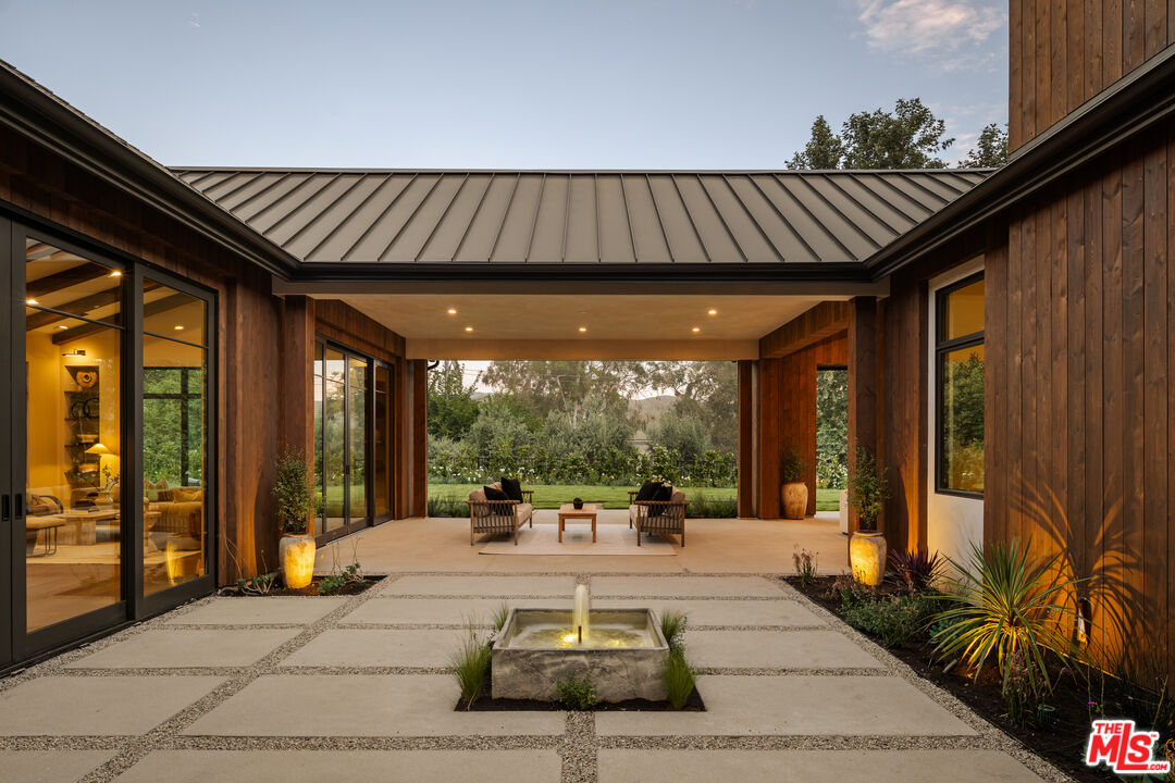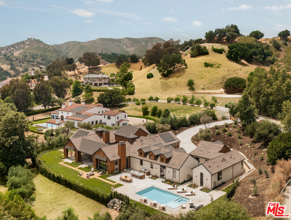 Tucked behind a long, private drive within the exclusive gates of Malibu Valley Estates, this brand-new construction Modern Ranch estate offers a sophisticated interpretation of California countryside living. Set amidst the rolling hills of the Santa Monica Mountains, the estate has been masterfully designed by one of Southern California's most exacting builders, with an emphasis on timeless materials, artisanal craftsmanship, and effortless indoor-outdoor flow. Sited on approx. 1.7 acres behind another set of gates, this 6000+sf single story home features 12-20ft soaring ceilings over and is comprised of a Main Residence, ADU, and Junior ADU - perfect for flexible and uniquely private living. Designed and curated to bring luxuriously rustic elegance to today's most discerning Buyer, finishes include Calacatta marble surfaces, engineered hardwood floors, solid core doors, imported lighting and fixtures, custom millwork, and walls of glass that frame the surrounding landscape in an abundance of light and serenity. Anchored by a dramatic great room and an elegantly appointed chef's kitchen, the interiors are designed for both grand-scale entertaining and modern conveniences such as Gaggenau and Thermador professional-grade appliances, a walk-in pantry, and an eat-in island. The primary suite is a true retreat, featuring 15-foot ceilings, a fireplace, a private covered patio, and a spa-like bathroom with dual vanities and a soaking tub. In addition to the main residence, the property offers a junior ADU and a fully independent guest house, each with its own distinct entrance and private living spaces - ideal for extended family, guests, or a dedicated office or studio. A series of outdoor living areas include multiple covered patios, a central courtyard with a fountain, enormous, covered patios, an expansive poolside terrace with an outdoor kitchen and pool bathroom, a grassy lawn, and endless spaces for entertaining. Offering unique possibilities for the avid equestrian, the lower portion of the lot is primed to add a barn or corral for horses just minutes from riding trails and a hunter/jumper equestrian center. The grounds are equally impressive, featuring mature landscaping including 100+ year-old olive trees, lavender-lined walkways, a sparkling pool and spa, and a romantic fire pit lounge - the ultimate retreat. This private estate embodies a rare opportunity to own a brand-new home in one of Malibu Valley's most coveted enclaves, a quick drive away from Pacific Coast Highway, US-101, Erewhon, Old Town Calabasas, and so much more. A retreat of enduring elegance, designed for those who value privacy, beauty, and exceptional living just minutes from the best hiking, biking, horseback riding, and nature-driven lifestyle Los Angeles has to offer.