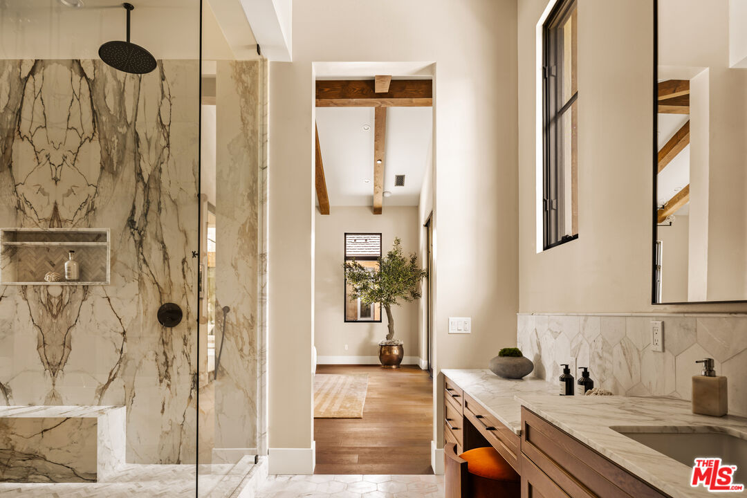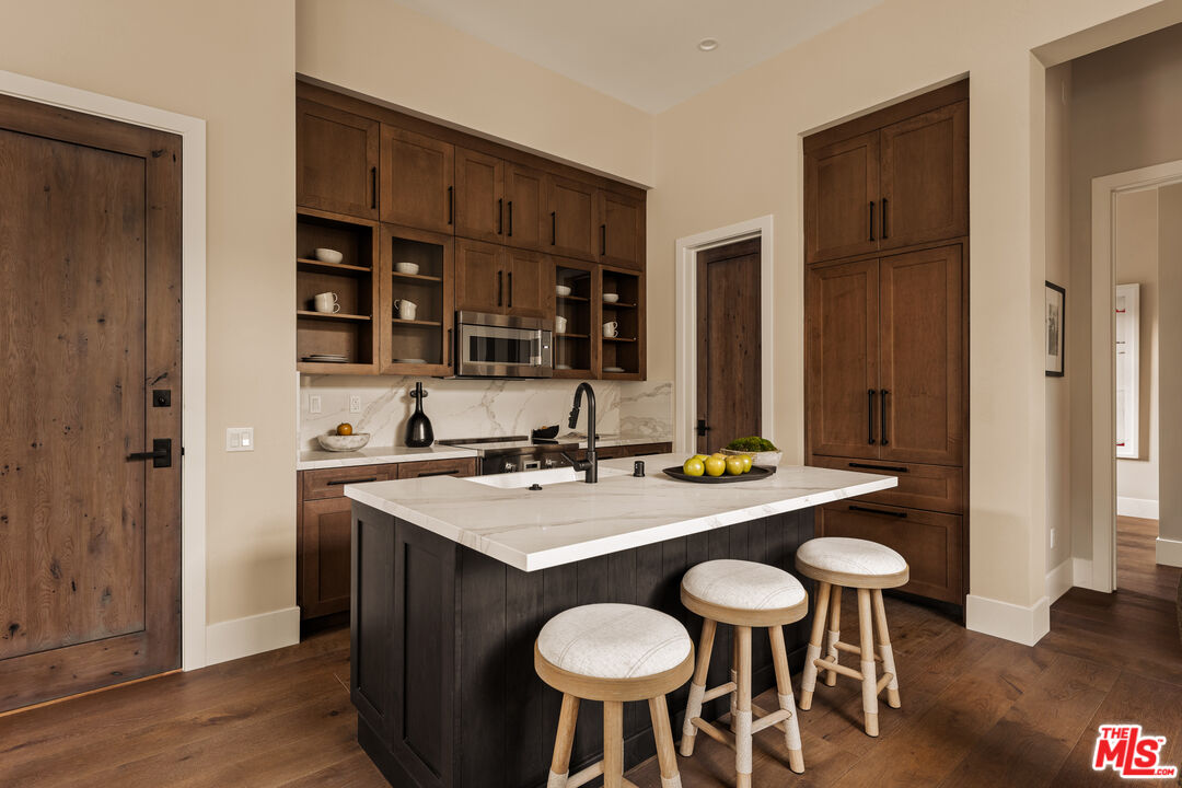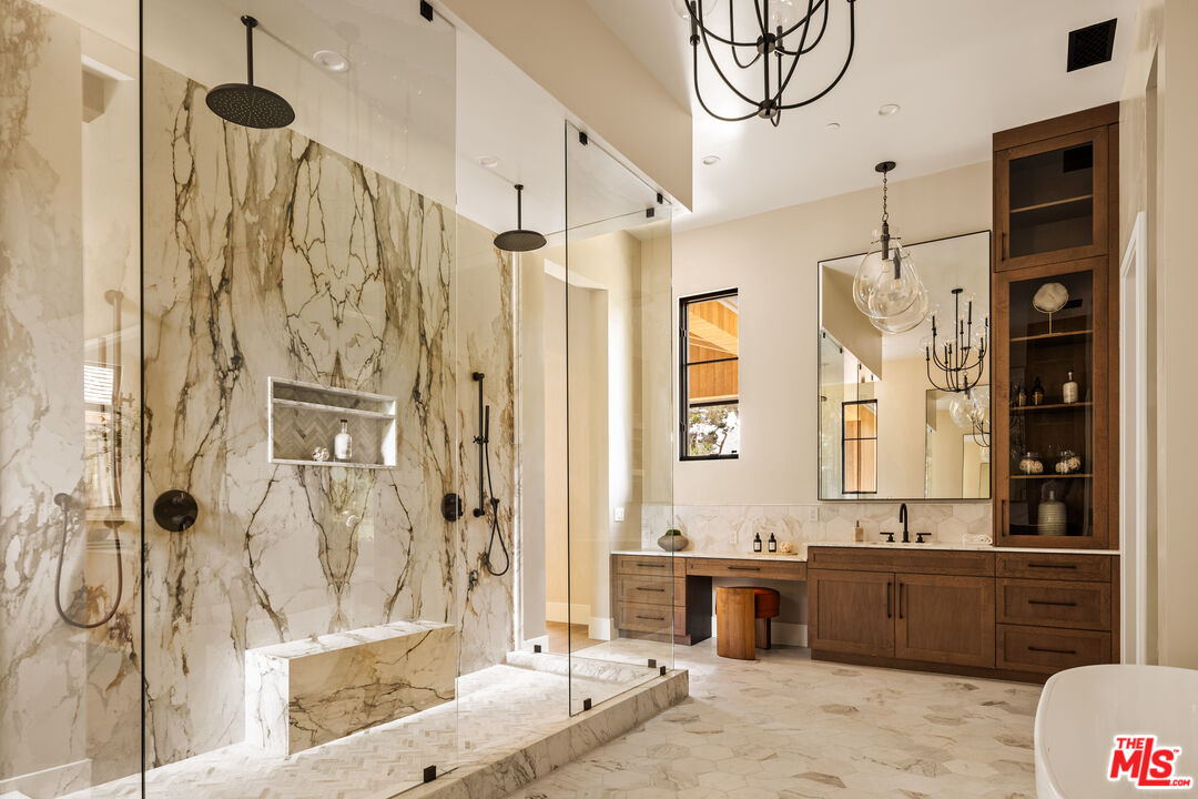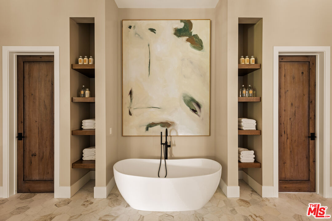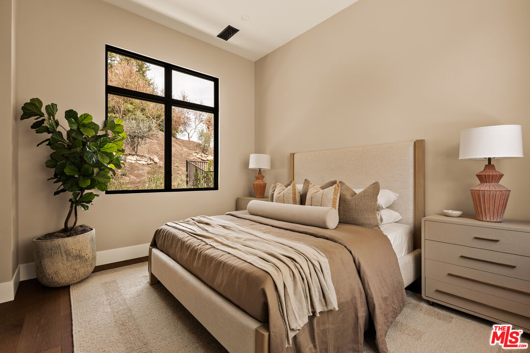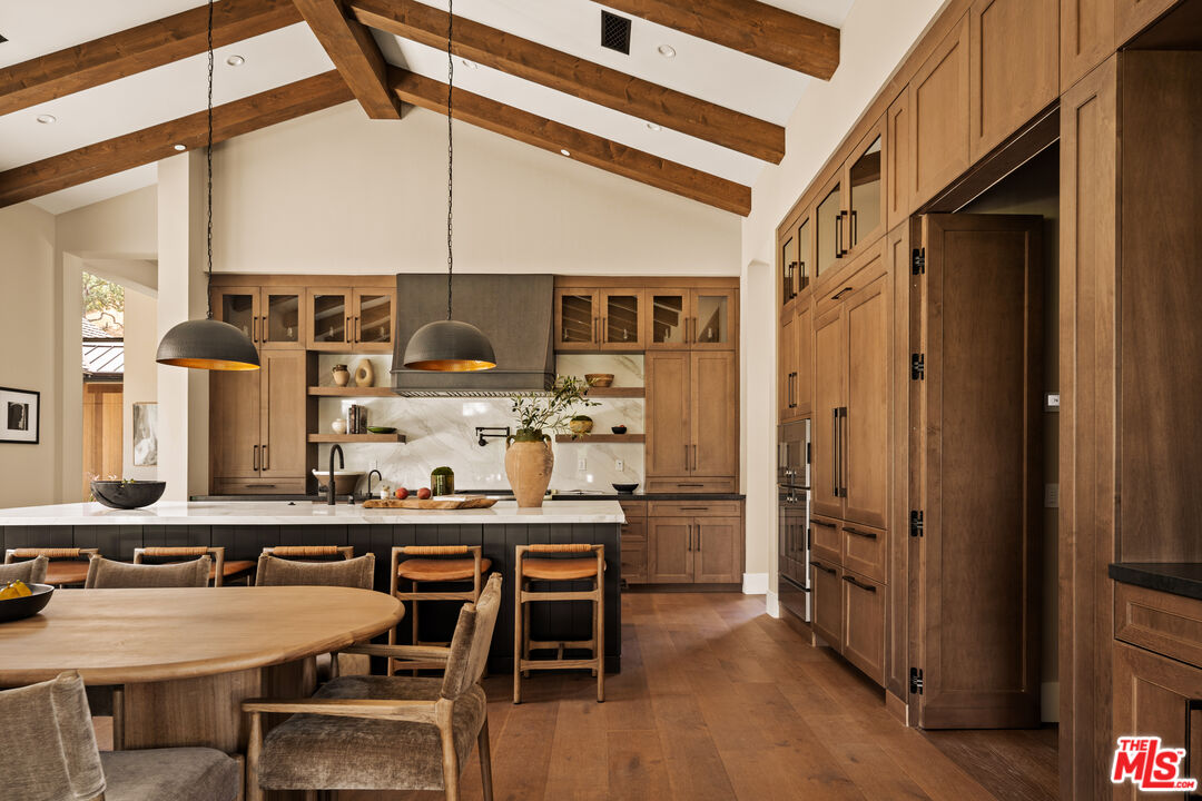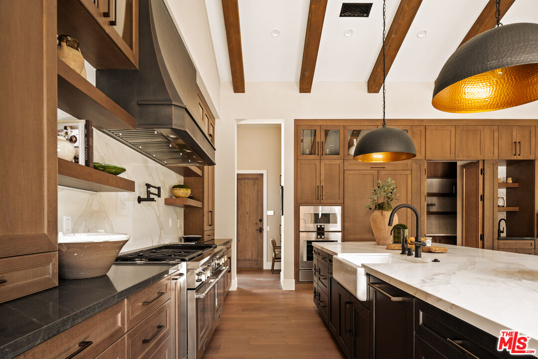 Tucked behind a long, private drive within the exclusive gates of Malibu Valley Estates, this brand-new construction Modern Ranch estate offers a sophisticated interpretation of California countryside living. Set amidst the rolling hills of the Santa Monica Mountains, the estate has been masterfully designed by one of Southern California's most exacting builders, with an emphasis on timeless materials, artisanal craftsmanship, and effortless indoor-outdoor flow. Sited on approx. 1.7 acres behind another set of gates, this 6000+sf single story home features 12-20ft soaring ceilings over and is comprised of a Main Residence, ADU, and Junior ADU - perfect for flexible and uniquely private living. Designed and curated to bring luxuriously rustic elegance to today's most discerning Buyer, finishes include Calacatta marble surfaces, engineered hardwood floors, solid core doors, imported lighting and fixtures, custom millwork, and walls of glass that frame the surrounding landscape in an abundance of light and serenity. Anchored by a dramatic great room and an elegantly appointed chef's kitchen, the interiors are designed for both grand-scale entertaining and modern conveniences such as Gaggenau and Thermador professional-grade appliances, a walk-in pantry, and an eat-in island. The primary suite is a true retreat, featuring 15-foot ceilings, a fireplace, a private covered patio, and a spa-like bathroom with dual vanities and a soaking tub. In addition to the main residence, the property offers a junior ADU and a fully independent guest house, each with its own distinct entrance and private living spaces - ideal for extended family, guests, or a dedicated office or studio. A series of outdoor living areas include multiple covered patios, a central courtyard with a fountain, enormous, covered patios, an expansive poolside terrace with an outdoor kitchen and pool bathroom, a grassy lawn, and endless spaces for entertaining. Offering unique possibilities for the avid equestrian, the lower portion of the lot is primed to add a barn or corral for horses just minutes from riding trails and a hunter/jumper equestrian center. The grounds are equally impressive, featuring mature landscaping including 100+ year-old olive trees, lavender-lined walkways, a sparkling pool and spa, and a romantic fire pit lounge - the ultimate retreat. This private estate embodies a rare opportunity to own a brand-new home in one of Malibu Valley's most coveted enclaves, a quick drive away from Pacific Coast Highway, US-101, Erewhon, Old Town Calabasas, and so much more. A retreat of enduring elegance, designed for those who value privacy, beauty, and exceptional living just minutes from the best hiking, biking, horseback riding, and nature-driven lifestyle Los Angeles has to offer.