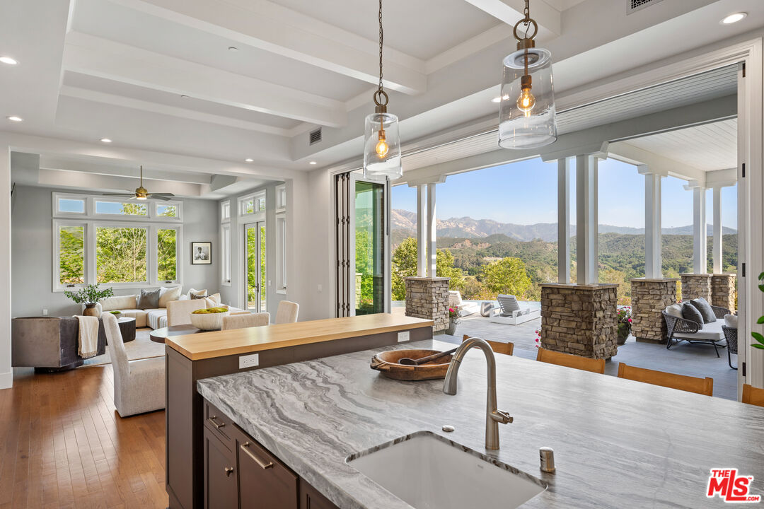 A Modern Retreat Where Calabasas Elegance Meets Malibu Tranquility 26767 Mulholland Highway isn't just a home it's a statement of style, privacy, and California living at its finest. Set behind a long, private drive and nestled into the scenic hills, this one of a kind custom contemporary craftsman estate blends relaxed sophistication with refined architecture across more than 8,000 square feet of total living space. With five bedrooms, seven baths, and sweeping canyon views from nearly every room, the property feels like a private resort hidden in the heart of Calabasas yet just 15 minutes from the beaches of Malibu. The exterior arrival stuns with a large motor court and lush, natural surroundings and stunning views of the Santa Monica Mountains. While inside, curated materials and artisanal finishes set the tone. Think: wide-plank oak floors, hand-selected stone, Italian lighting, and a Gaggenau appliance suite that would impress any culinary enthusiast. The open-concept design seamlessly connects multiple living and dining areas, a chic full-service bar, and an entertainer's dream kitchen with oversized island, breakfast nook, and stylish access to the formal spaces.Upstairs, the 1,000+ sq ft primary suite is a sanctuary of calm and sophistication. Expansive windows invite in natural light and hillside views, while the spa-like bath stuns with dual vanities, soaking tub, and an oversized marble shower with dual rain heads. There's also space to craft your dream walk-in closet. Three additional en-suite bedrooms complete the upper level, along with a media lounge that flows out to a panoramic terrace with fireplace perfect for evening wine and Malibu sunsets.Outdoor living here is next-level. Float in the infinity-edge pool, unwind in the spa, or gather fireside beneath the stars. With no neighbors in sight, you're free to enjoy complete seclusion across multiple patios, a full outdoor kitchen, a fire pit lounge, and a generous flat grassy yard.This is luxury with intentional architectural escape that feels worlds away, yet keeps you close to everything you love about Calabasas, the Commons, and the Malibu coast. Designed to inspire and built to last, this home is a rare offering where every detail speaks to lifestyle, leisure, and understated elegance. This home offers a beautiful legacy for years to come.Interested in this Listing?