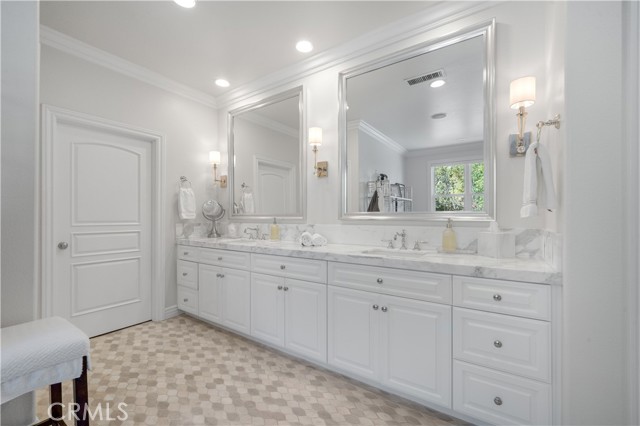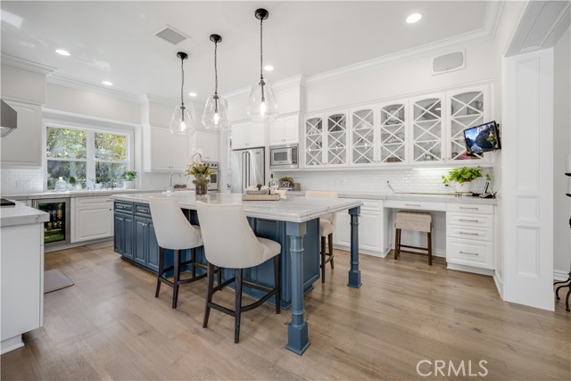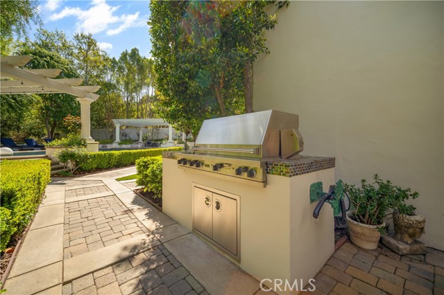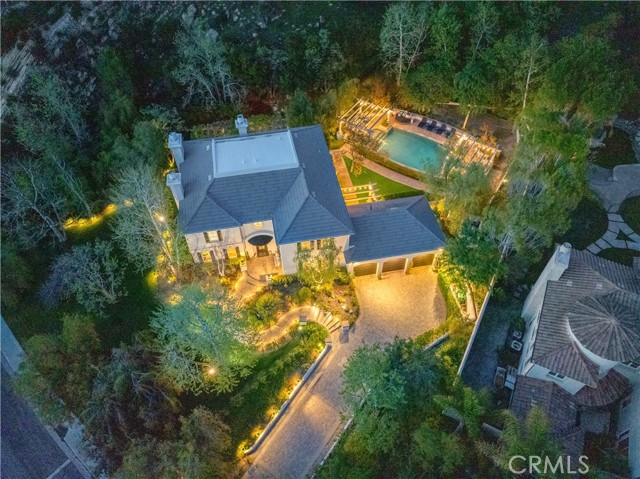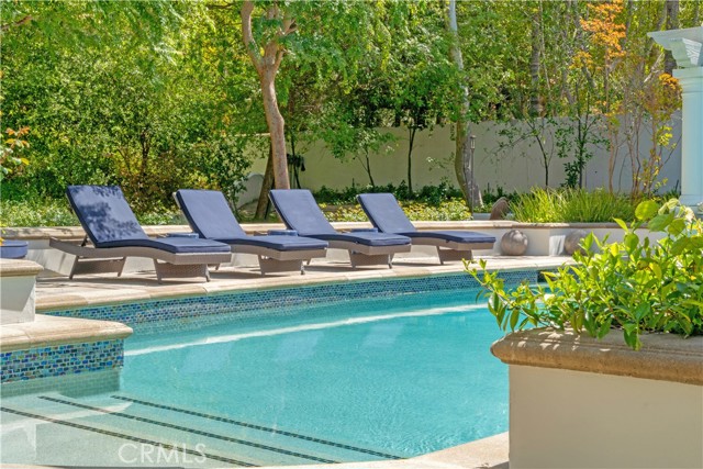 Set behind the gates of Calabasas Park Estates, this remodeled five-bedroom residence sits on one of the most private and expansive lots in the community perfect for indoor/outdoor living. Every inch reflects curated design and enduring quality, ideal for those seeking refined living in a peaceful setting. The custom kitchen is an expertly designed blend of clean lines and high-end finishes. White cabinetry with glass-front uppers, a deep blue island with carved legs, and wine fridge sit beneath oversized glass pendants. The extended island seats eight, perfect for casual dining or entertaining. A vegetable sink adds convenience, while luxurious quartzite slabs bring a natural, upscale finish. Updated appliances include a Viking 6-burner stove, double ovens, and Miele dishwasher. A walk-in pantry with secondary fridge completes the space, offering generous storage. Just beyond, light-filled living spaces flow effortlessly tailored with refinished oak floors, intricate moldings, and French doors that open to lush, private grounds. The formal dining room overlooks a peaceful garden fountain, while the family room centers on a sleek fireplace and bespoke built-ins. The living room invites with bright windows and another updated fireplace, seamlessly connecting to the family room. Upstairs, the primary suite is a sanctuary with serene views and an airy, oversized layout. A spa-like bath offers a steam shower, soaking tub, and a walk-in closet. An additional ensuite bedroom, two secondary bedrooms, and a large bonus room-perfect as a home office, gym, playroom, or studio. The backyard is a world apart: a wisteria-covered pergola drapes over an elegant outdoor dining space, framed by mature landscaping and hillside views. The built-in BBQ make entertaining seamless, while the saltwater pool and spa sit tucked into their own retreat. Multiple lawn areas offer space to roam, unwind, or gather under the stars. Additional highlights:Downstairs ensuite guest room-Abundant built-in storage-Extra-high ceilings in the 3-car garage-Tankless water heater-Upgraded wood + iron bannisters-Plantation shutters-Zoned for Las Virgenes top-rated schools-Smart Home App features: Kasa for lighting, Beehive for sprinklers, and Ring doorbell and cameras-Elegant yet unassuming, this residence combines spacious living, exceptional privacy, and timeless style just minutes from Malibu s beaches and the heart of Calabasas.Interested in this Listing?