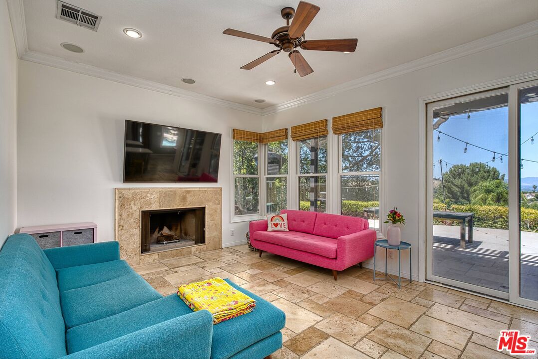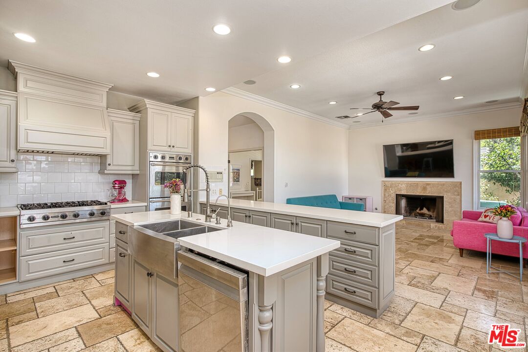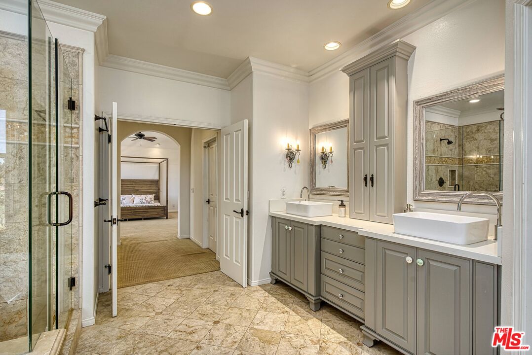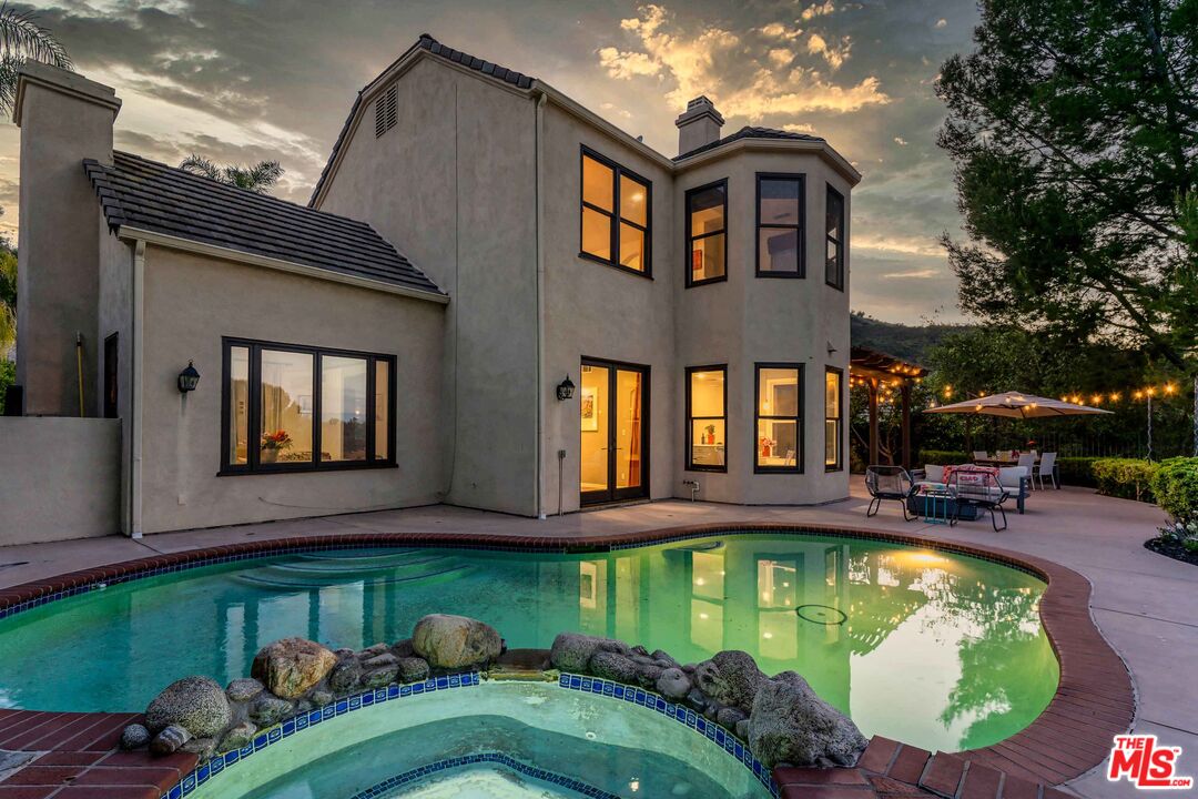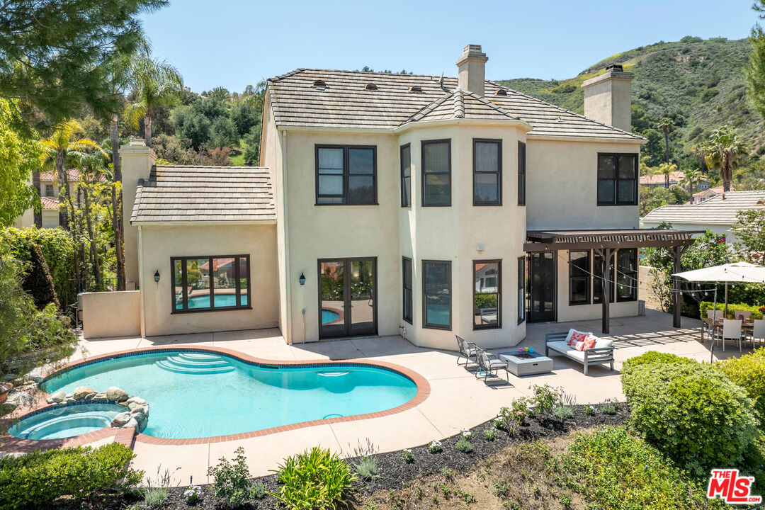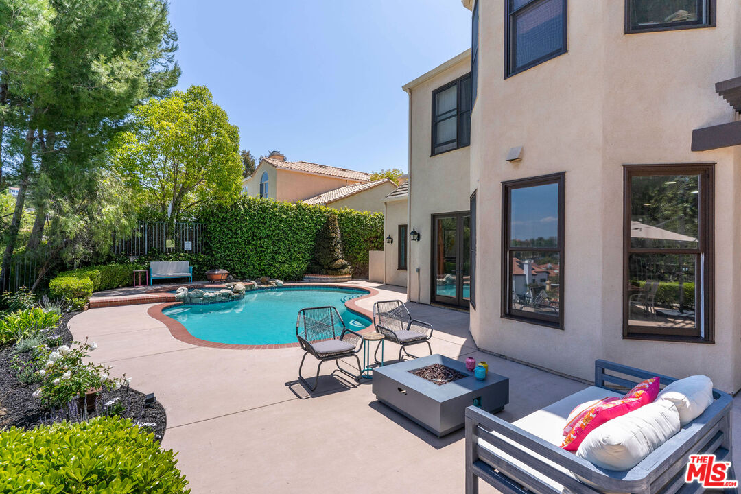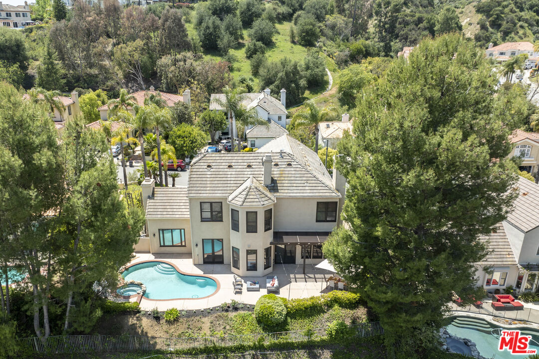 Discover refined luxury living in one of Calabasas' most prestigious enclaves, the exclusive double-gated Calabasas Park Estates. This sophisticated 5-bedroom estate residence, situated on a highly desirable elevated lot, commands breathtaking panoramic views of Calabasas and the surrounding hills, offering an unparalleled connection to Southern California's most coveted natural landscape. Priced competitively within this sought-after community, this home represents the perfect harmony of luxury and natural beauty. The estate's elegant floor plan unfolds with a dramatic travertine-clad entry, flowing into elegant living spaces adorned with engineered wood floors and French doors that blur the line between indoor and outdoor living. The gourmet chef's kitchen, complete with premium stainless steel appliances and a generous island, serves as the heart of the home, while two inviting fireplaces add warmth and sophistication to both the living room and family room. The primary suite epitomizes luxury with its private fireplace, sitting area, dual closets, and spa-like bathroom featuring a spacious tub and dual vanities - all enhanced by sweeping views of the estate and the nearby Calabasas Country Club grounds. Four additional bedrooms, including a private first-floor suite perfect for guests or multi-generational living, complement the home's impressive amenities, which include an office, playroom/den, pantry, laundry room, and direct access to the 3-car garage. The resort-style backyard stands as an entertainer's paradise, boasting a sparkling pool and spa set against a backdrop of panoramic mountain vistas. This outdoor sanctuary provides the perfect setting for both intimate gatherings and larger scale entertaining. Located within the prestigious Calabasas community, residents enjoy access to exclusive amenities including tennis courts and meticulously maintained grounds, all protected by 24-hour guard-gated security. The home's prime location offers easy access to Blue Ribbon schools, upscale shopping and dining at The Commons, and world-class hiking trails, with close proximity to both the scenic Malibu coastline and the beautiful Santa Monica Mountains. Experience the pinnacle of Southern California luxury living in this exceptional estate property.Interested in this Listing?