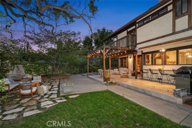 Welcome to this beautiful custom-built home located in the desirable Park Moderne Bird Streets neighborhood of Calabasas. One of the largest homes in the area, spanning nearly 3,400 sq ft, this open floorplan home has 5-bedrooms & 3.5-baths and blends comfort and functionality with timeless style and charm. As you walk through the front door, you are greeted by a vaulted two-story ceiling, a cozy living room with a fireplace, and a formal dining area. The oversized kitchen is the heart of the home, featuring a large center island, stainless steel appliances, ample storage, coffee cabinet, and a breakfast nook, perfect for entertaining and everyday living. The kitchen flows into the large family room with a fireplace and French doors leading out to the backyard patio, where you can enjoy al fresco dining on warm summer evenings. Upstairs are four spacious bedrooms, each with a large closet and the primary bedroom having 2 closets. Special custom details, including fun reading nooks or places for quiet time for kids add to the uniqueness of this home. Also upstairs is a finished attic/bonus room offering flexible space ideal for a kids' game room, home office, gym, or creative studio. Downstairs, there is a 5th bedroom and a bathroom right off the large laundry and mud room, perfect for guests, in-laws, or a live-in nanny. Step outside to your private backyard oasis. Whether you want to take a dip in the sparkling pool and jacuzzi spa, sit in the beautiful garden reading your favorite book, or play hoops, this magical yard is ideal for relaxing and entertaining. Additional highlights include a brand new roof with 10 year warranty, multiple areas for storage, area for sport court, a three-car garage with drive through double garage door for access to the backyard for RV or boat storage, central vacuum, an all-house fan, and dual-zoned air conditioning. All situated in a prime Calabasas location in close proximity to top-rated schools, parks, hiking trails, and the Calabasas Commons. Don't miss this rare opportunity in a highly sought after community!