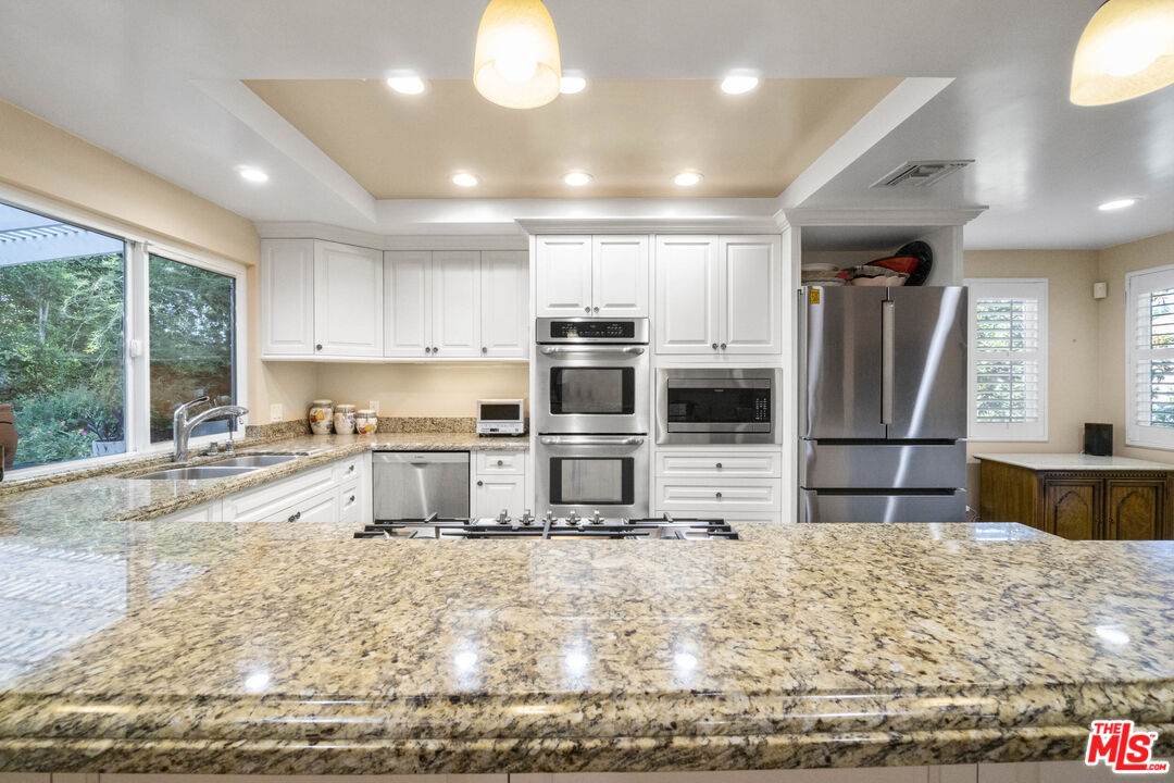 Big Price Reduction- Sellers are motivated! This is your Idyllic single-story masterpiece in the prestigious gated Braewood Community of Calabasas. This remodeled 3-bedroom, 2-bath residence with a brand new Roof sets a new standard for luxury living, complete with a Tesla charger, New electric panel and cutting-edge solar panels. Step into an expansive, light-filled floorplan featuring a formal living room with a cozy fireplace and a sophisticated formal dining area. The open-concept kitchen and family room are a culinary dream, boasting a stylish breakfast bar with pendant lighting, top-of-the-line stainless steel appliances, granite countertops, recessed lighting, and custom white cabinetry. The grand master bedroom with custom made closet is a serene retreat with vaulted ceilings, double doors opening to a private backyard patio, and a lavish master bath. Indulge in the upgraded vanity and an oversized shower adorned with designer marble and tile. The secondary bedrooms are spacious and inviting, while the secondary bathroom is equally luxurious with a custom vanity and designer tile. Additional features include new double pane windows, elegant shutters, remote-controlled shades, upgraded LED lighting throughout, a convenient indoor laundry room, and a 2-car garage with ample storage and an EV charger. The custom interior closets and kitchen pull-outs were crafted by a professional organizer, adding to the home's functionality and style. The backyard is an oasis of privacy and tranquility, featuring a covered brick patio, multiple seating areas, a lush grass area, fruit trees, a large dog run, and an advanced irrigation system and oudoor lighting complemented by new landscaping. Situated on an expansive 9,800 sq. ft. lot, this home is the epitome of move-in-ready elegance for the most discerning buyer. Location is paramount, and this home excels with its proximity to all local schools, premier shopping destinations, including the Calabasas Commons, Topanga Village, and El Camino Shopping Center. Enjoy easy access to Topanga Canyon and the 101 Freeway, making commutes a breeze. Plus, a quick drive takes you to the beautiful beaches, adding to the allure of this exceptional property. Don't miss This incredible opportunity to be part of this unique gated community.Interested in this Listing?