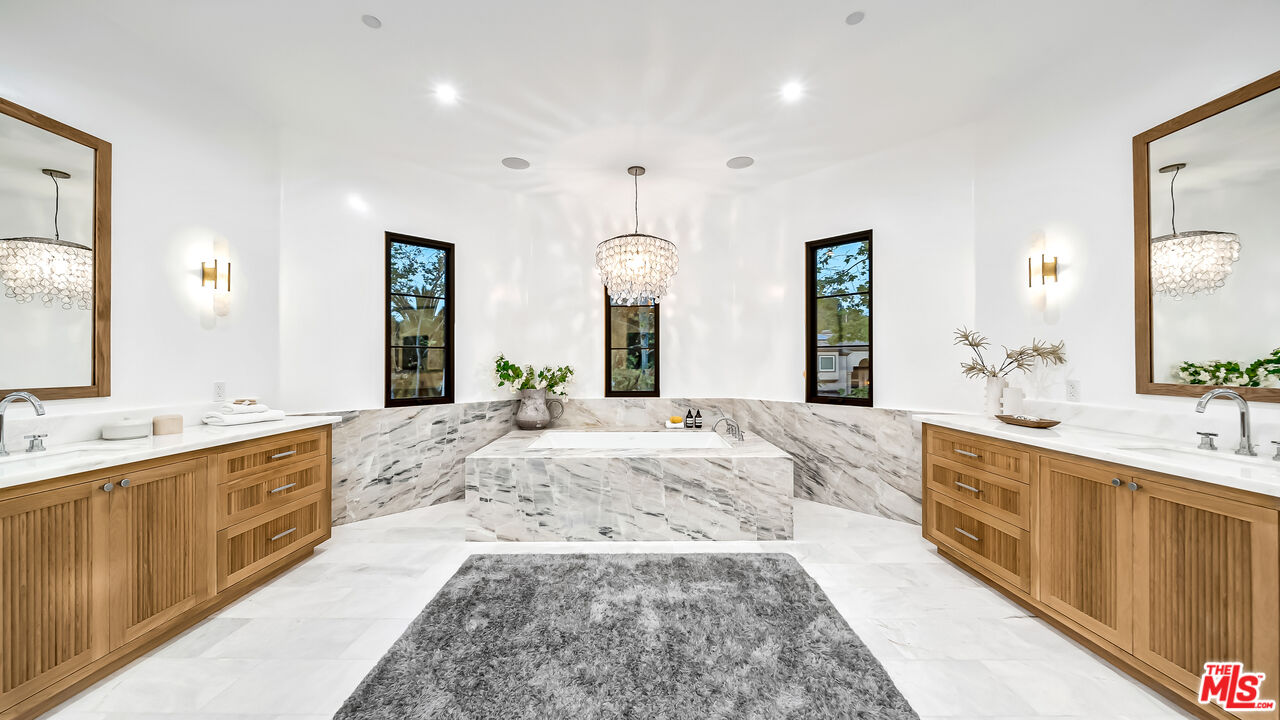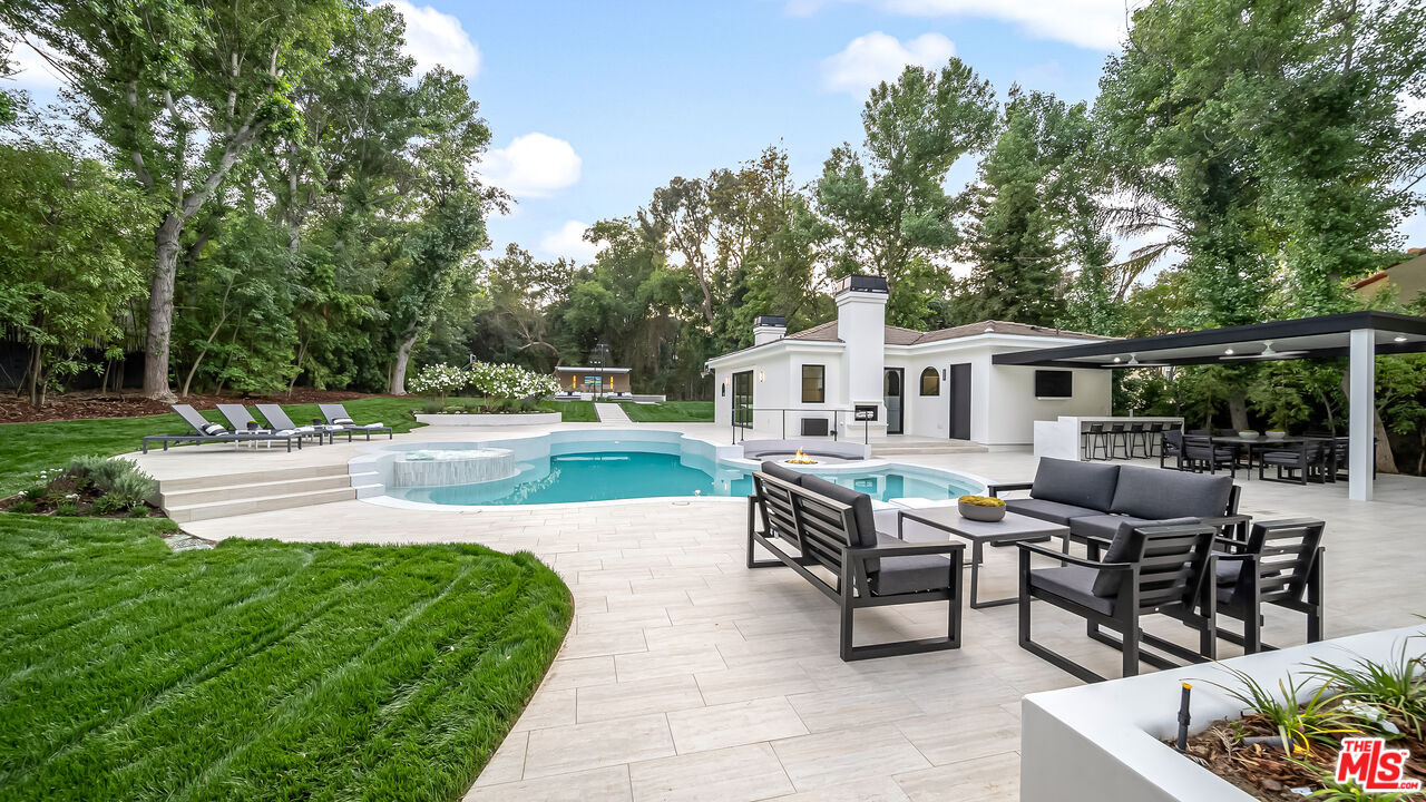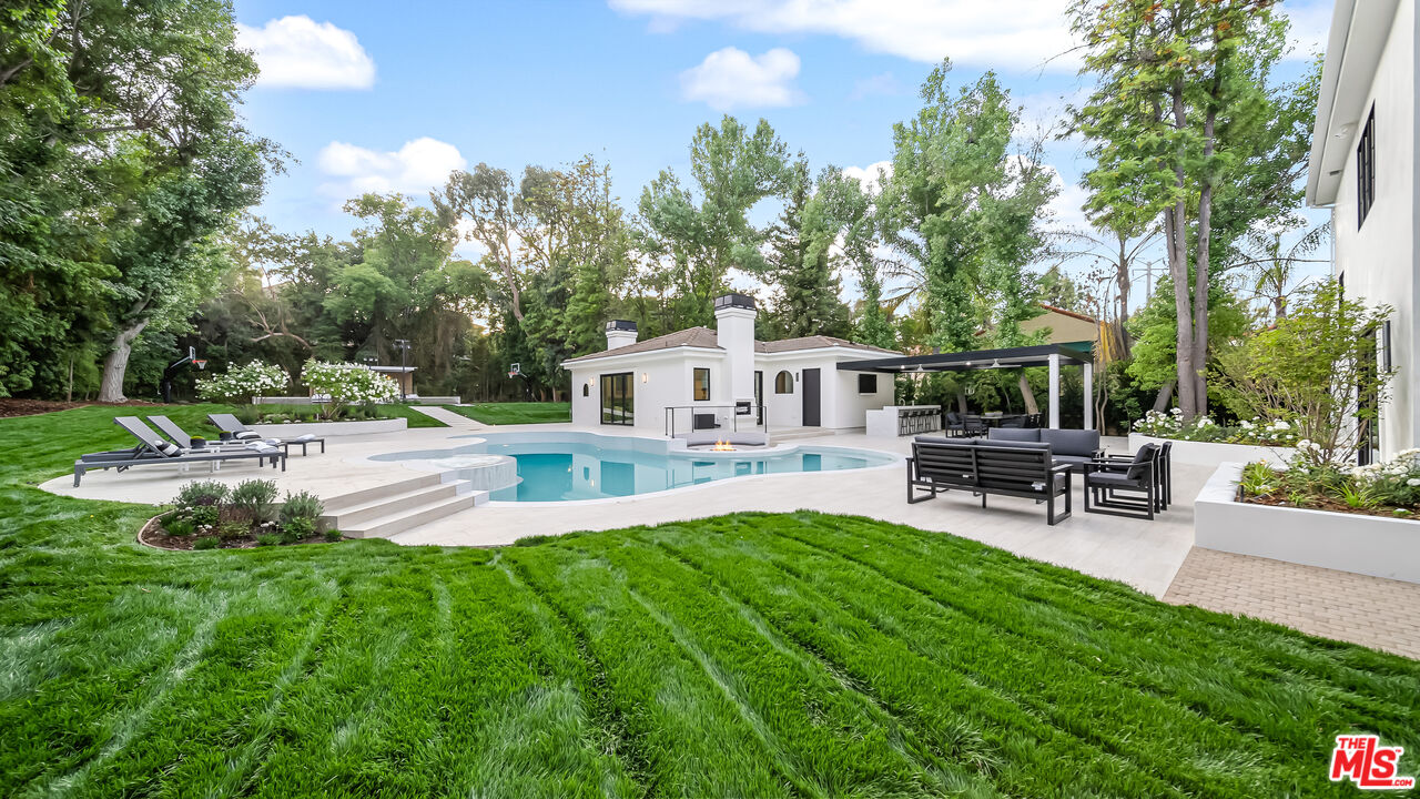 "THE HAVEN" -- An Entertainer's Dream Estate in the Heart of Calabasas. Tucked away at the end of a cul-de-sac in one of most exclusive guard-gated communities of Calabasas, this grand estate is a private sanctuary designed for those who live boldly and entertain lavishly. Set on over one flat acre of lush, secluded grounds, this just-reimagined masterpiece spans 11,257 square feet of unmatched luxury. From the moment you enter, you're greeted by soaring ceilings, expansive sun-filled spaces, and exquisite craftsmanship throughout. White oak hardwood floors, custom marble fireplaces, and designer finishes elevate every room to a gallery-like experience. Curated for the ultimate lifestyle, the estate features two primary suite retreats, a full-court basketball and pickleball court with pavilion lounge, a state-of-the-art theater, glass-enclosed whiskey and wine bar, and a dedicated billiards lounge. Entertain effortlessly in the showstopping gourmet kitchen, host guests fireside in the sunken outdoor fire lounge, or unwind on the putting green under the stars. The resort-style outdoor amenities continue with a sleek bar and kitchen pavilion, manicured grounds, and mature trees offering total privacy and tranquility. The guest home boasts 2 bedrooms with ensuite bathrooms, a full kitchen, and livingroom that doubles as a lavish pool cabana. THE HAVEN is a rare offering of this scale, sophistication, and serene setting. This is more than a home. It's a destination.Interested in this Listing?
