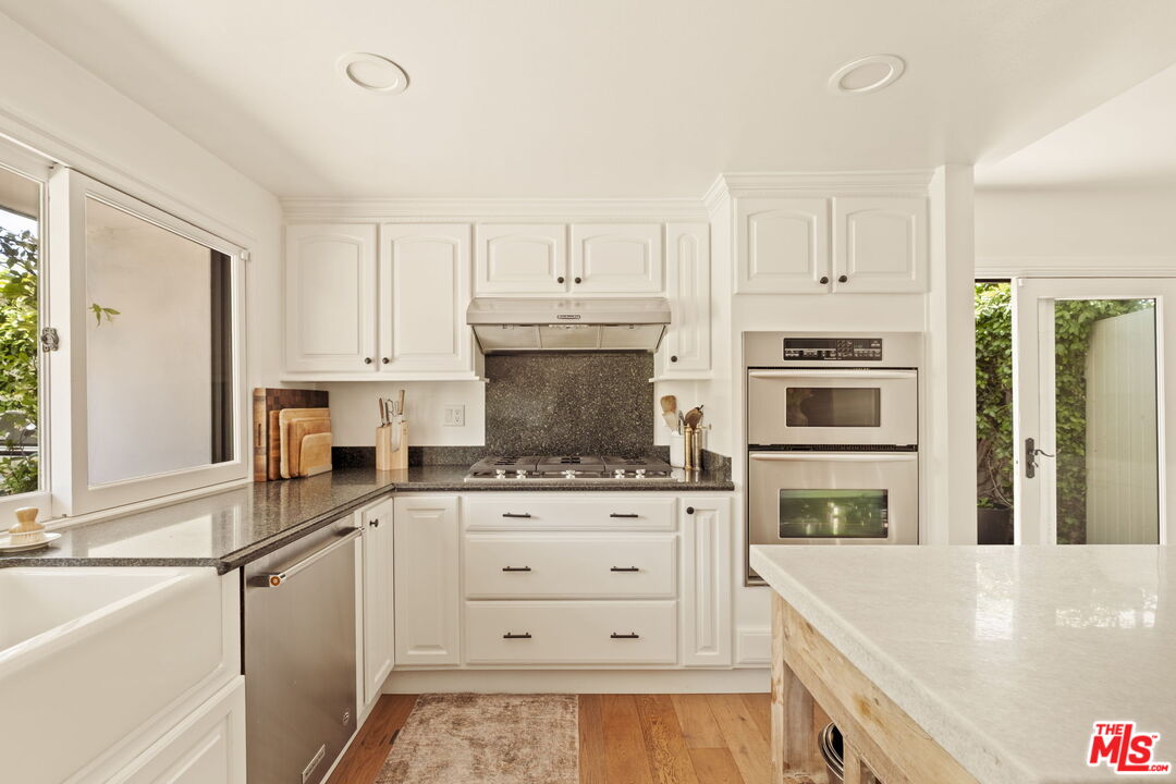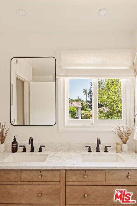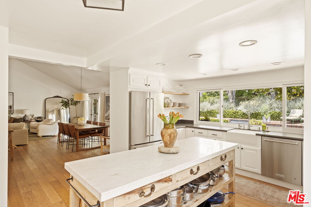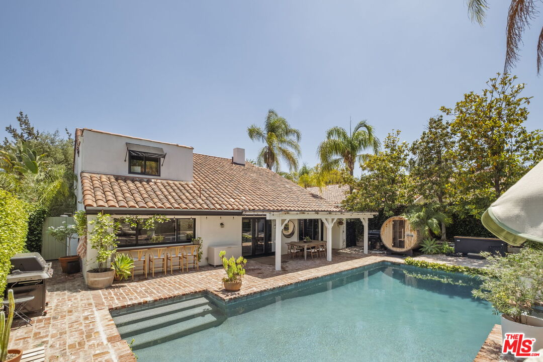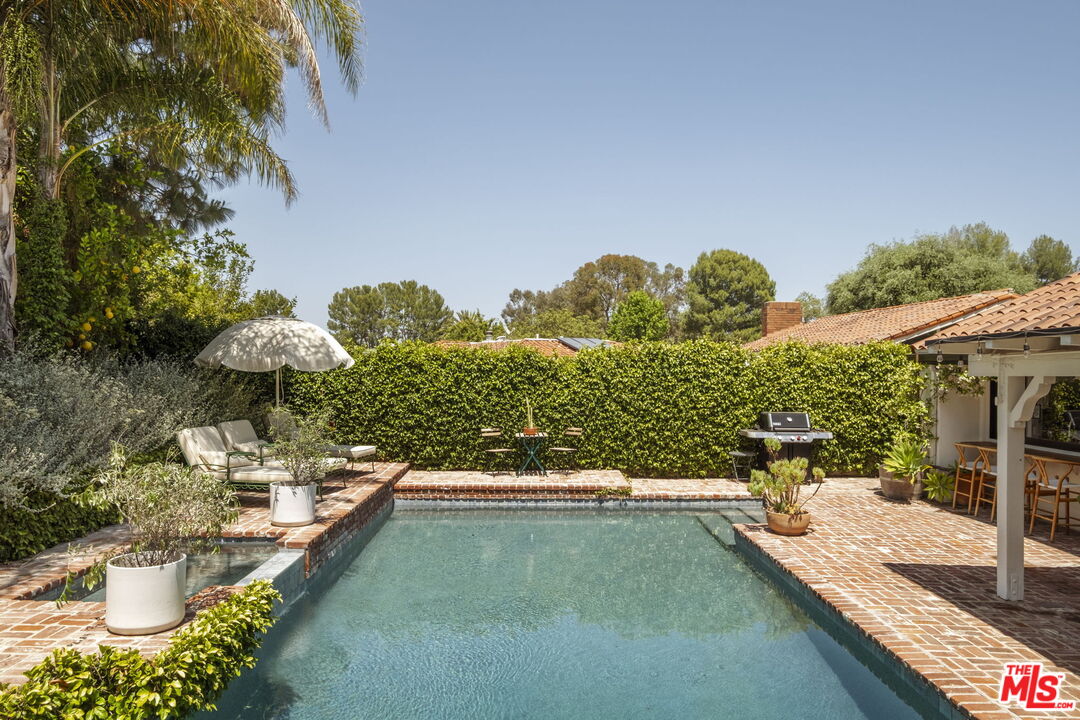 This is your idyllic and charming Spanish-style home, located in classic Calabasas. Lush landscaping welcomes you to the front entry, with incredible curb appeal. The home opens to a spacious living area with soaring vaulted ceilings and rich wood floors mixed with characteristic brick and tiled bathrooms. French doors lead to a large covered patio overlooking the sparkling pool and beautifully landscaped grounds with fruit trees and blooming star jasmines. The updated kitchen features stainless steel appliances, a farmhouse sink, and a convenient pass-through window to the outdoor dining bar, perfect for entertaining. Upstairs you'll find three bedrooms, including a serene primary suite with a generous walk-in closet and spacious en-suite bath. The secondary bedrooms share a large private balcony and offer ample closet space. A versatile flex space on the main level provides the option for flex space that can be used as a den, home office, or even a fourth bedroom. Surrounded by manicured landscaping, the private backyard includes a fenced pool and spa, mature fruit and shade trees, and expansive areas for relaxing or entertaining. Enjoy close proximity to shopping, dining, and the ever-popular Calabasas Lake with its park and scenic walking trails. Don't miss the opportunity to own a truly special home in one of Calabasas' most sought-after neighborhoods.Interested in this Listing?
