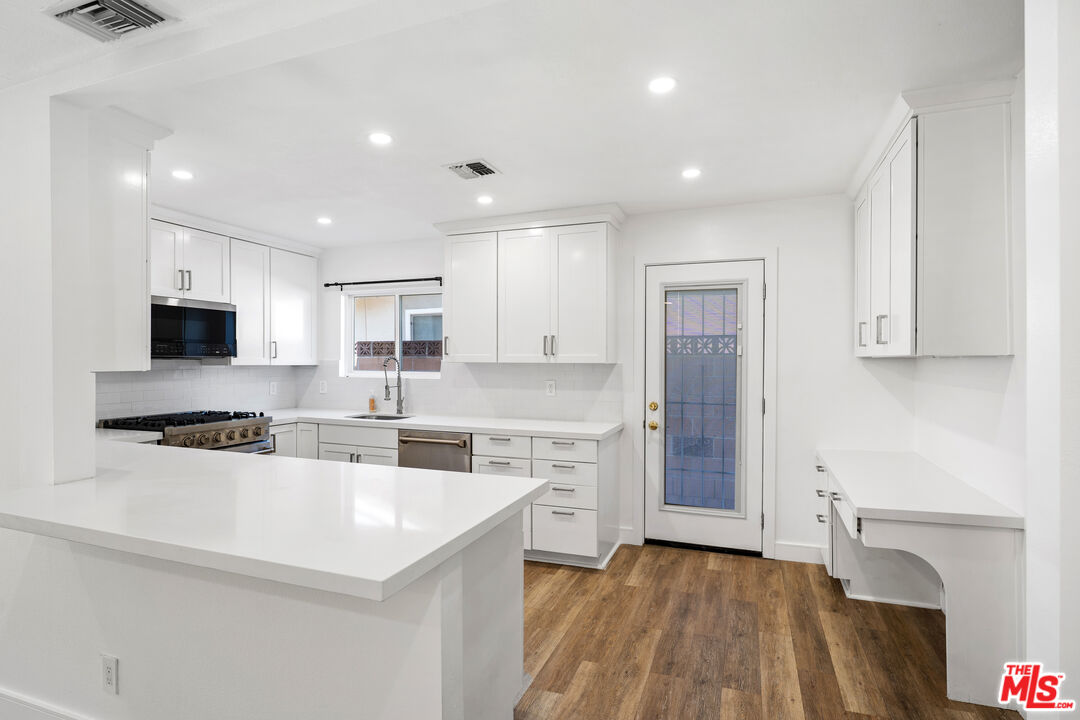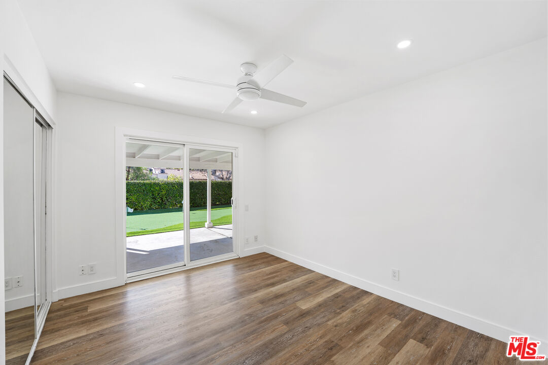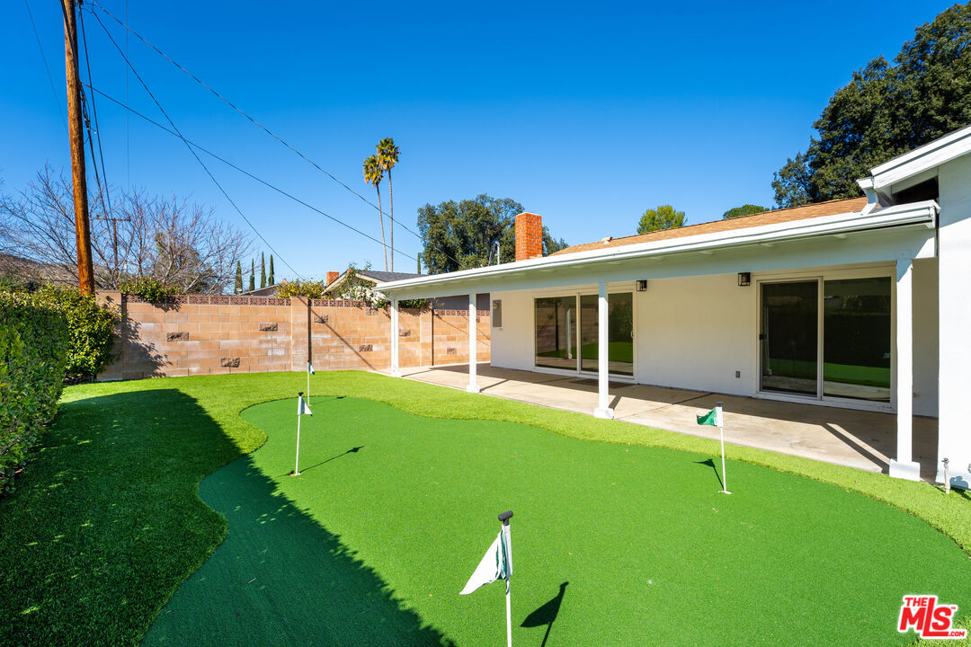 Modern elegance meets thoughtful design in this beautifully updated 4-bedroom, 3-bathroom home. Featuring recessed lighting, double-paned windows and sliders, and stylish wood-like flooring throughout, this home offers a bright and contemporary atmosphere. The front and back yards are wrapped in low-maintenance artificial turf, complementing the brick-inlaid driveway and sleek concrete pavers for impressive curb appeal. Step through the custom artistic wood front door with a modern black keypad lock into a light-filled interior. The open layout flows effortlessly from the dining room to the spacious living room, where a sleek modern fireplace creates a cozy ambiance. The contemporary kitchen showcases white shaker cabinets, quartz countertops, and stainless-steel appliances.Designed for seamless indoor-outdoor living, the covered patio extends the entertainment space while providing shade. The backyard is a true retreat, complete with a putting green and a lower-level area brimming with potential, surrounded by sun-dappled trees.The bathrooms continue the modern aesthetic with black accents, quartz countertops, and LED-lit mirrors are perfect for makeup application. Two bathrooms feature walk-in showers with rain shower heads, handheld sprayers, and sleek, full-length shampoo ledges, while the third offers a shower/tub combo with a handheld shower head.A gleaming white laundry room with washer and dryer hookups is conveniently located off the large 2-car garage, which provides ample storage space.This home is a perfect blend of style, comfort, and functionality don't miss the opportunity to make it yours.Interested in this Listing?