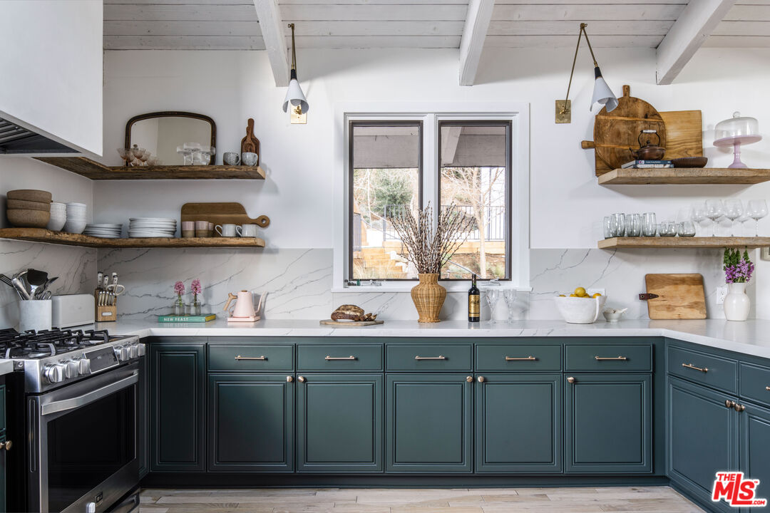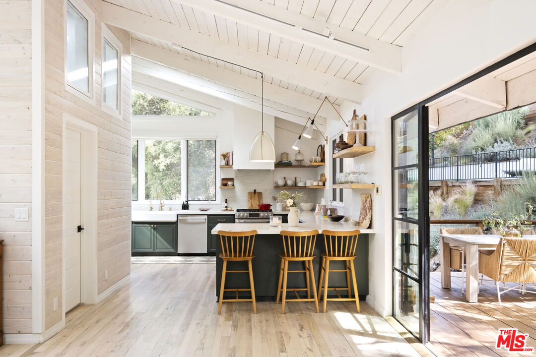Come for the view. Stay for the Monte Nido magic. Welcome to 554 Mountain Green, nestled in the sought-after Malibu Canyon neighborhood of Monte Nido, sits this warm and wonderful designer perfect home. Down an oak-lined street and up a circular driveway, you will find this very private magical view property. Surrounded by nature and impeccably designed with magazine worthy details, this newly remodeled home boasts bespoke designer finishes that fill the light-filled interior spaces and opens to awe inspiring forever views of the magnificent Santa Monica Mountains. California living and entertaining at its best, featuring a beautiful sparkling salt water pool and spa, and lots of outdoor living space for al fresco dining and memory making. Did we mention the amazing remodeled 700+SF pool house / 1 bedroom 1 bath guest unit, totaling approx 2,729 SF of thoughtfully designed living space to love and enjoy. The chic open-concept main house layout flows beautifully, with high beamed ceilings, skylights and beautiful oak wood flooring throughout. The great room with huge picture windows and it's gorgeous Venetian plaster fireplace, opens seamlessly into the designer cooks kitchen, complete with stunning quartz countertops, reclaimed wood open shelving and a sub zero fridge. You will love the euro-line steel doors that invite you to a large deck, ideal for entertaining and quiet starlit nights. There is an additional upper level, with loads of play time room. The main house boasts 3 bedrooms and 2.5 beautifully remodeled bathrooms. The primary bedroom, with loads of closet space, also opens to a lovely private patio. Newly remodeled gorgeous spa style primary bathroom features micro-concrete, waterworks plumbing fixtures and a steam shower. There are two additional guest bedrooms and a beautifully remodeled guest bathroom that you will love. Too many designer perfect details to mention. Just minutes to amazing hiking in Malibu Creek State Park and to the heart of Malibu with it's vibey restaurants and shops. Also minutes to the Calabasas Commons and to the #101 Fwy. Nearby award winning Las Virgenes School District and Viewpoint private school too! Don't miss this one. So much to love, and easy to show.Interested in this Listing?