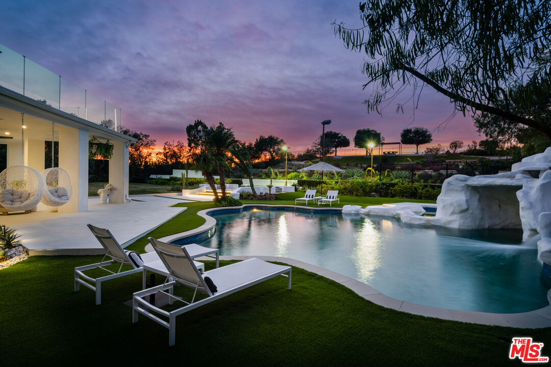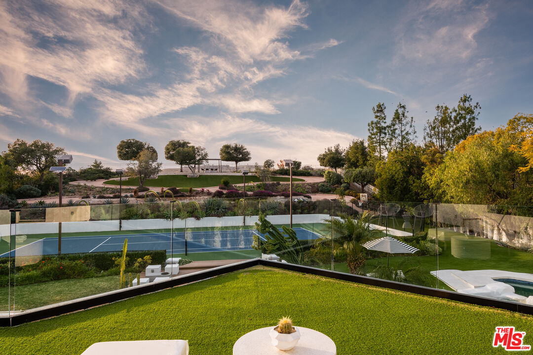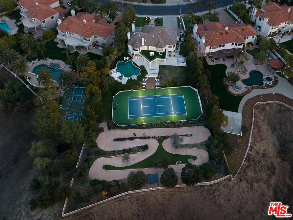 Welcome to "Dreams" A Palatial Estate in the Heart of Calabasas. A rare offering, this architectural masterpiece sits on one of the Top 5 Largest Estate Lots in Calabasas, spanning over 1 acre of meticulously curated Luxury. The One & Only residence with a private Go Kart Track with only two neighboring properties, this estate offers unmatched Privacy & Exclusivity. Offering impeccable craftsmanship & boasts Opulent High End finishes. The sprawling sun-splashed residence includes five en suite spacious bedrooms each with their own walk-in closets.Upon arrival, a striking 75-foot porte-cochre entry way & a 55-foot driveway set the tone for grandeur. Inside, 6,205 sq. ft. of refined living space unfolds, featuring wide-plank White Oak flooring, Custom White Oak Belgian European Kitchen Cabinetry & 24 Exquisite book-matched Marble Slabs, including Opulent Onyx. The gourmet chef's kitchen boasts Top-Tier Miele, Wolf & Viking appliances, while a Custom 11 foot Bar creates an extravagant space for entertaining. The Primary Retreat is beyond extraordinary, offering a Lavish 14-foot shower, His & Hers water closets & Custom imported Italian & Belgian walk-in closets Hers an astonishing 25x20 feet & His at 15 x 15. Outdoor living redefined by Palatial grounds, a Santorini-style pool & slide, surrounded by $300,000 in lush professionally designed & manicured landscaping, a Private Go-Kart Track, a full size Tennis Court / Basketball Court & a brand-new Putting Green. A expansive 90-foot glass balcony provides breathtaking views of the palatial grounds while the Custom-Built BBQ area with book-matched Waterfall Marble, Italian tile exterior flooring & LED-lit garden create an unrivaled resort ambience. This palatial estate also features state-of-the-art security system, high-definition cameras & newly installed windows creating a Flawless blend of Contemporary Elegance & Grand-Scale Luxury. For the discerning buyer seeking Unparalleled Privacy, Exclusivity & Resort-Style living, this is the Pinnacle of Calabasas Luxury.Interested in this Listing?