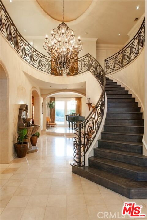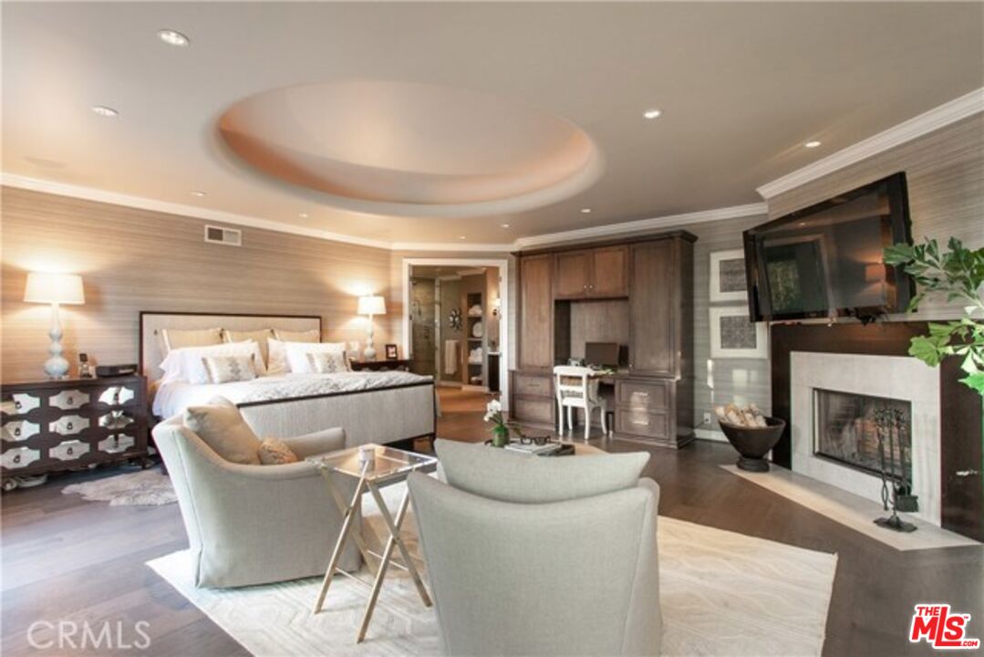 Welcome to this spectacular 6,252 sq ft estate in the prestigious guard-gated community of Mountain View Estates. This rare and highly upgraded Plan 6 residence exudes luxury at every turn, featuring brand-new walnut wood flooring, a smart-controlled saltwater pool and spa, and a completely redesigned primary suite. Step through grand wrought iron doors into a dramatic entryway with a sweeping staircase, setting the tone for the elegant living spaces beyond. The open floor plan flows effortlessly through the main level, with custom coffered ceilings, a stylishly updated living room fireplace, surround sound, and abundant natural light throughout. The gourmet kitchen is a chef's dream equipped with premium Viking appliances, granite countertops, and a large walk-in pantry overlooking the beautifully landscaped backyard. The home offers six spacious en-suite bedrooms, including a show-stopping primary retreat with a romantic sitting area, two custom walk-in closets, a Bain Ultra aromatherapy tub, steam shower, and Toto smart toilet. Step outside to your private resort-style oasis, featuring a covered loggia, built-in BBQ island, firepit, rose garden, and space for a gym or garden shed all perfect for entertaining or unwinding. Located on a quiet street within the award-winning Las Virgenes School District and minutes from Malibu beaches, The Commons, and top private schools, this move-in ready home is a rare find in one of Calabasas' most coveted communities. A must-see for discerning buyers.Interested in this Listing?