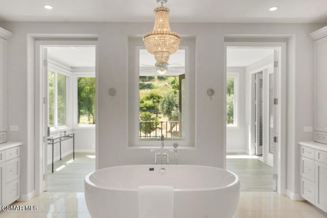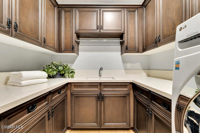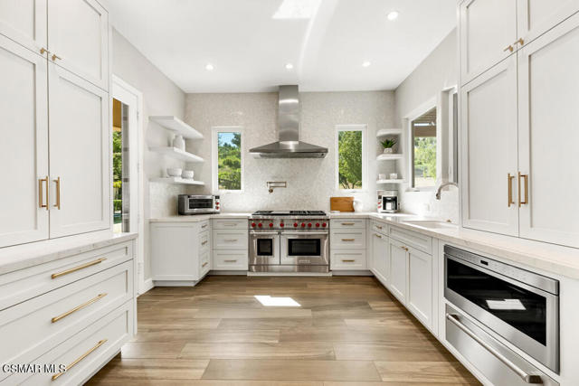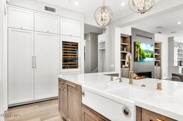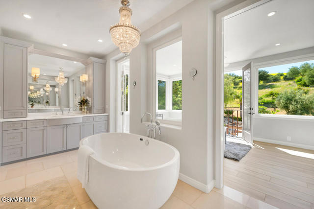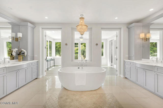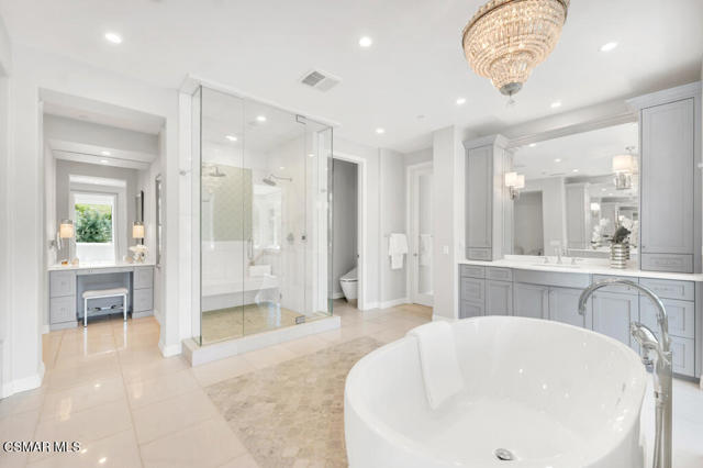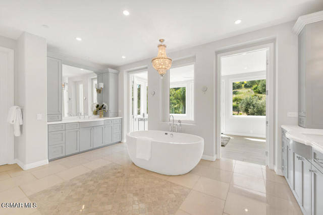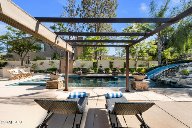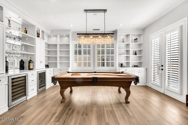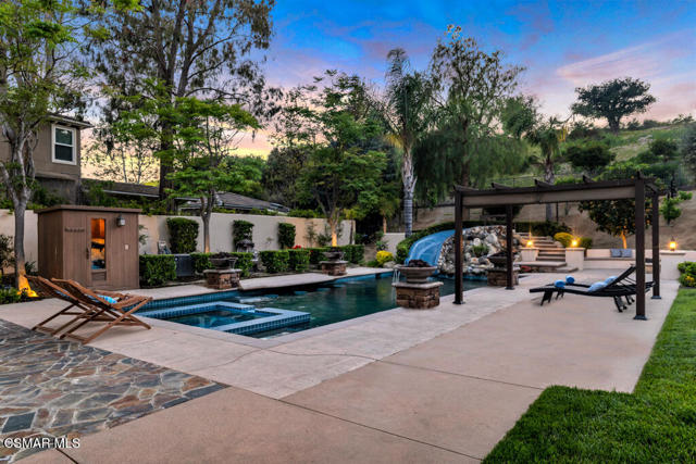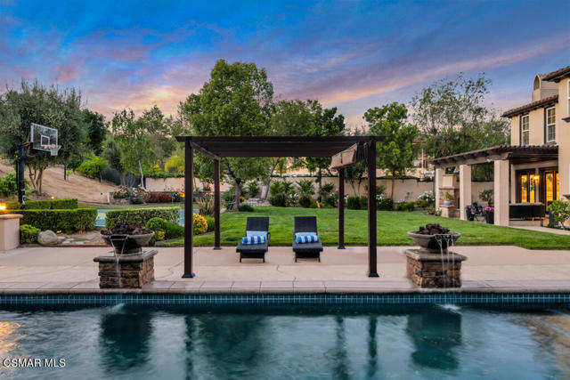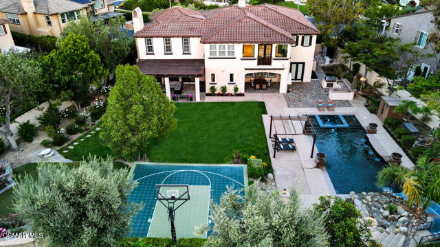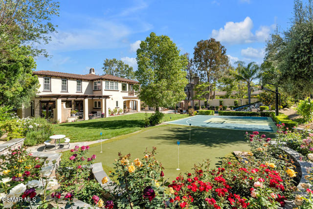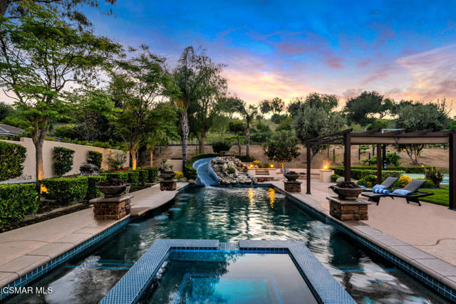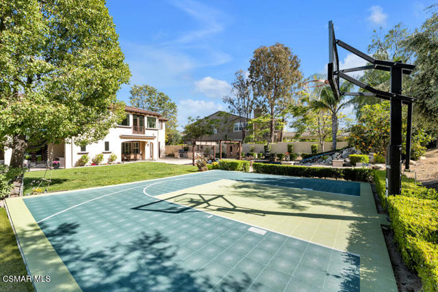 Beautifully situated at the top of the prestigious guard-gated community of Mont Calabasas, this extraordinary estate has been meticulously reimagined and designed to blend timeless elegance with modern luxury. Spanning approximately 5,170 square feet, the residence boasts 5 bedrooms, 5.5 bathrooms, a 3-car garage, and sits on one of the community's largest homesites--nearly an acre with resort-style amenities. From the moment you enter, a grand foyer welcomes you with soaring ceilings, a custom crystal chandelier, and a dramatic curved staircase--setting a tone of sophistication and grandeur. A second staircase off the kitchen provides additional convenience, connecting to the upstairs bedrooms and laundry. At the heart of the home, a chef's kitchen impresses in both form and function. Outfitted with state-of-the-art Wolf(r) appliances, open shelving, a SubZero(r) built-in refrigerator, beverage fridge, dual dishwashers, and pull-out fridge/freezer drawers, the space also includes a large walk-in pantry, a cozy custom breakfast banquette with a freestanding table, and a separate prep kitchen. Custom built-in china cabinets in the formal dining room and crystal hardware and chandeliers throughout the home further enhance the refined details. The formal dining room, highlighted by a fireplace with mother-of-pearl inlay and three sets of French doors, opens to the breathtaking backyard. The family room offers a modern yet inviting ambiance, complete with a sleek 68'' linear fireplace embedded in a floor-to-ceiling stone wall, custom shelving, LED lighting, and integrated surround sound. A separate recreation room with dual wine refrigerators and extensive cabinetry provides the perfect gathering space. A private downstairs ensuite bedroom opens to a tranquil courtyard, and an additional powder room adds convenience for entertaining. All bathrooms throughout the home have been completely remodeled with high-end finishes--no builder-grade materials here. The upstairs features four ensuite bedrooms and a spacious bonus room which offers endless flexibility as a gym, media space, or additional lounge. The laundry room includes custom cabinetry and a sink for functionality. The luxurious primary suite is a private retreat, complete with a sunroom featuring remote-controlled window coverings, and an ultimate spa bathroom adorned with imported marble, dual vanities, a freestanding soaking tub, and a steam shower with high ceilings, dual showerheads, surround sound, and views overlooking the backyard and vineyard. A crystal-lit custom make-up vanity area and an enormous walk-in closet with custom built-ins complete the sanctuary. The expansive backyard is a true resort-style oasis, highlighted by a sparkling saltwater pool with custom built-in bar stools, a spa, slide, waterfall, and stunning fire and water bowls. Additionally, a sauna rests poolside and across the magnificent lawn a serene koi pond with a cascading waterfall sits next to a cozy patio centered around an outdoor fireplace. Entertain with ease in the full outdoor kitchen and enjoy evenings under the stars gathered around the fire pit with lounge seating. A vineyard, fruit trees, and herb garden (with strawberries currently in season) bring beauty and bounty, while a rose garden borders the fun putting green. Mature trees provide the perfect setting for a future treehouse, and a private basketball/sports court offers additional outdoor recreation. Additional features like the extra-wide driveway, allowing ample parking for family and guests, an alarm system with security cameras and motion detectors, dual A/C/heater units, EverLights, a whole-house generator, and thoughtful storage solutions throughout the house provide comfort and peace of mind. Ideally located near Malibu beaches, hiking and biking trails, upscale shopping, and award-winning schools, this exceptional home offers a lifestyle of unmatched luxury and comfort in one of Calabasas' most sought-after communi...Interested in this Listing?