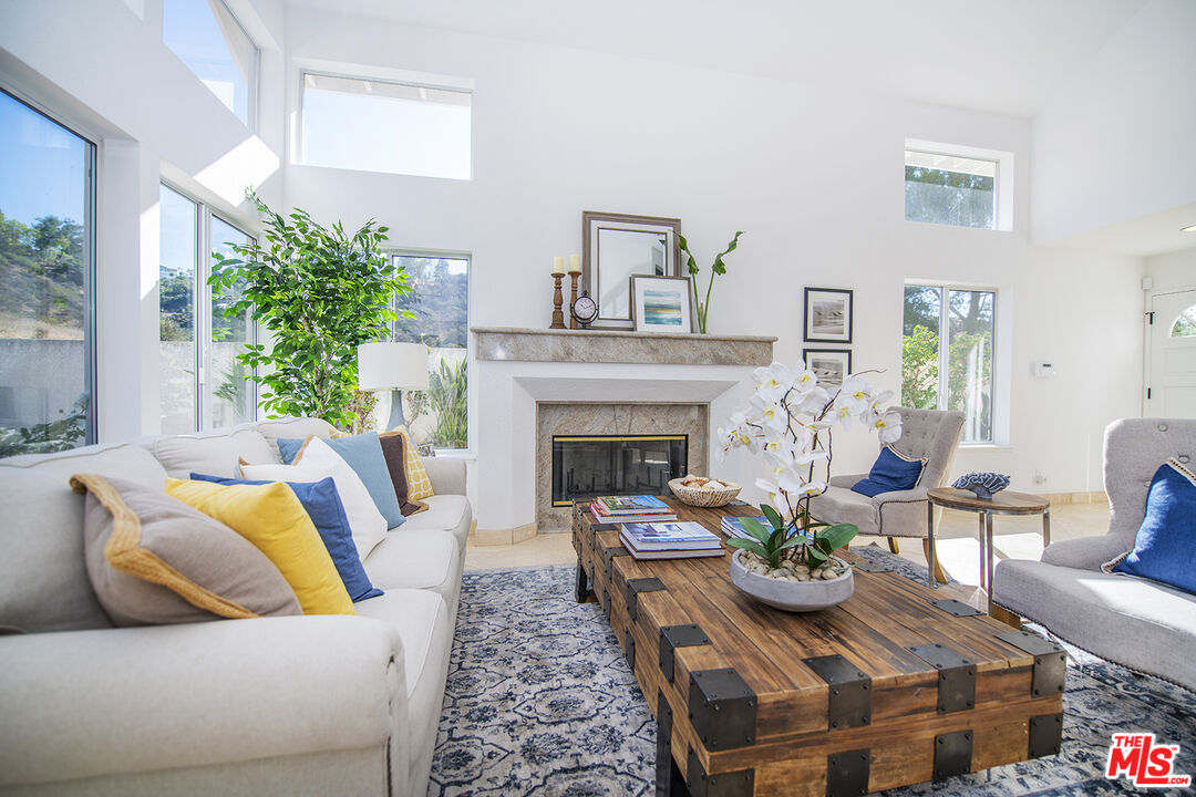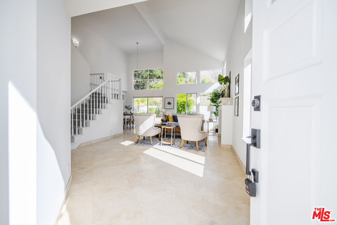 Nestled on a quiet cul-de-sac in the beautiful gated community of Calabasas Hills is this bright 4 bedroom, 3 bathroom home. The front entry door leads into a spacious living room with high ceilings, stone inlay fireplace, and a separate dining area with large picturesque windows. Enjoy entertaining in your open kitchen with stainless steel appliances, sunny breakfast nook, and a barstool seating from your family room. Upstairs are 3 generous bedrooms with high vaulted ceilings, a beautiful primary suite with a sitting area, walk in closet, dual sink vanity, and separate tub and shower. New hardwood floors in the primary bedroom and hallway. There is an additional bedroom and bathroom downstairs. Easily entertaining with plenty of space for outdoor seating and dining with beautiful mountains in the backdrop. Calabasas Hills is located in the award-winning LVUSD, with walking distance to Bay Laurel Elementary School and plenty of community amenities including 24-hour guard gated security, community pool, and park within walking distance. Tenant must provide refrigerator and washer/dryer.Interested in this Listing?