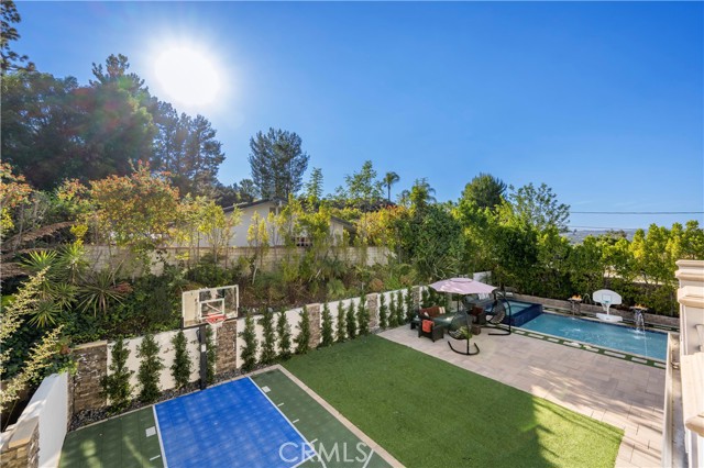 Breathtaking renovated estate offering the finest luxury experience and located within the highly desired Mulwood neighborhood of Calabasas. Bright open floor exuding tons of natural light and modern designer finishes throughout perfect to enjoy the California lifestyle. Sleek brand new chef's kitchen with custom cabinetry, quartz countertops and SubZero/Wolf appliances. This stunning home features over 4,400 sqft of living space and 6 six spacious bedrooms. Large glass pocket doors open to the backyard which is a true entertainers paradise featuring a new poo/spa, BBQ center, fire pit area, large covered patio, outdoor bath/shower, sport court and tons of grassy space. Oversized master suite with balcony overlooking to the yard, walk-in closet and indulging master bathroom with sauna. Additional amenities include home gym, security cameras and surround sound system. Located just minutes away from upscale boutique/shops, The Commons, and award winning LVUSD schools.Interested in this Listing?