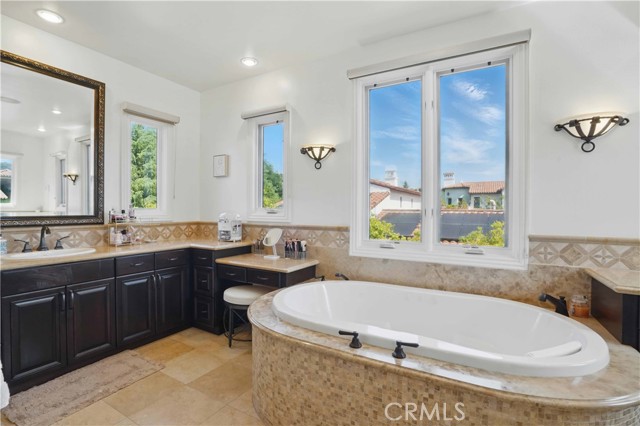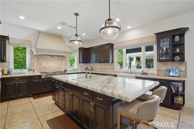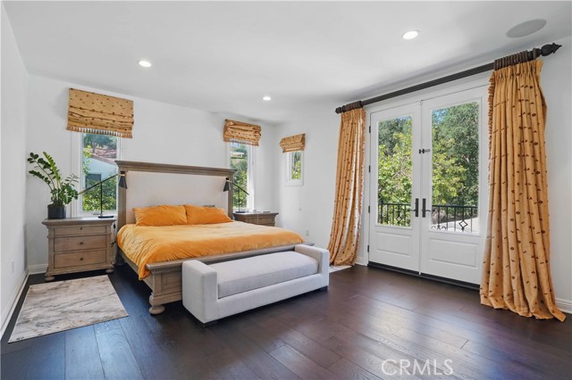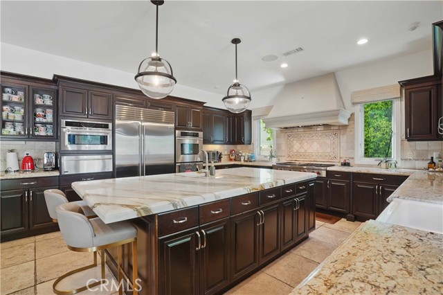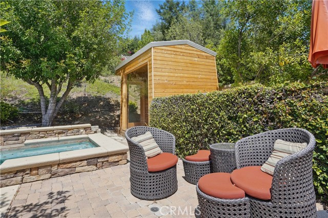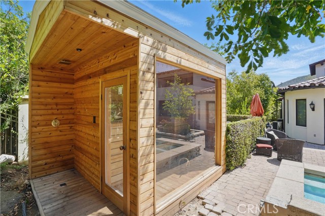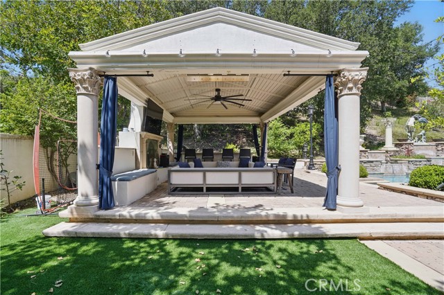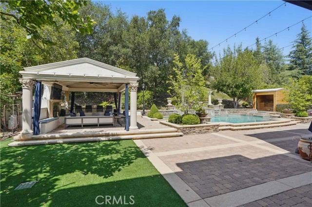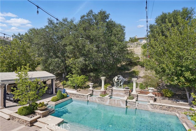 Welcome to The Oaks of Calabasas, where luxury meets lifestyle in this beautifully updated modern Mediterranean estate, located on a peaceful cul-de-sac. This rare Laing Castille Plan 2 spans approximately 6,704 sq ft and features 6 en-suite bedrooms and 7 bathrooms, offering both elegance and functionality. The grand entry showcases soaring double-height ceilings, cathedral-style architecture, and a dramatic spiral staircase. The formal sitting room flows into a custom-designed office and a stunning, temperature-controlled wine wall with capacity for over 1,200 bottles. The chef s kitchen is the heart of the home, featuring Calacatta marble on the oversized island, top-of-the-line Wolf and Sub-Zero appliances, a butler s nook, and a spacious walk-in pantry. A seamless layout leads to a state-of-the-art movie theater equipped with built-in high-end audio/visual components, leather reclining seats with cup holders, and cell phone charging ports. An additional bonus room adds flexibility for entertaining or relaxing. Upstairs, the expansive primary suite is a private retreat with two sets of French doors that open to a large balcony overlooking the pool. The suite is complete with dual custom walk-in closets and a luxurious spa-like bathroom. The lush, resort-style backyard is designed for year-round indoor-outdoor living, featuring a covered gazebo with a fireplace, lounge area, bar, and built-in BBQ. A separate alfresco dining space overlooks the one-of-a-kind saltwater pool and spa with cascading waterfalls and dramatic water features, a solar pool heater and a large sauna. Additional amenities include a whole-house sound system, water softener filtration system, a finished 3-car garage with epoxy flooring and EV hookups, and an assortment of mature fruit trees. Residents of The Oaks enjoy 24-hour guard-gated security, patrol service, tennis courts, a newly renovated gym, Olympic-sized pool, clubhouse, playground, and miles of scenic hiking trails just minutes from premier shopping and dining. This is a truly custom, one-of-a-kind home offering the ultimate in California luxury living.Interested in this Listing?