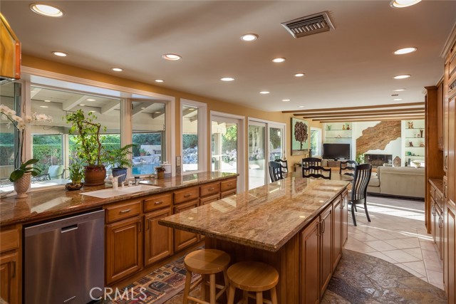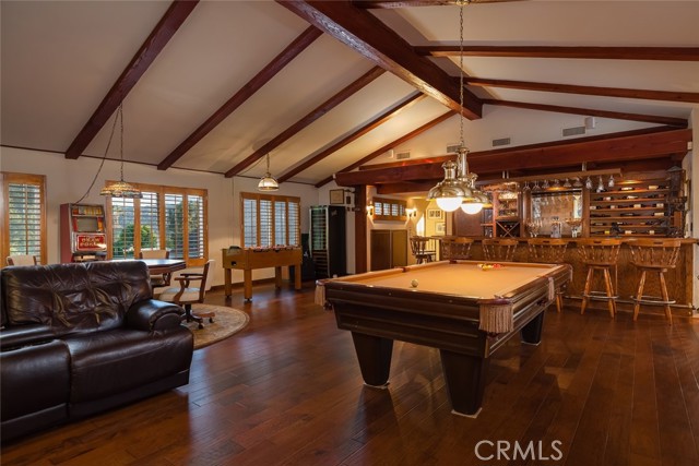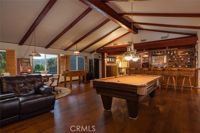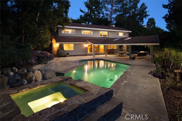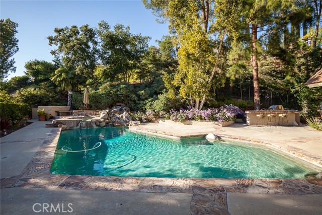 TOWHEE PARADISE ESTATE. Enter your gated estate and escape to your own private retreat. Bask in the lush, colorful natural surroundings, and the soothing sounds of its river rock waterfall cascading into the serene pool and spa, while overlooking spectacular mountain and sunset views. Towhee Paradise Estate raises the bar in indoor and fine outdoor living with the seamless expansion of its cook s kitchen and large family room to a four-hundred square foot covered patio with skylights, speakers, and wired for a flat screen TV. Splash in your pool, relax in your spa (installable safety fence included), and cook on your built-in barbeque amidst the beautifully designed grounds which include a winding ornamental riverbed. Enter 3,924 living square feet of awesomeness through the double doors of an elegant five panel wall of textured glass. The two-story foyer leads to the living and family rooms, both, offering the welcoming warmth and ambience of wood-burning fireplaces, finished with inspired contemporary designs. Fresh paint and new hardwood floors throughout the house. You ll thoroughly enjoy cooking in your bright kitchen with its large island, five-burner Gaggenau stove, Dacor double-oven, Sub-zero refrigerator and instant hot water faucet. However, your favorite place to lounge might just be the eight-hundred forty square foot game room with cathedral ceilings, commercial size wet bar, and wood burning fireplace. The wood shuttered windows of the game room open to an alpine display making this a wonderful place to entertain, unwind at the end of a day, or to just hangout. Sweeping mountain, treetop and sunset views from the upstairs bedrooms, including the master bedroom with cedar-lined closet, and spacious newly remodeled master bath. Three-car garage plus several extra parking spaces. The garage is finished with a sink, cabinet and tabletop work area. There are many extra amenities like tons of storage space, alarm system, auto sprinklers, and downstairs nanny quarters. Towhee Paradise is located within the top-rated Las Virgenes School District, and is walking distance to Chaparral Elementary, Alice C. Stelle Middle and Calabasas High Schools. Optional personal property includes pool table, foosball table, bumper pool, couch, vintage pinball machines, weight equipment, couch, 3 flat-screen TVs, dining room table, leather couch, plus other items.Interested in this Listing?