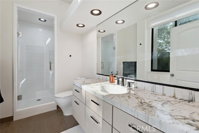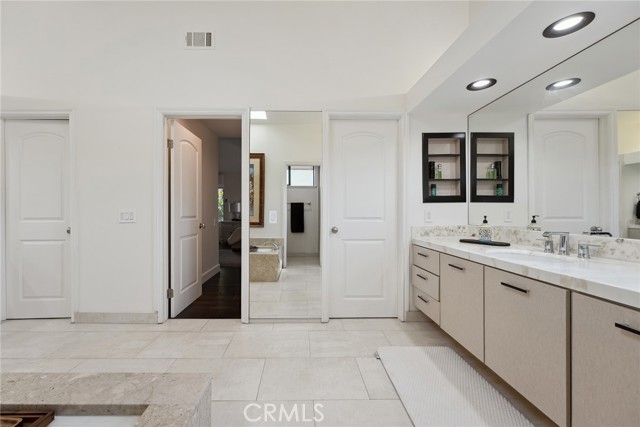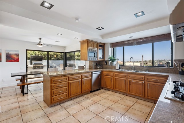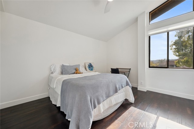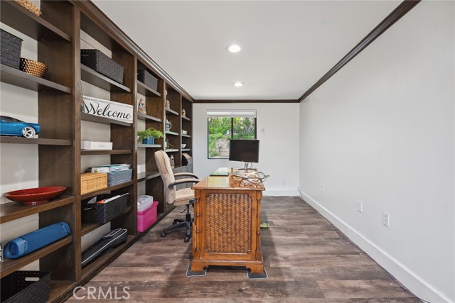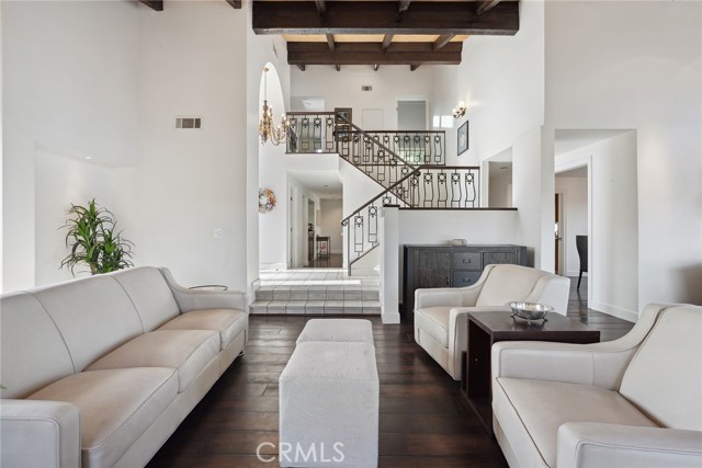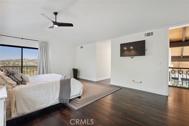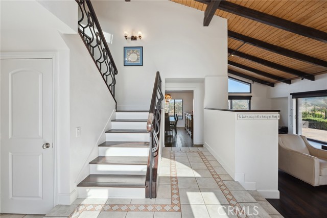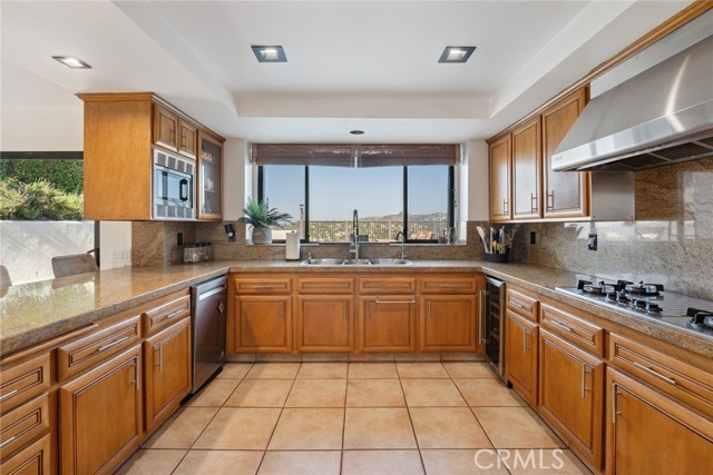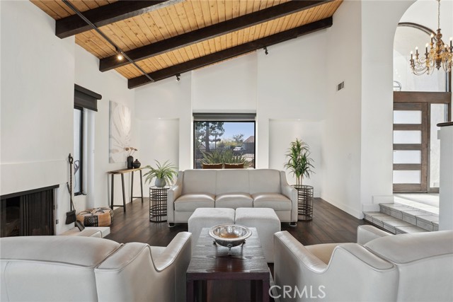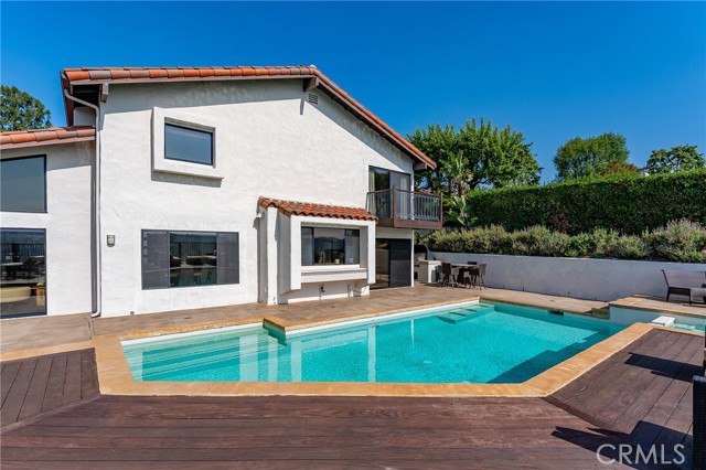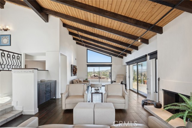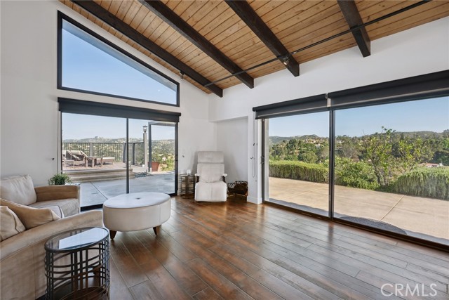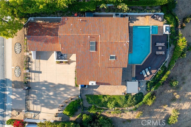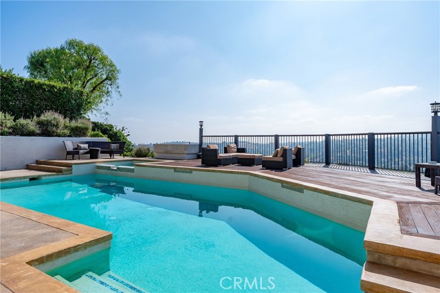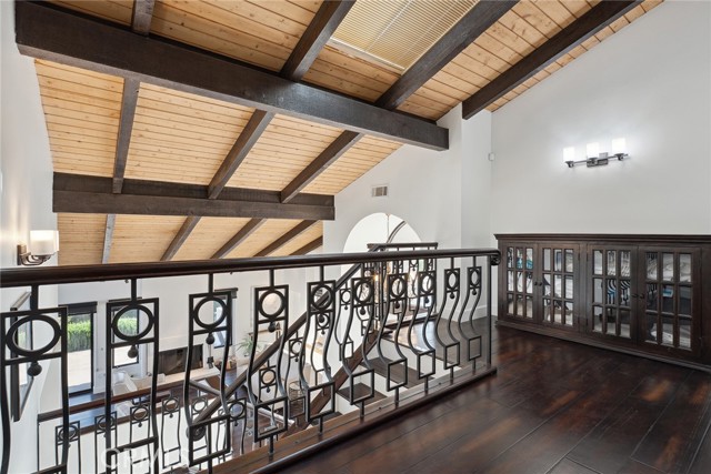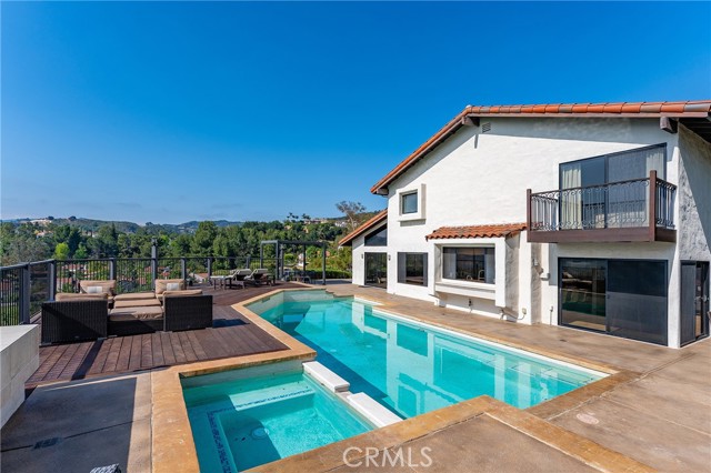 Nestled at the end of a cul-de-sac, on one of the most coveted streets in Calabasas Park, come see this updated, custom home with 4 bedrooms, 4 and 1/2 bathrooms, Office, and 180 degree city-view light. The VIEW captures the sunrise in the mornings and city-lights in the evenings. Designed as the original builder's personal home, this home has an arched entry, custom-stair banister, an open-wood beamed ceiling in the living, unique-aged espresso floors, new black-trimmed LED lighting, a built-in refrigerator, Thermador double-oven and more. Outside enjoy the eco-friendly landscaping, an oversized driveway that accommodates 6 cars, and security gates. Additionally, you will enjoy every aspect of the backyard-from the Custom BBQ Area and shaded pergola, to the large deck where you can show movie on the back of the house or stare out into the night. Plenty of space for entertaining any size group. Back inside, enjoy the view from the dining room, kitchen, living rooms(2) and Primary Suite. ALL bedrooms are ensuite. The Primary bathrooms plus the upstairs bathrooms were recently updated with stone-coated counters black fixtures, luxury tile floors, and solid wood doors. This home is a quality home with warm and inviting touches. 4 ensuite bedrooms, 1 lower office/living space with separate entry, plus views, pool, jacuzzi and deck.Interested in this Listing?