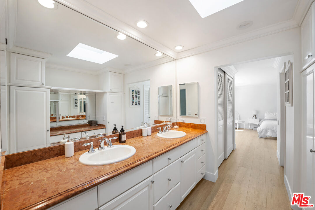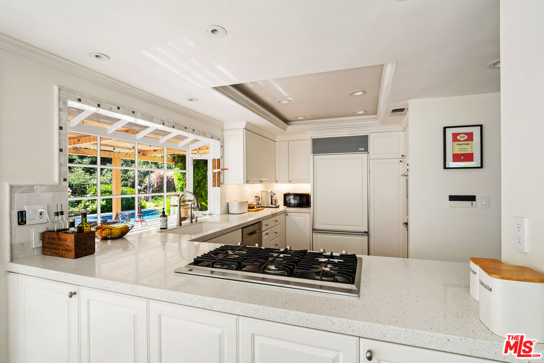 Discover your oasis in the heart of Calabasas. Nestled in this prestigious community, this newly refreshed 5-bedroom haven offers the perfect blend of luxury and natural beauty. Backing onto a lush grove of trees, this property provides a serene escape while keeping you connected to all the amenities of upscale suburban living.Step inside to find gleaming natural wood floors and plush new carpeting throughout, creating a bright, airy ambiance enhanced by soft white walls and multiple large skylights. The thoughtful floor plan features 4 bedrooms upstairs, 1 bedroom and bath downstairs, plus a powder room. At the heart of the home, the gourmet kitchen showcases sleek white Caesarstone countertops, pristine cabinetry, high-end stainless steel appliances, and a built-in Sub-Zero refrigerator. Retreat to the tranquil primary suite, boasting picturesque views through expansive windows, abundant natural light, dual closets, and a separate vanity area. Spacious secondary bedrooms, a convenient indoor laundry room, and an attached 3-car garage complete the interior.Comfort and efficiency are assured with double-paned windows and an updated dual-zone heating and A/C system. Step outside to your own resort-style paradise, featuring an inviting salt-water pool and spa, expansive entertaining areas, and a lush tree-lined backdrop creating a private retreat. An indulgent outdoor shower adds a touch of luxury to your backyard oasis.This prime Calabasas location offers the best of everything: steps away from the exclusive lake and resident-only common areas, easy access to The Commons shopping center, a Saturday Farmer's Market within walking distance, and scenic paths for strolls or bike rides. Commuters will appreciate the quick freeway access, while families can take advantage of the excellent Las Virgenes school district.Interested in this Listing?
