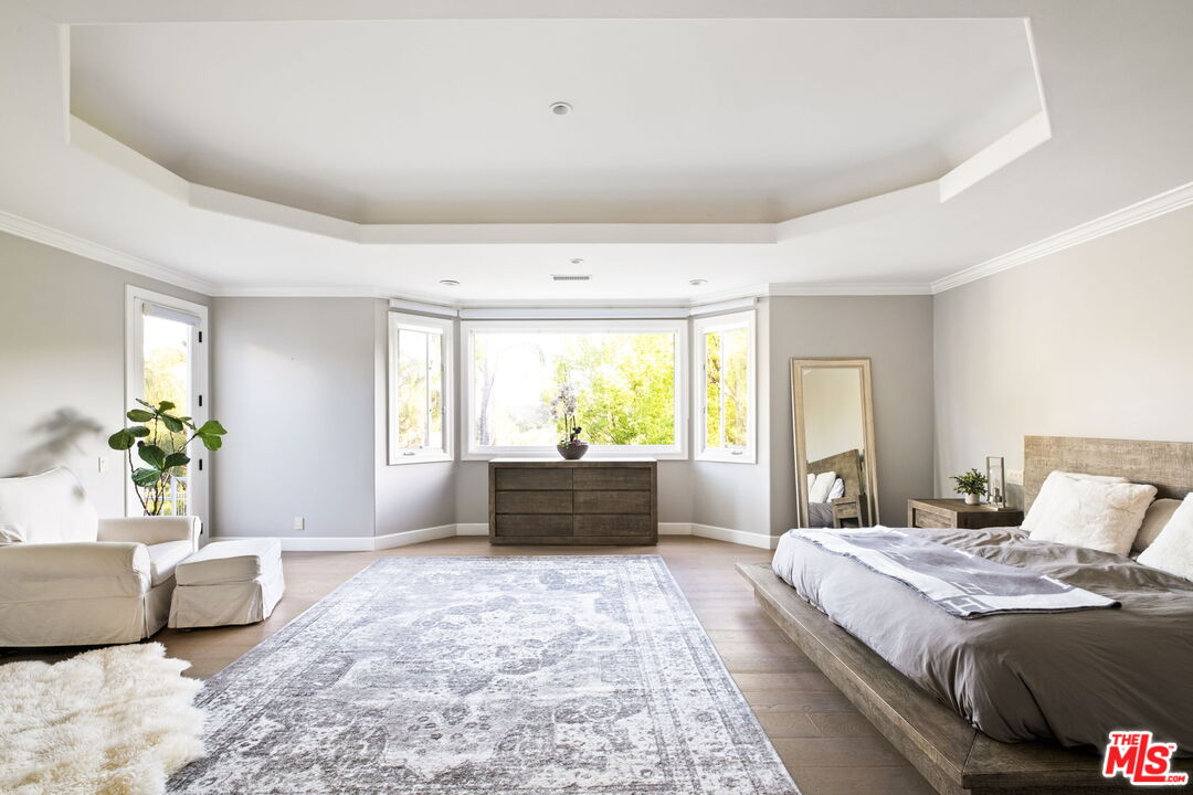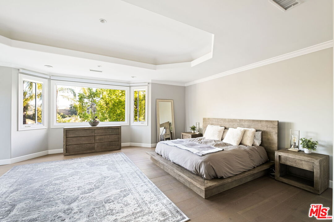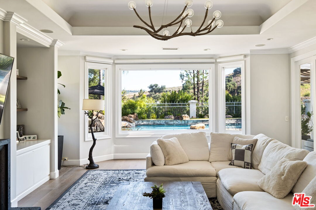 Located in the prestigious guard-gated community of Mountain View Estates in Calabasas, this pristine furnished estate boasts breathtaking pastoral and sunset views. Sunlight pours through expansive bay windows, illuminating the bright, naturally lit interiors. This home has been fully updated, featuring a designer kitchen with a large center island and top-of-the-line Viking stainless steel appliances. With an inviting open floor plan, engineered wood flooring, high ceilings, and custom window treatments throughout, this residence exudes elegance.The home offers five generously sized bedrooms with ample closet space, including a luxurious master suite with dual his-and-hers closets and an expansive master bath. Additionally, there's a state-of-the-art home movie theater for your entertainment needs.The expansive backyard is an entertainer's dream, complete with a pool and spa, a built-in BBQ area, multiple entertainment zones, and a spacious patio. Situated on a quiet street, this stunning home offers a prime location, a desirable open floor plan, a sizable, usable lot, and magnificent views in one of the most esteemed Las Virgenes School District. The home is available furnished.Interested in this Listing?