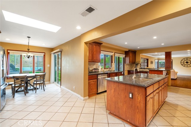 Sustainable luxury meets modern convenience! This must-see tennis court estate boasts approximately 3,906 sq. ft. of elegant living space on a spacious lot, with 5 bedrooms (4 on title) and 4 bathrooms in the Oakshire Knolls neighborhood in Chatsworth just minutes from Porter Ranch and Northridge! Inside, you ll find soaring ceilings, an abundance of natural light, and spacious areas for entertaining. The home has warm hardwood flooring throughout the living area, dining area, and family room. The stairs lead to all 5 bedrooms plus a bonus open loft. The large upstairs loft offers endless possibilities home office, game room, upstairs den or gym! The primary suite is a true retreat, featuring a spacious walk-in closet with built-in organizers, an ensuite bath with a jetted tub, separate shower, and dual sinks, view of the distant mountains. Additional features include dual-pane windows and sliders, recessed lighting, dual-zone HVAC, ample storage in the hallways. The chef s kitchen is designed to impress, with granite countertops, a large breakfast area, oak cabinetry, wine fridge, large island, and a breakfast bar. The adjoining formal dining room features elegant crown molding, perfect for hosting. The family room has a hallway that leads to the laundry and mud room and attached 2 car garage. The family room opens out to the backyard. The backyard is designed for both relaxation and recreation, with a large expansive patio for al fresco dining and lounging, a grassy yard, and a shared tennis court with night lights perfect for tennis, pickleball or basketball enthusiasts! The two-car garage offers direct access and additional storage. Equipped with a cutting-edge Tesla Solar Roof, Tesla battery backups, and a Tesla charging station, this home is designed for energy efficiency and sustainability. The expansive entertainer s backyard offers plenty of room for a pool, making it the perfect canvas for your dream outdoor oasis. Conveniently located near Starbucks, Trader Joe s, top restaurants, Mason Park & Recreation Center, and more! Don t miss this incredible opportunity to own a home that blends luxury, sustainability, and endless possibilities!Interested in this Listing?