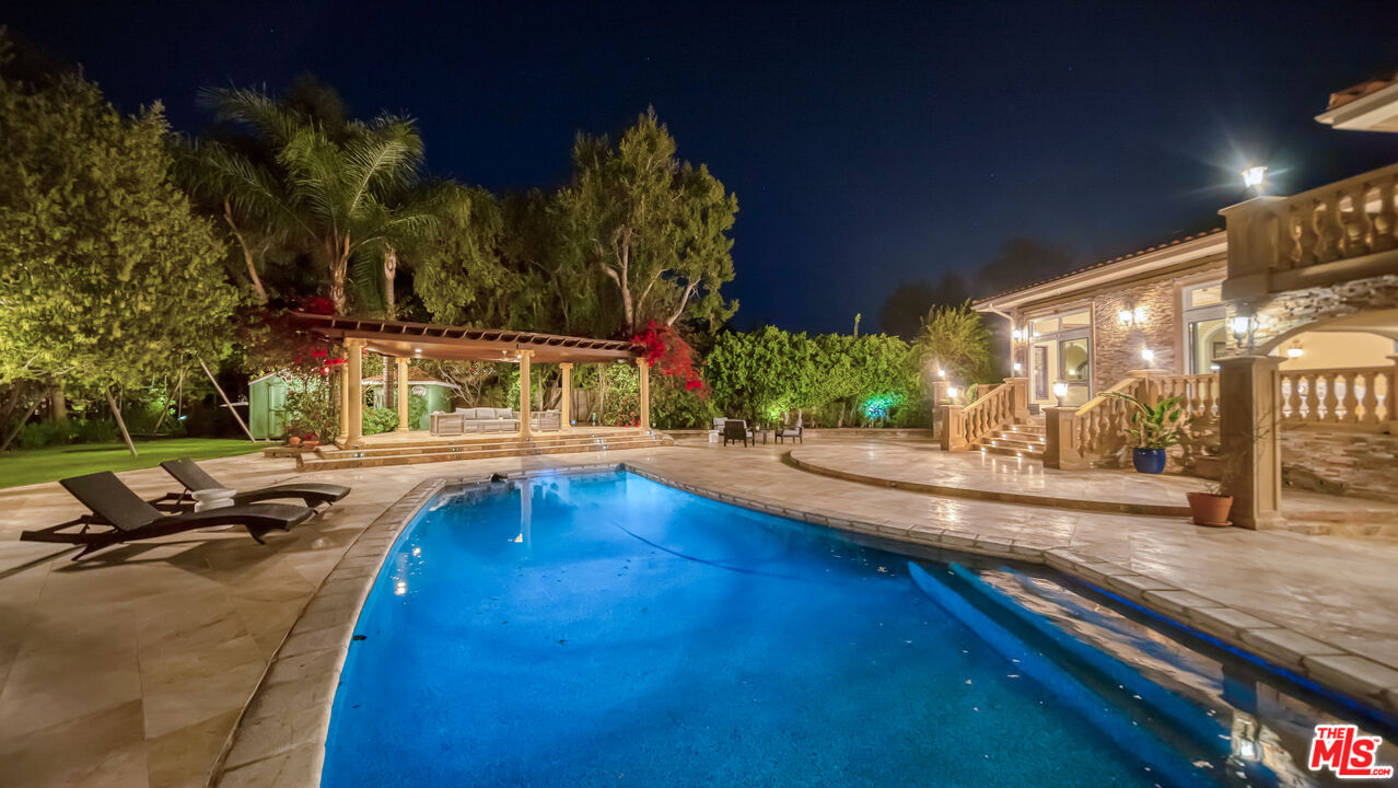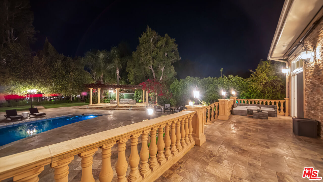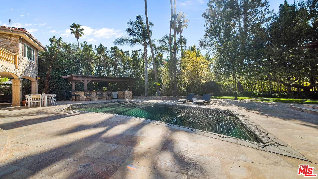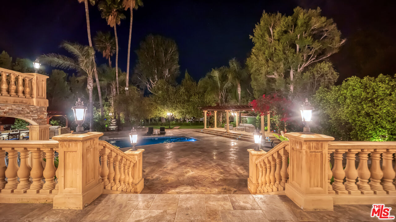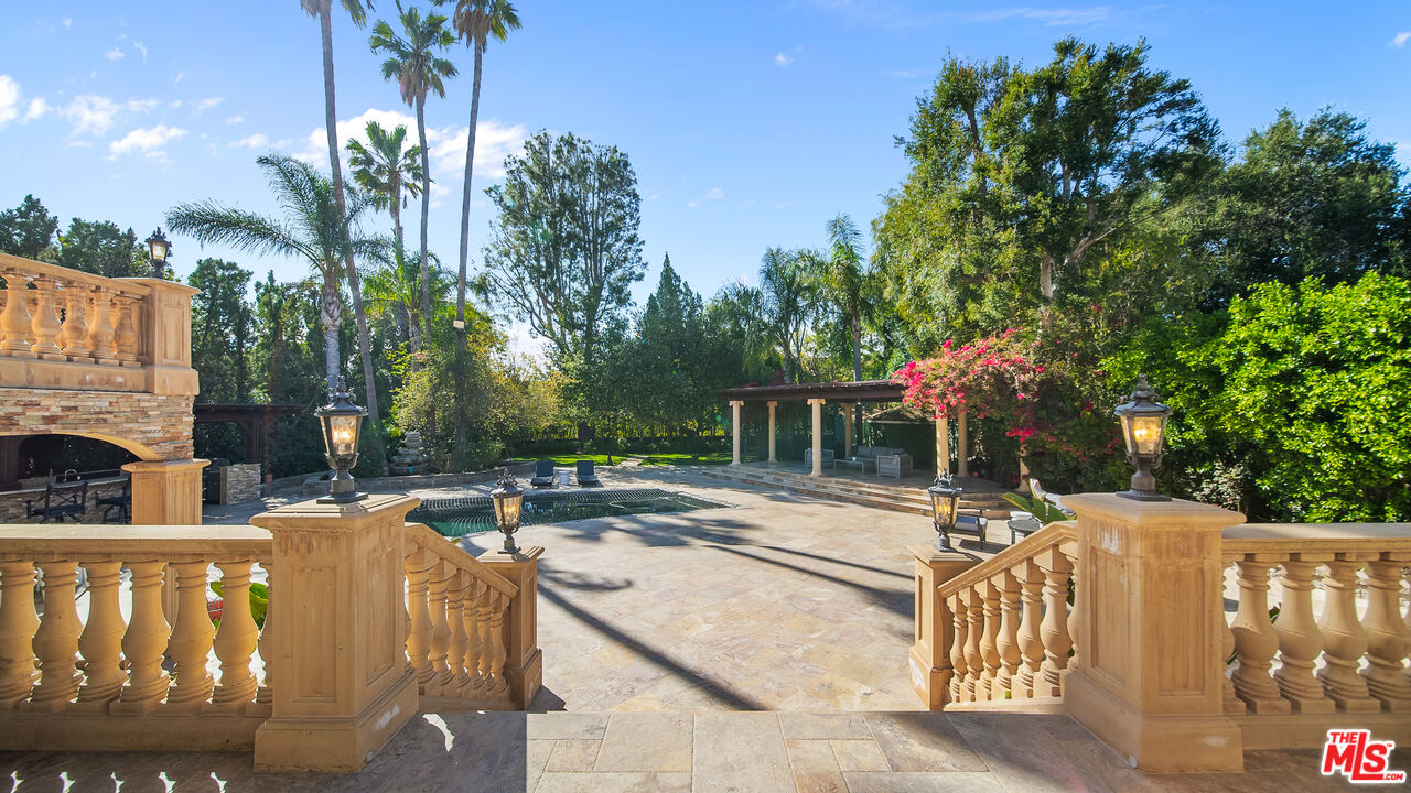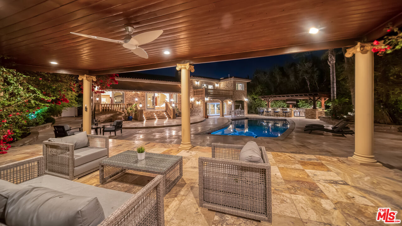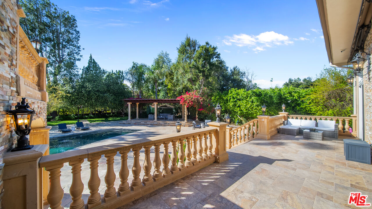Exquisite Mediterranean Estate in Chatsworth! Welcome to this elegant, reimagined Mediterranean estate in the heart of Chatsworth! Nestled on an expansive 18,000+ SQFT lot, this luxurious 5-bedroom, 4-bathroom residence offers nearly 4,300 SQFT of living space, showcasing high-end finishes and impeccable craftsmanship.From the moment you enter, you'll be captivated by soaring ceilings, stunning custom arches, and gleaming marble floors bathed in natural light. The state-of-the-art chef's kitchen is a true masterpiece, featuring a 6-burner gas Wolf range, built-in custom Sub-Zero refrigerator, oversized eat-in island, skylight, dramatic marble backsplash, and stainless steel farmhouse sink. Designed for grand entertaining, the formal living and dining areas boast coffered ceilings, Roman/Greek columns, dazzling chandeliers, and an elegant White Carrara marble fireplace. A second living room on the lower level offers a full wet bar, Italian-inspired fireplace, and custom sliding doors leading to the breathtaking backyard.Step outside to your private oasis, where travertine floors, an expansive patio, and a full outdoor kitchen create the ultimate indoor-outdoor living experience. Take a dip in the sparkling pool, surrounded by lush greenery and resort-style landscaping. The luxurious primary suite features a private balcony, generous walk-in closet, sunken jetted tub, glass-enclosed shower, and dual vanities with a makeup counter. With two additional bedrooms upstairs and two on the lower level, this home offers ample privacy and space for family and guests. Owned Solar! A custom 3-car garage with a workbench and storage completes this extraordinary home. This estate truly has it all elegance, space, and resort-style living! Don't miss this rare opportunity! Schedule your private showing today! CLICK ON THE VIRTUAL TOUR LINK FOR A FULL VIDEO.Interested in this Listing?