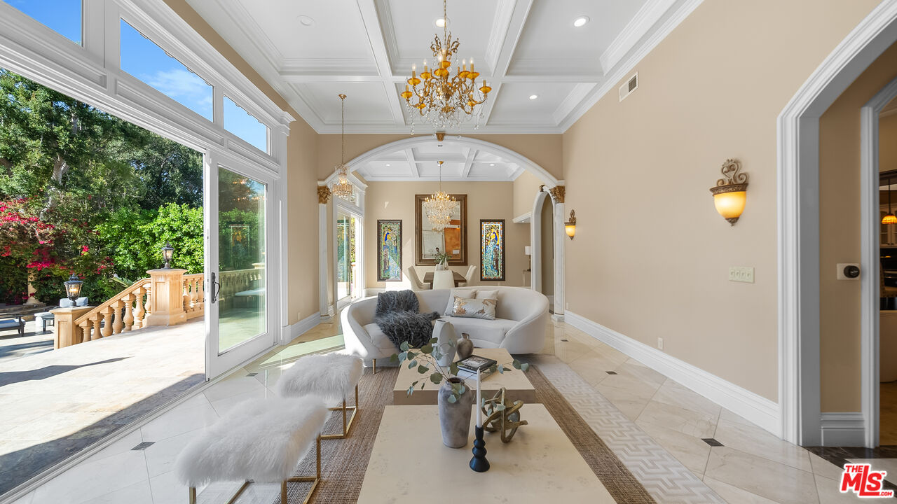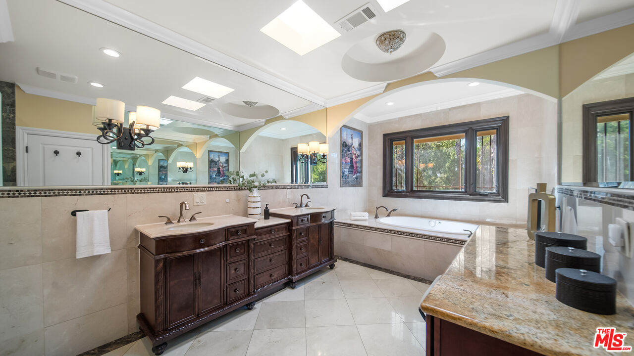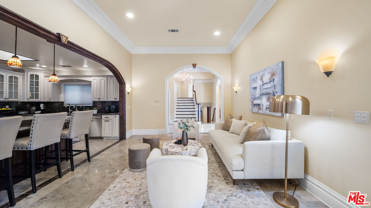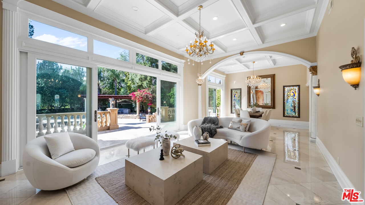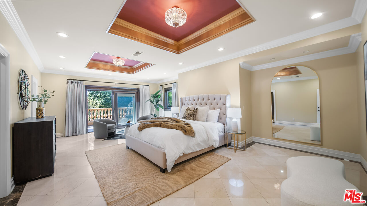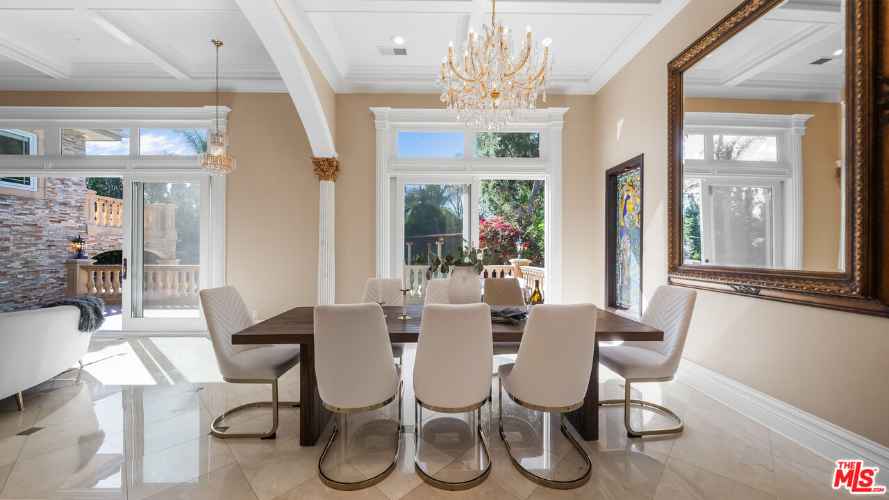 Exquisite Mediterranean Estate in Chatsworth! Welcome to this elegant, reimagined Mediterranean estate in the heart of Chatsworth! Nestled on an expansive 18,000+ SQFT lot, this luxurious 5-bedroom, 4-bathroom residence offers nearly 4,300 SQFT of living space, showcasing high-end finishes and impeccable craftsmanship.From the moment you enter, you'll be captivated by soaring ceilings, stunning custom arches, and gleaming marble floors bathed in natural light. The state-of-the-art chef's kitchen is a true masterpiece, featuring a 6-burner gas Wolf range, built-in custom Sub-Zero refrigerator, oversized eat-in island, skylight, dramatic marble backsplash, and stainless steel farmhouse sink. Designed for grand entertaining, the formal living and dining areas boast coffered ceilings, Roman/Greek columns, dazzling chandeliers, and an elegant White Carrara marble fireplace. A second living room on the lower level offers a full wet bar, Italian-inspired fireplace, and custom sliding doors leading to the breathtaking backyard.Step outside to your private oasis, where travertine floors, an expansive patio, and a full outdoor kitchen create the ultimate indoor-outdoor living experience. Take a dip in the sparkling pool, surrounded by lush greenery and resort-style landscaping. The luxurious primary suite features a private balcony, generous walk-in closet, sunken jetted tub, glass-enclosed shower, and dual vanities with a makeup counter. With two additional bedrooms upstairs and two on the lower level, this home offers ample privacy and space for family and guests. Owned Solar! A custom 3-car garage with a workbench and storage completes this extraordinary home. This estate truly has it all elegance, space, and resort-style living! Don't miss this rare opportunity! Schedule your private showing today! CLICK ON THE VIRTUAL TOUR LINK FOR A FULL VIDEO.Interested in this Listing?