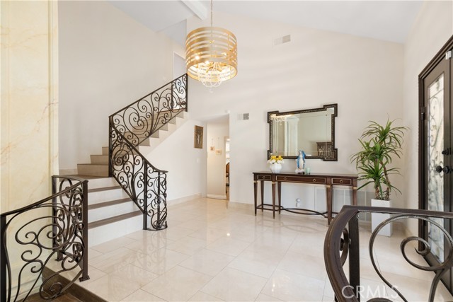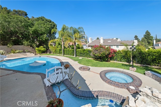 Welcome to this beautifully updated, move-in ready two-story pool & spa home in the highly sought-after Prime Chatsworth area. This contemporary 5-bedroom, 3-bathroom home offers over 3,500 sq ft of living space on an approx. 11,000 sq ft lot, combining modern luxury with comfort and functionality. Step inside through the elegant double-door entry & be greeted by a striking wrought iron staircase & an excellent floor plan featuring three spacious living areas: living room, formal dining room, and a cozy family room with custom-built-ins, marble-topped wet bar, and a wine cooler. French doors lead you to the private entertainer s backyard with a pool, spa, fire pit, and tranquil waterfall feature. The fully remodeled chef s kitchen is a showstopper, boasting: Custom maple cabinets with Blum soft-close drawers Maplewood lacquer white & blue finish by Catalina Paint Striking quartz countertops and full quartz backsplash Under-cabinet lighting High-end Newport Brass faucet All top-tier Wolf appliances: gas range, dishwasher, steamer, warming drawer & Subzero refrigerator Island with pop-up electric socket Upstairs, the primary suite features double glass doors opening to a private balcony overlooking the backyard oasis. The en-suite bath offers a spa-like retreat w/a walk-in closet, custom finishes, and elegant design. You'll find four bedrooms upstairs and one bedroom and one Bath downstairs, perfect for guests or a home office. ( Two upstairs bedrooms were combined to create a larger space but can easily be converted back.) The remodeled upstairs bathroom includes porcelain tile, Newport Brass fixtures, and custom maple cabinetry with built-ins. Additional Features: Brand-new Two energy-efficient central HVAC system Whole-house water softener system New storage cabinets throughout the garage 3-cars garage with RV parking, with finished floors & additional parking for 3 or more cars in the driveway. Full exterior Ring camera security system for peace of mind Recessed lighting, dual-pane windows, and elegant plantation shutters throughout Crown Molding Located near parks, horse trails, shopping, and offering easy freeway access, this home blends elegance, comfort, and convenience. This exceptional home blends contemporary luxury with functionality, offering a rare opportunity to enjoy upscale living in one of Chatsworth s finest neighborhoods. Don t miss your chance to own this one-of-a-kind Chatsworth gem!Interested in this Listing?