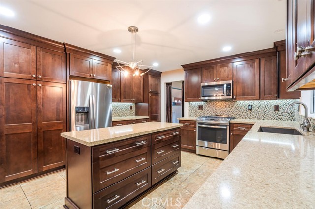 Nestled in the prestigious Rancho de Caballeros community, this stunning estate seamlessly blends modern luxury with serene, spacious living. Known for its equestrian-friendly atmosphere, oversized lots, and peaceful soft-shoulder roads, this sought-after neighborhood offers both tranquility and convenience. With its prime cul-de-sac location, this home enjoys exceptional privacy while remaining close to modern amenities. Upon entry, you're welcomed by a bright and open floor plan rich with architectural charm. The formal living room boasts soaring vaulted ceilings and a centerpiece fireplace, setting the stage for effortless entertaining. Adjacent, the dining room provides a spacious setting for holiday gatherings or intimate dinners. The chef s kitchen has been thoughtfully updated with custom cabinetry, granite countertops, and a mosaic backsplash, creating a space that any gourmet would appreciate. Flowing into the inviting family room, this area is warmed by a stacked-stone fireplace and features a wet bar, perfect for hosting guests. A full en-suite bedroom downstairs is ideal for visitors or a home office. The oversized three-car garage offers direct access to the main living areas. Upstairs, the expansive primary suite serves as a true retreat, featuring vaulted ceilings, a private balcony, and a recently updated walk-in closet. The spa-like en-suite bathroom showcases a one-of-a-kind copper soaking tub, dual vanities, and a beautifully designed walk-in shower. The secondary bedrooms are generously sized, sharing a well-appointed Jack-and-Jill bathroom. Outside, the lush half-acre lot offers endless possibilities for creating your own private oasis. A sprawling covered patio with an outdoor BBQ sets the stage for effortless entertaining, while a fruit orchard and mature trees enhance the home s natural beauty. With direct backyard access to Old Mission Trail, enjoy miles of scenic hiking and equestrian trails just steps from your door. This exceptional home is a rare offering in one of the area s most coveted communities. With easy access to the 118 Freeway and proximity to The Vineyard at Porter Ranch, you'll enjoy fine dining, Whole Foods, and upscale shopping all delivering a lifestyle of luxury and convenience.Interested in this Listing?