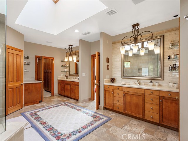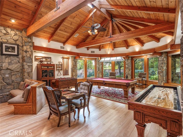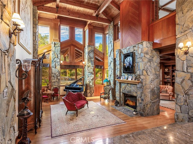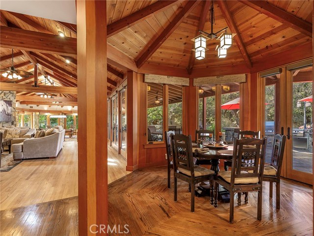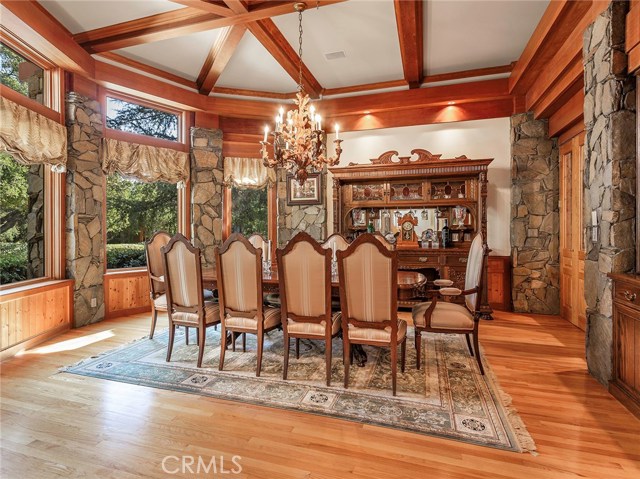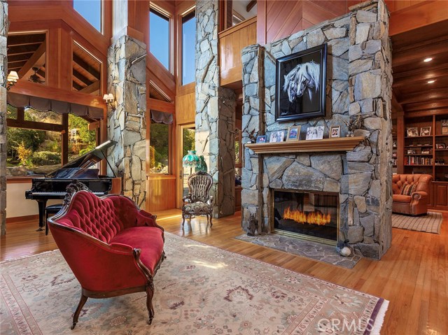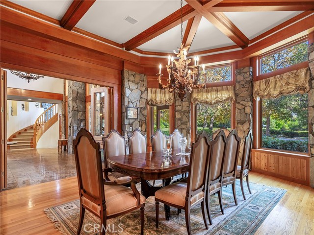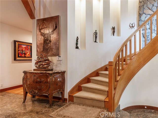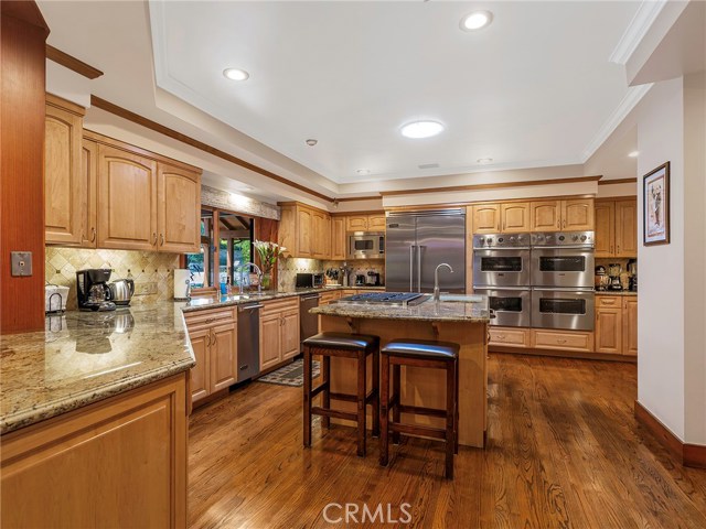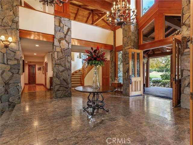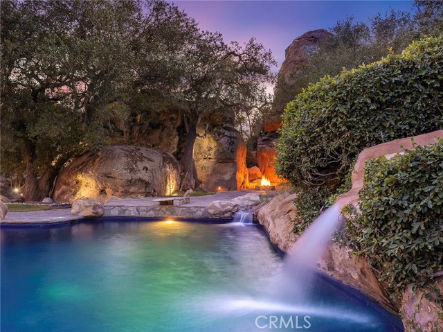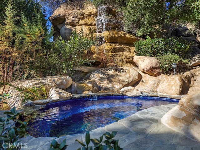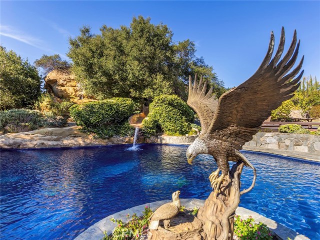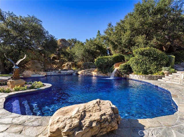 Vacation living all year round. Quiet and private. Set behind private gates & down a long driveway sits this amazing, 6 bed, 6 ½ bath, almost 8,500 square foot estate. Grand architecture with craftsman details. Enormous Great Room/Game Room featuring a wet-bar, built in entertainment center & double-sided stone fireplace with inglenook seating. The remodeled kitchen has granite counter tops, large center island, high-end stainless steel appliances, butler s pantry & large walk-in pantry. There is also a large wine cellar. The Owner's suite encompasses the entire upstairs & incl. built-in dual desks, stone fireplace, dual closets, large balcony & exquisite bath with dual vanities, jetted tub & steam shower. No luxury has been overlooked. The additional 5 bedrooms are on the main level & in each you will find a walk-in closet &en-suite bath. Garage parking for 8 cars plus additional RV and motorcycle parking. The approx. 2 ½ acre lot incl. a lighted N/S Tennis Court w/ covered viewing pavilion, fire pit, pitch & putt golf course,Dual BBQ Center & a truly breathtaking fully-tiled pool & spa crowned with a waterfall that cascades from natural rock formations. Truly a resort, no detail was overlooked, no amenity is lacking, and this estate is exceptional in every way. Coveted 24-hour guard gated neighborhood is convenient to 118-fwy, dining, and entertainment.Interested in this Listing?