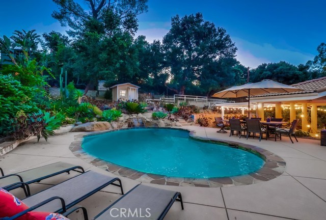 Tucked away in a quiet cul-de-sac in one of Chatsworth s most desirable neighborhoods, this exceptional custom-built single-story home sits on a sprawling 18,000+ sq ft lot offering the ideal layout for multigenerational living. Built in 1995, the home features 5 spacious bedrooms and 6 bathrooms, with each bedroom boasting its own private en-suite, providing comfort and privacy for extended family and guests. This rare configuration makes it perfectly suited for blended families or those seeking independent spaces under one roof. At the heart of the home is a remodeled kitchen, complete with granite countertops, stainless steel appliances, a center island, and a pantry. The adjacent family room, featuring a built-in bar, is ideal for entertaining or casual family gatherings. Additional living spaces include a formal living room with a cozy fireplace and an elegant dining room for special occasions. The expansive primary suite offers a private retreat with a fireplace, walk-in closet, and a spacious bathroom featuring a Jacuzzi tub and separate shower. Step outside to enjoy the peaceful, resort-style yard with views of the Santa Susana Mountains. The beautifully landscaped grounds include a sparkling pool, koi pond, grassy play areas with fruit trees, a charming children s playhouse, covered patio, and multiple flat terraces perfect for gardening or creating serene outdoor seating areas. Additional features are Copper plumbing; Newer roof; Recessed lighting; Central heating & air conditioning; Fully owned solar panels. With its recent renovation, the extra-large three car garage features seamless direct access creating an exceptional space tailored for the true automotive connoisseur. With a little vision, this home can truly be the place where lasting memories are made. Some photos are virtually staged.Interested in this Listing?