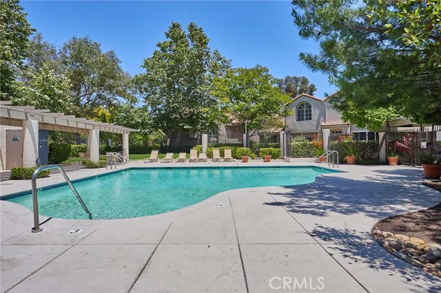 Large 3-bedroom split-level townhouse surrounded by stunning mountain trails and breathtaking scenic views! Ideally situated in a peaceful location away from the city's hustle, this home offers both privacy and a well-planned and the largest open floor design in the community that welcomes an abundance of natural light. Hardwood flooring flows seamlessly through the bedrooms, dining area, and hallways, complemented by soaring vaulted ceilings in the living and dining rooms. Enjoy the tranquility of nature from the spacious balcony, conveniently accessible from both the kitchen and living room, overlooking a serene back patio and lush greenery. The upper level expansive primary suite boasts a high ceiling, a generous walk-in closet, and a spa-like en-suite bath with dual sinks, a shower stall, and a soothing jacuzzi tub. The lower level features a versatile den/family room, two additional bedrooms, a full bath, and a dedicated laundry area. Sliding glass doors lead to a rare oversized patio an outdoor retreat offering complete privacy and beautifully manicured grounds with direct yard access to trails and only 40 steps away from the massive outdoor pool, jacuzzi, BBQ, and lounge areas. Additional highlights include a two-car garage with abundant storage and cabinetry. A perfect combination of comfort, style, and natural beauty in an idyllic tranquil setting! Minutes from the shops, restaurants, theater, and more at The Vineyard Shopping Plaza in Porter Ranch.Interested in this Listing?