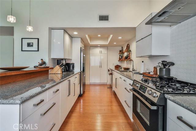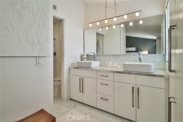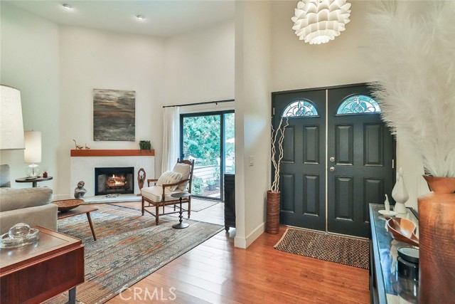 Move right in and enjoy this designer updated townhouse with features you will love! The kitchen and all of the bathrooms have stylish and updated surfaces and fixtures. High ceilings in the living room and primary bedroom. Hardwood flooring. The living room has a custom-designed smooth plaster-faced fireplace; wood-burning (gas supplied), with a stylish mantel. The hardwood floors, tasteful light fixtures, elegant door casings, and moldings add that special touch, warm and contemporary. New paint throughout, smooth ceilings with dramatic height in the living room and primary bedroom. Pretty mirrored closet doors with brushed nickel frames in the bedrooms. The primary bathroom has large basin-style sinks on top of solid surface countertops. The kitchen shines with updated cabinetry, white solid surface countertops, classy open shelves, and plenty of extra cabinets and workspace. It is open to the family room, and there is a warm wooden breakfast bar. The AC was recently updated with a high-efficiency condenser. The laundry room is inside, with side-by-side hookups and ample workspace. Even the stairway and raised dining room wrought iron railings have been updated for a contemporary look in keeping with the designer touches. The exterior has a lovely patio/courtyard area with planting areas around the edge. Relax with friends at the outdoor patio table. The two-car garage has a direct entry to the home. There is an indoor laundry room with side-by-side hookups and shelves. The community has a gated parking lot entrance for security. The community has a sparkling pool and spa for your enjoyment. HOA dues include Cable TV, water, sewer, trash, grounds maintenance, and earthquake insurance. The townhouse faces Independence Avenue. Close to everything, including Porter Ranch's Vineyard Shopping Center, and plenty of local shops and restaurants. Trader Joe's on is nearby on Mason Avenue. Easy access to Woodland Hills' malls and the 118 Freeway.Interested in this Listing?