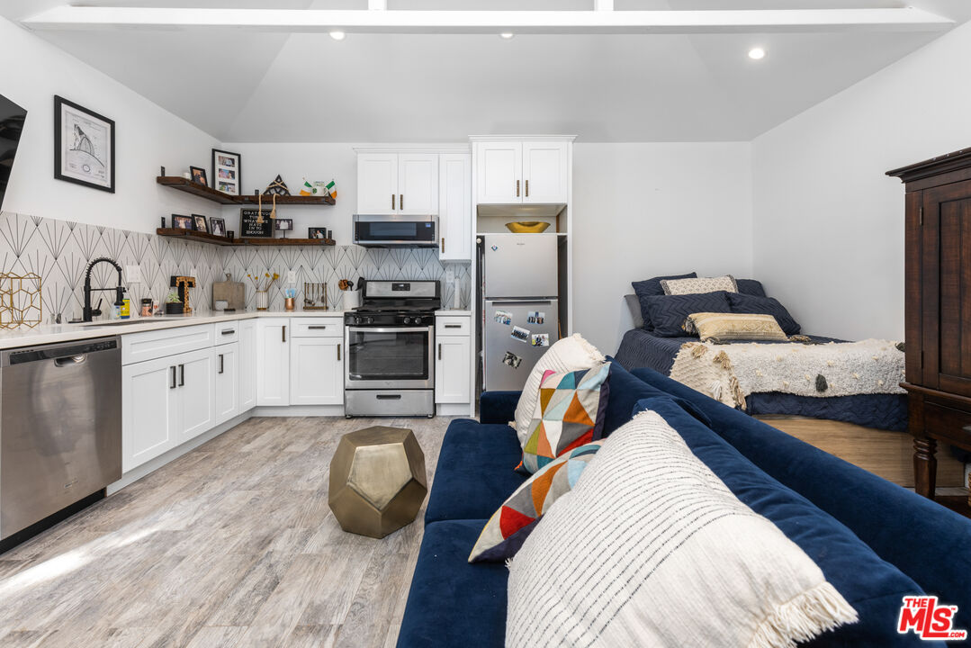 Storybook charm meets sophisticated style in this South Del Rey home. Just past the white picket fence, you'll find a quaint front yard that sets the tone for the warm and inviting interiors. Step inside to a bright, open living space with original hardwood floors. The renovated kitchen features custom cabinetry, Spanish tile flooring, stainless steel appliances, and a Caesarstone island, an ideal spot to ease into your morning with coffee or connect with guests while preparing a meal. The remodeled bathroom offers Caesarstone counters, a Toto toilet, subway tile surround, and a freshly glazed tub. Two bedrooms open to a newer deck and a whimsical backyard with a lounge area and dining patio. The detached garage has been converted into a full studio/guest suite, complete with its own kitchen and bathroom, while a second detached structure serves as a serene home office or gym. Additional highlights include a newer irrigation system and controller, Google Nest thermostat, newer furnace and central A/C with HEPA filtration, Milgard windows, cellular blinds throughout, and driveway parking. Conveniently located near downtown Culver City, numerous parks, and the Playa Vista tech hub, this is an exceptional opportunity in a coveted neighborhood.Interested in this Listing?