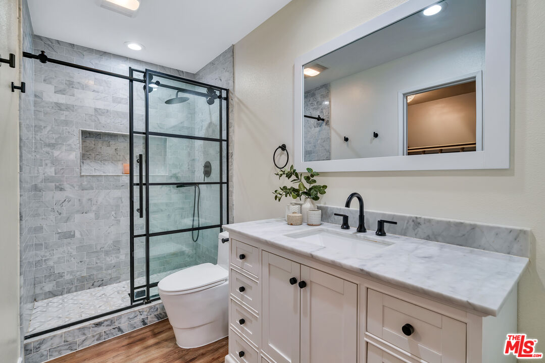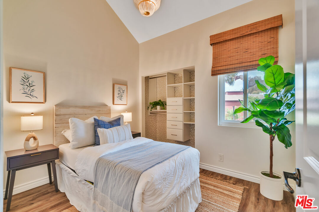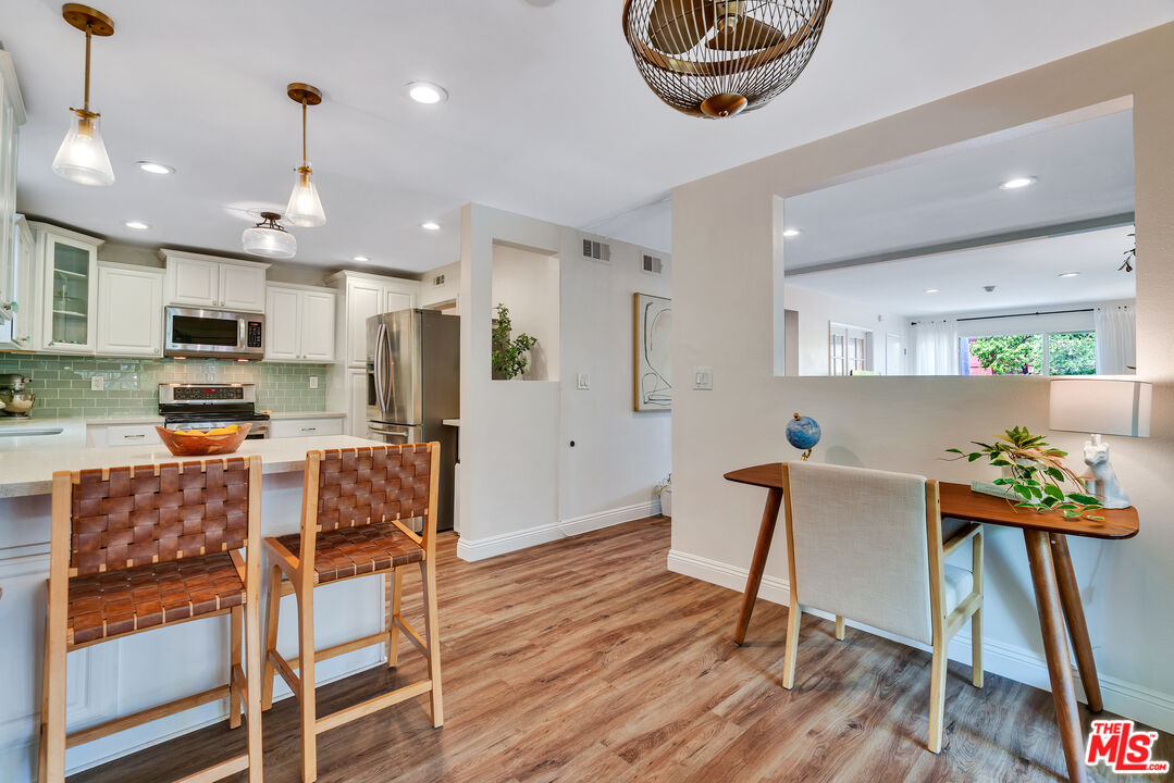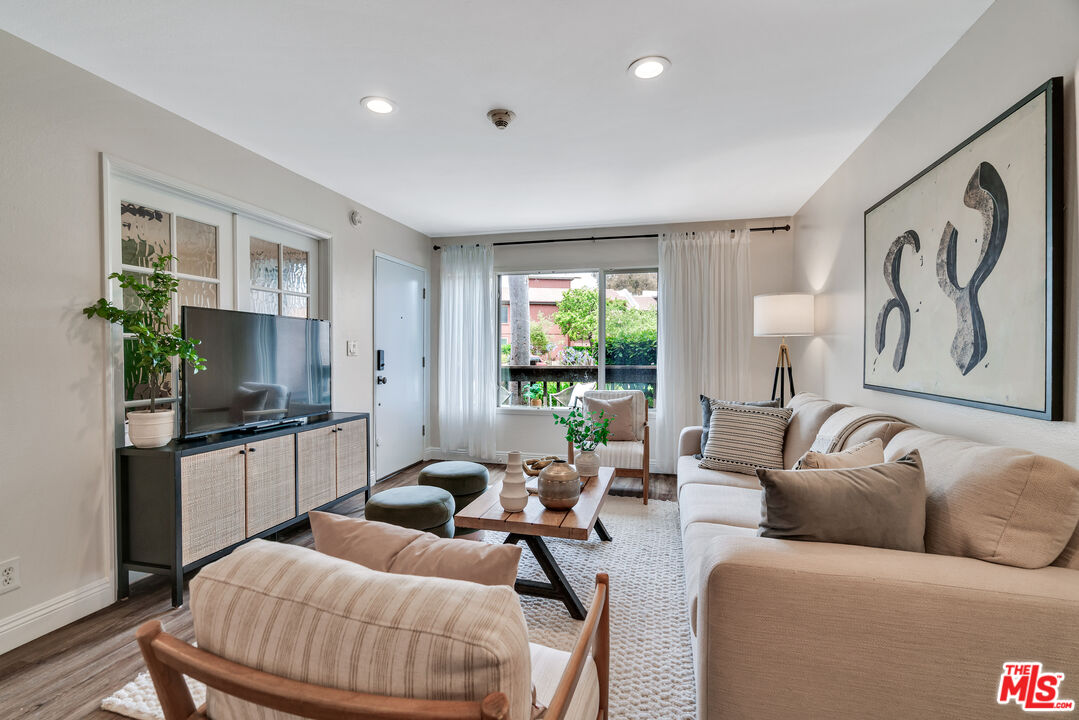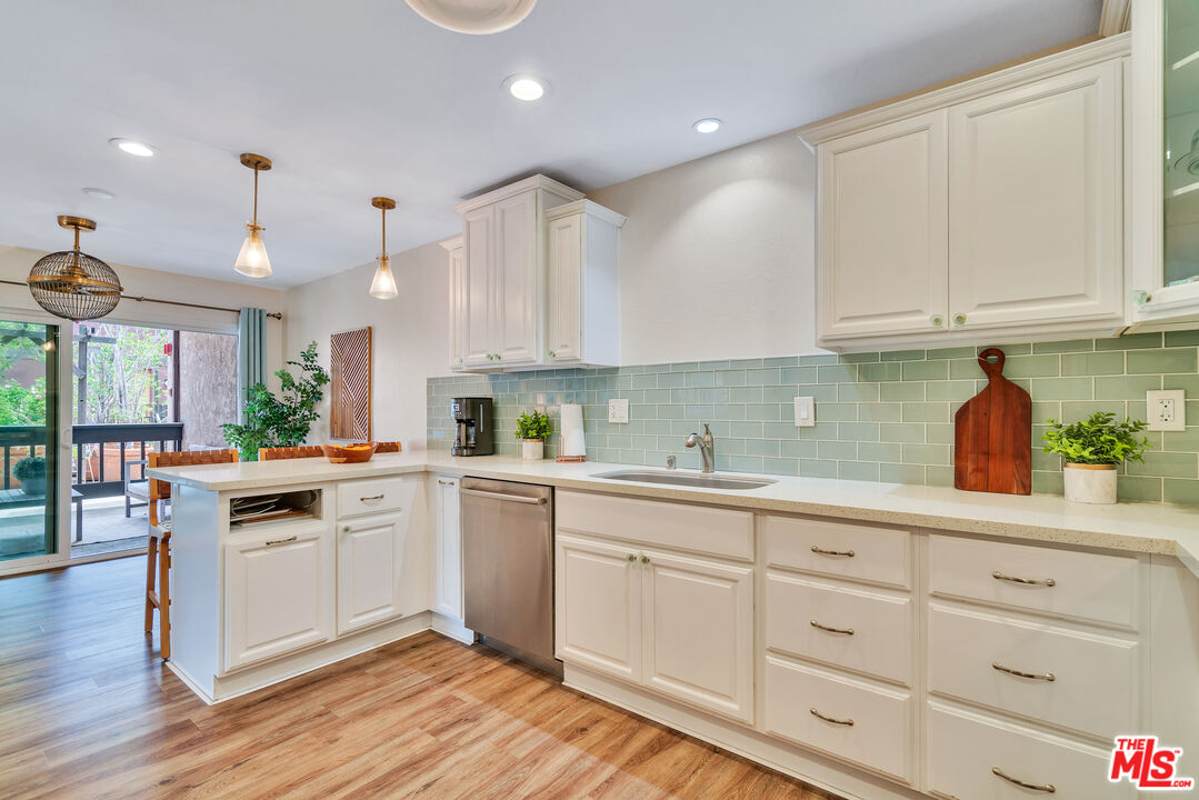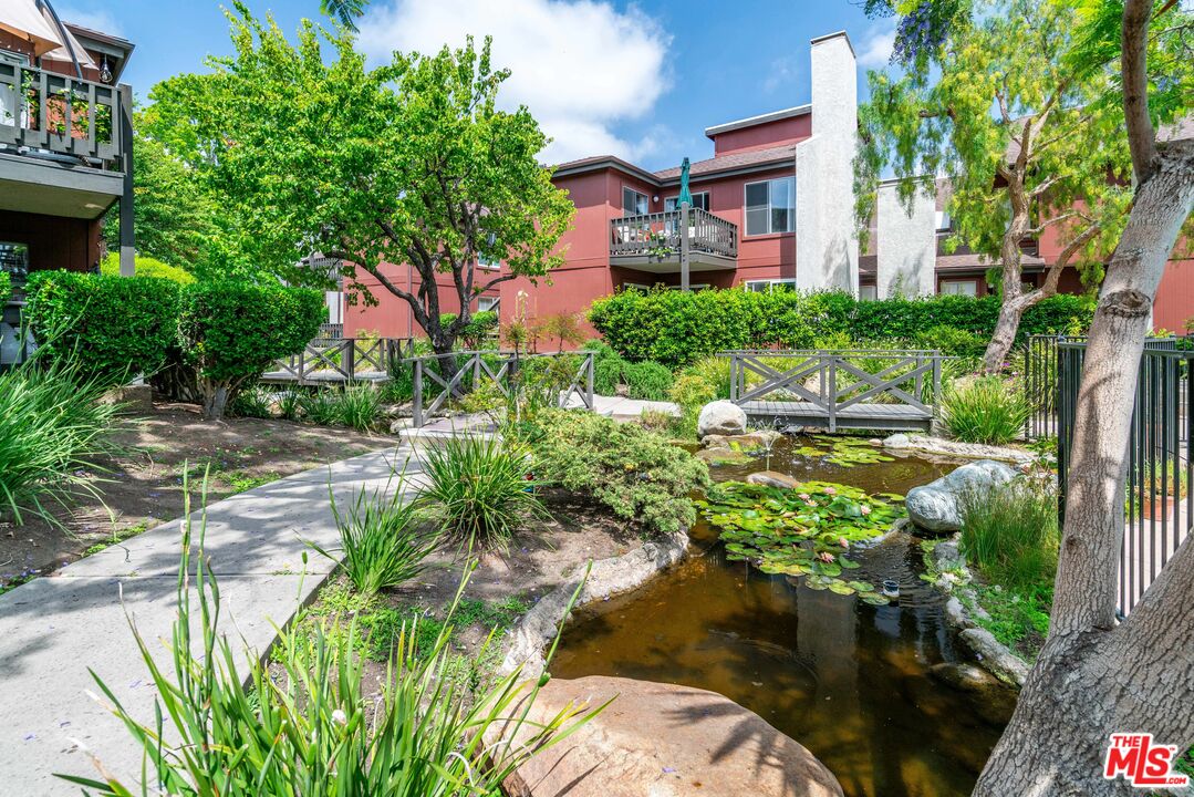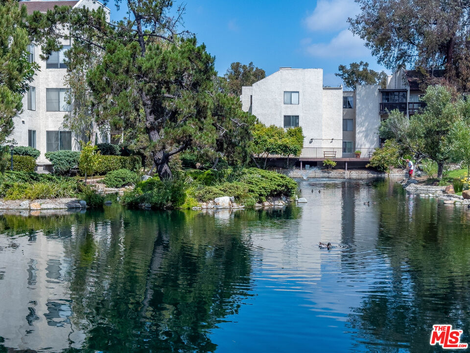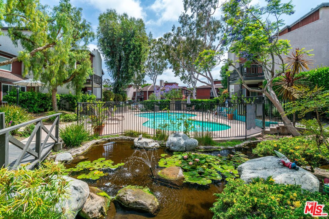 Lakeside Villas offers this gated and guarded community situated alongside a pristine lake with lush grounds and walking paths located in the heart of Culver City. This unique townhome style condo features 3 bedrooms upstairs, 2 renovated bathrooms and dramatic vaulted ceilings. The downstairs offers a powder room and an enclosed den/office with a window of the exterior which makes for a 4th bedroom alternative. The kitchen has been updated with shaker cabinets, chic backsplash tiles, stainless steel appliances with Bosch dishwasher, Samsung refrigerator, LG oven & washer/dryer, stone countertops and breakfast nook/family room which leads to the massive covered patio space. The formal dining room opens to the formal living room. The primary suite has a sitting area, walk in closet & terrace. The unit offers tons of windows allowing the natural light to enter, engineered wood floors throughout, recessed lighting, central AC/heat, a proper laundry room with side by side washer/dryer and extra cabinet space. HOA covers: water, trash, earthquake insurance, 24 hour guard, maintenance of the lake/grounds, pool, spa, gym & clubhouse.Interested in this Listing?